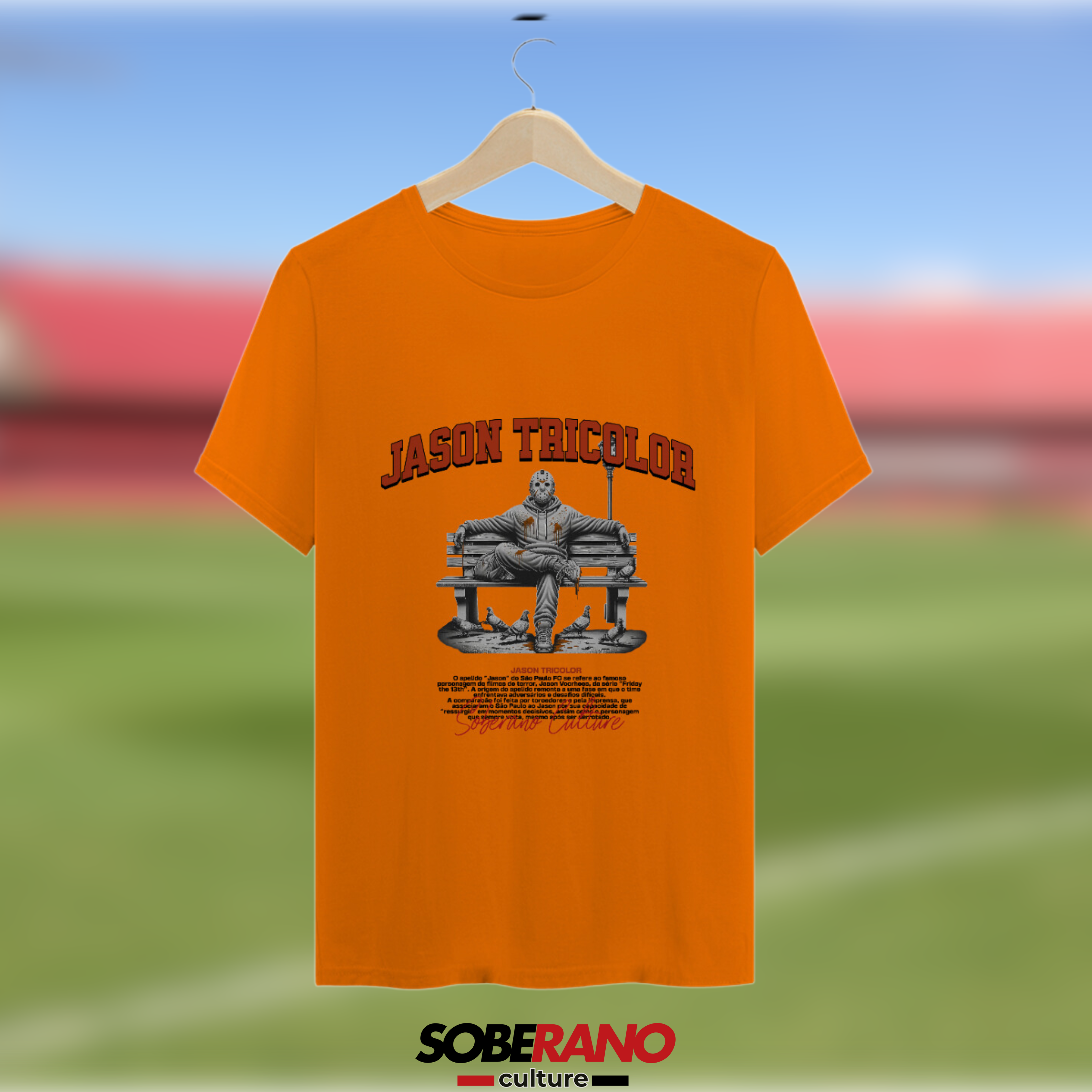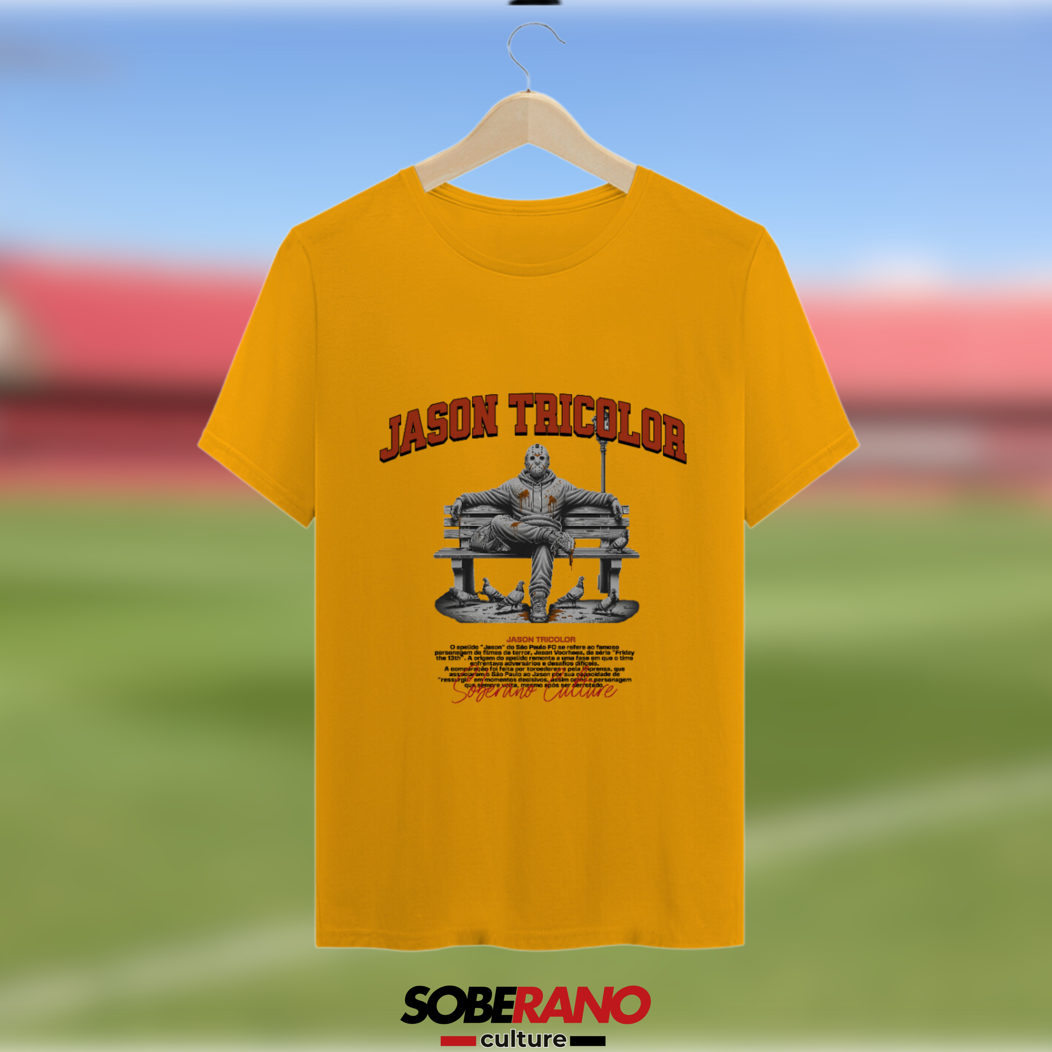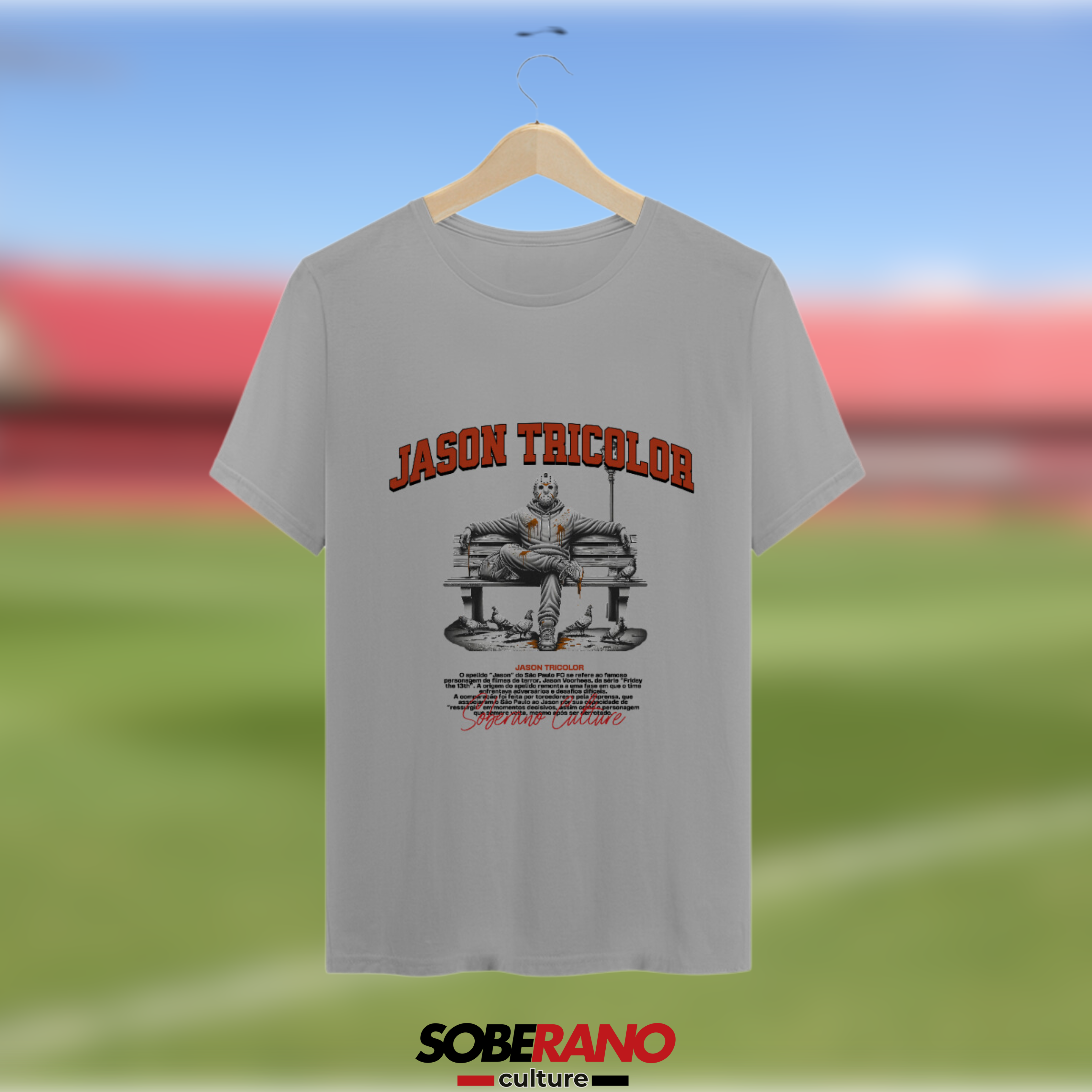 A estampa "JASON TRICOLOR" traz uma referência divertida e poderosa ao famoso personagem de filmes de terror, simbolizando a resiliência e a capacidade do nosso time de sempre voltar mais forte. Vista sua paixão e mostre que, assim como o tricolor, você nunca desiste, sempre pronto para apoiar sua equipe em cada desafio!