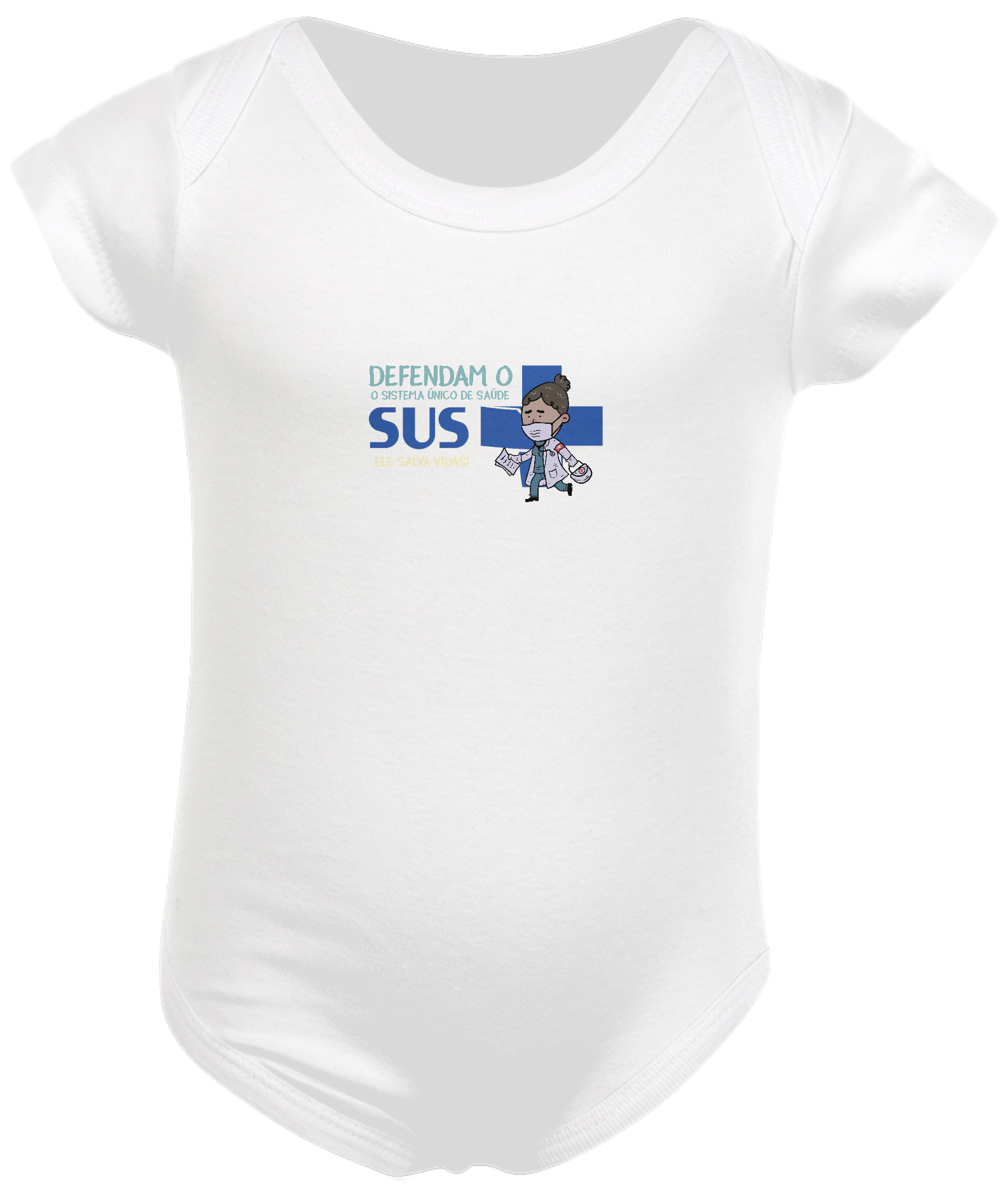 Composição: 100% algodão, meia malha penteada, costura reforçada, viés na gola, mangas curtas.