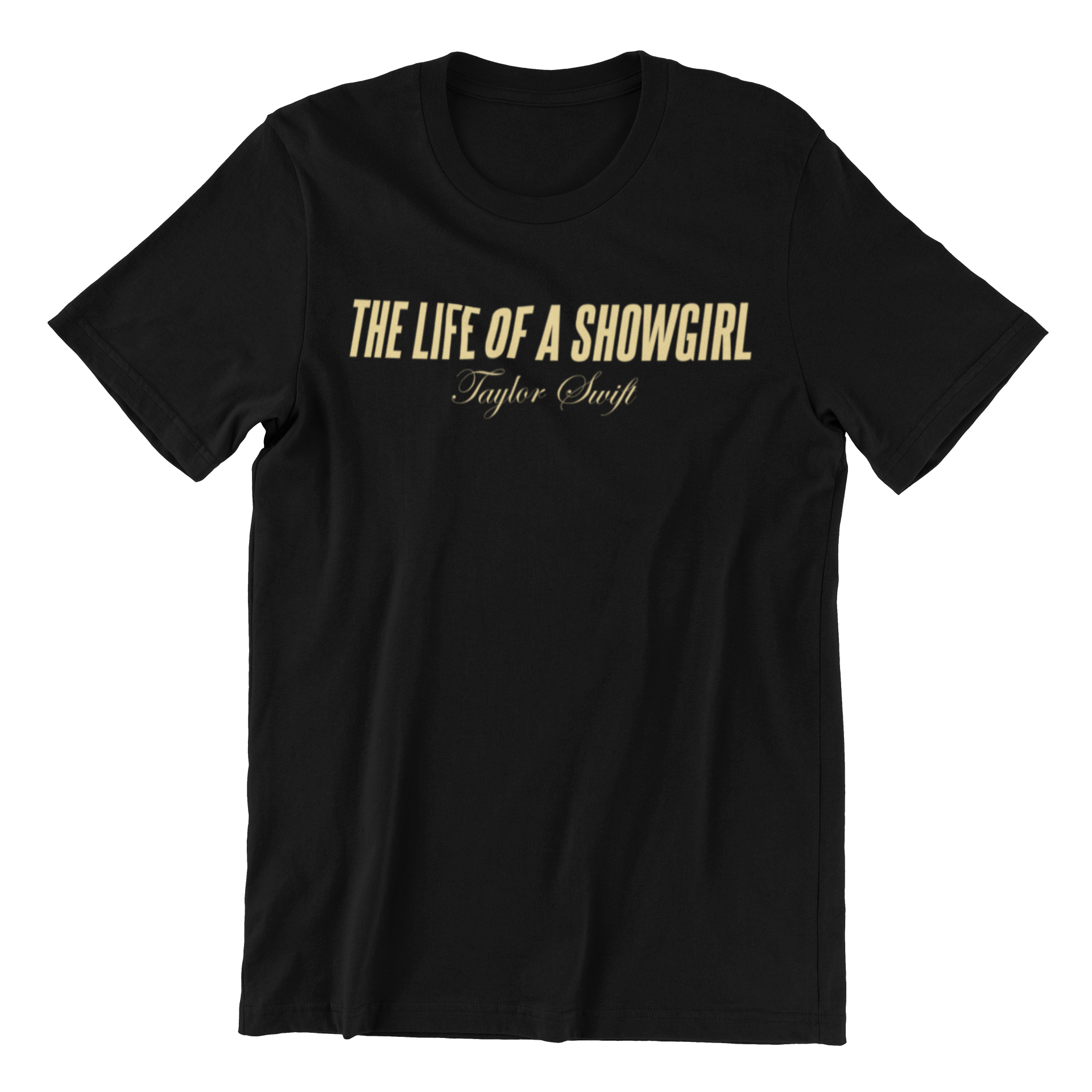 A Camiseta The Life of a Showgirl aposta no minimalismo: frase em destaque e assinatura estilizada abaixo, criando um visual elegante e fácil de combinar. Modelagem unissex, toque macio e impressão durável para acompanhar shows, rolês e o dia a dia.