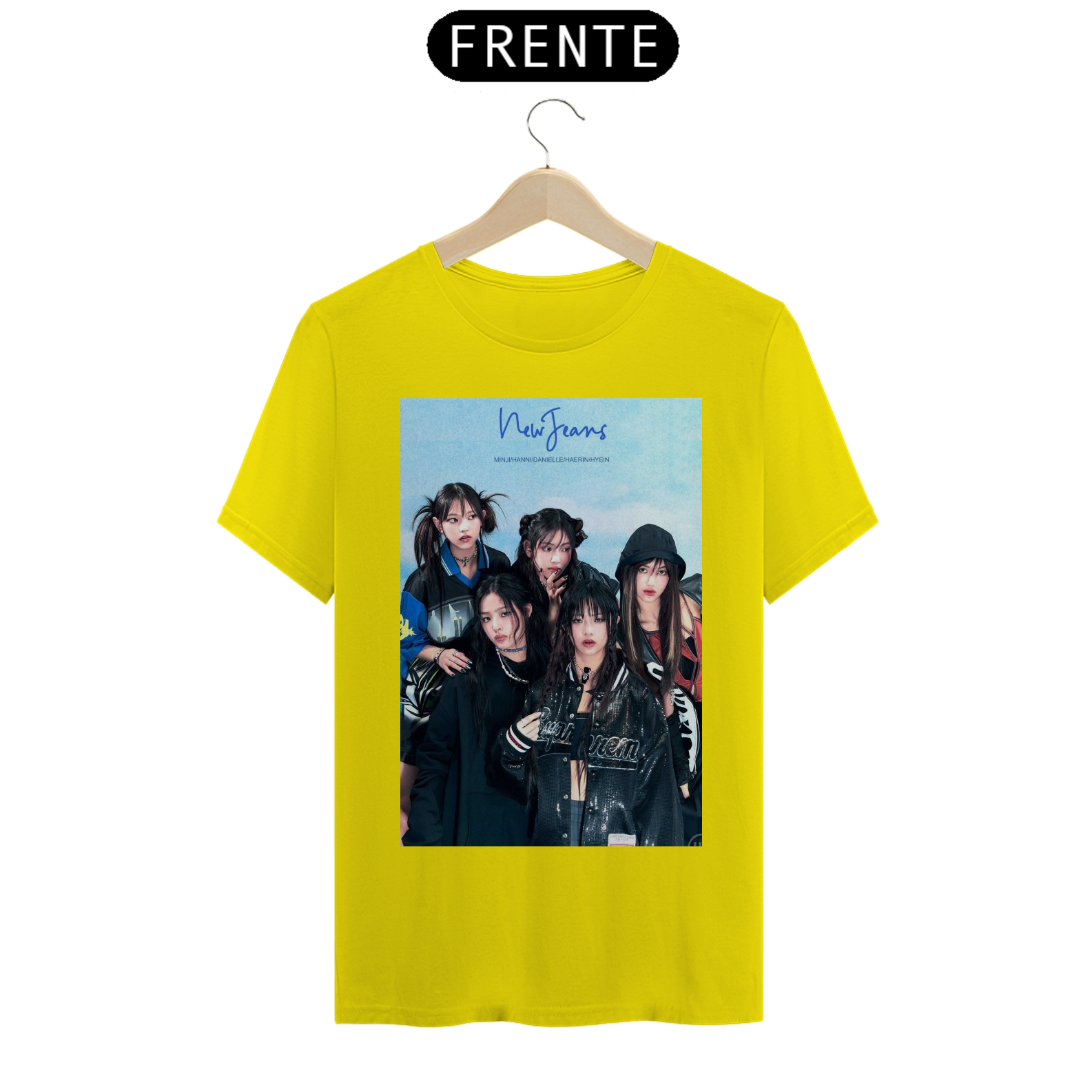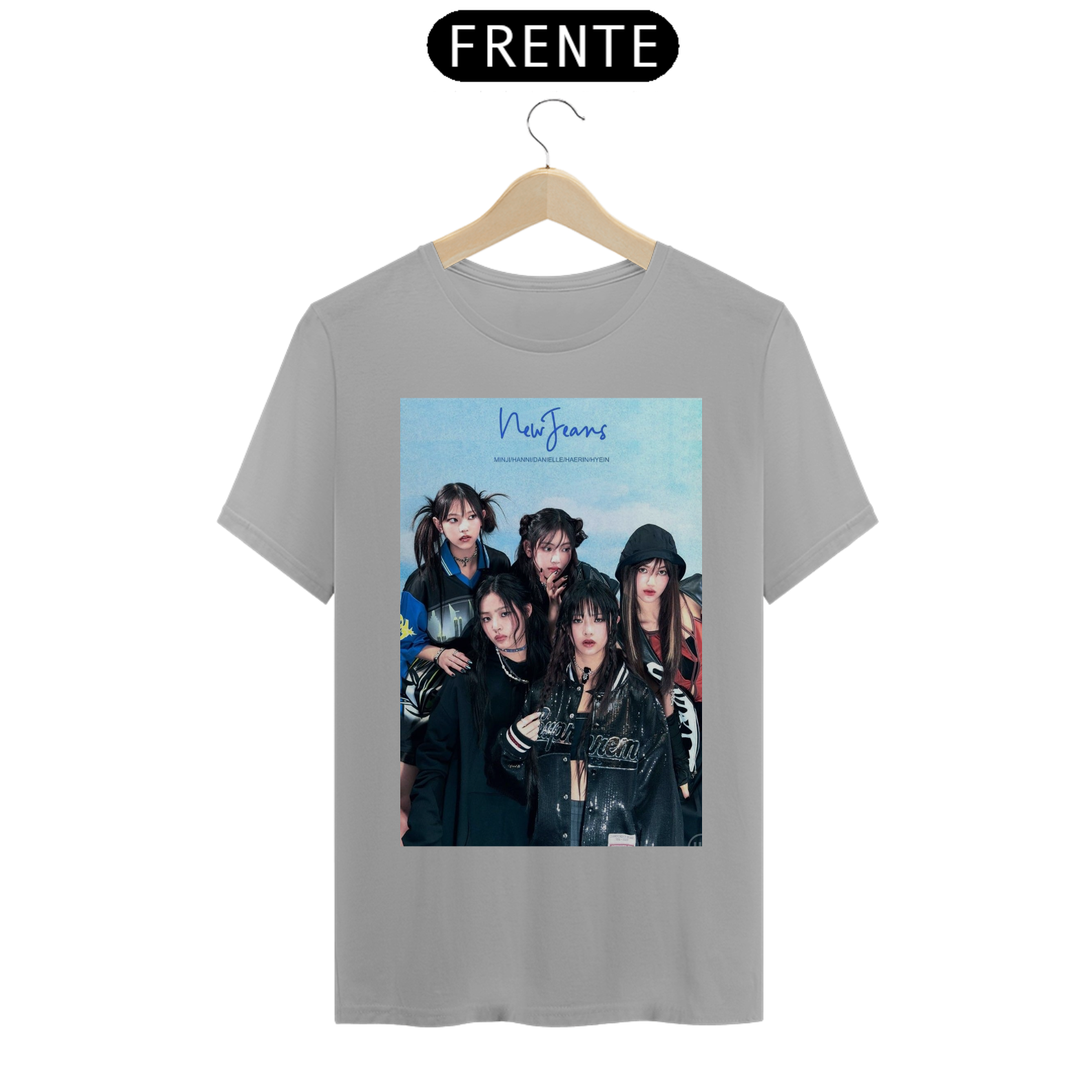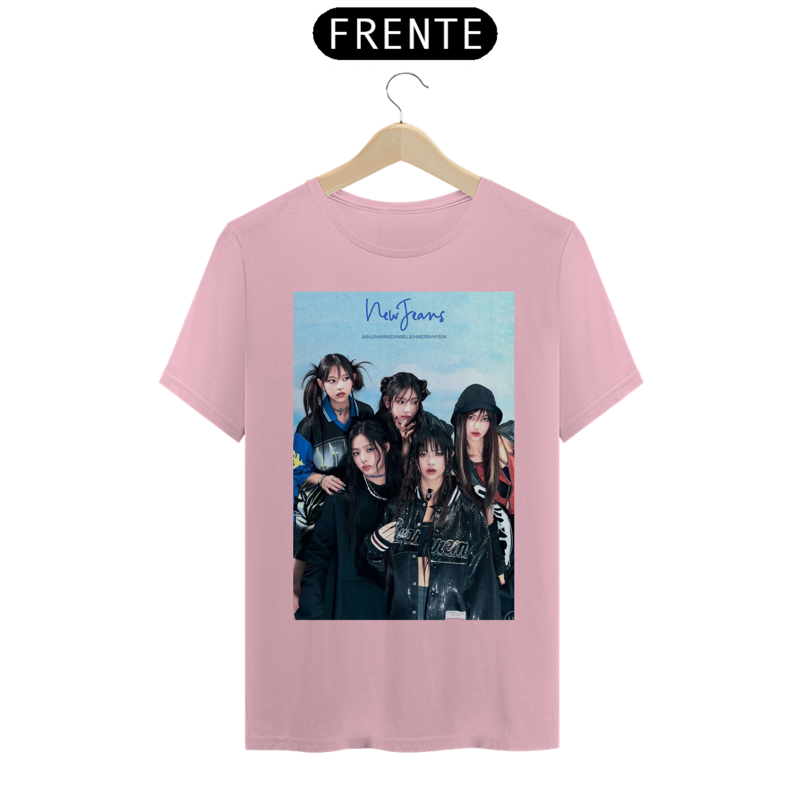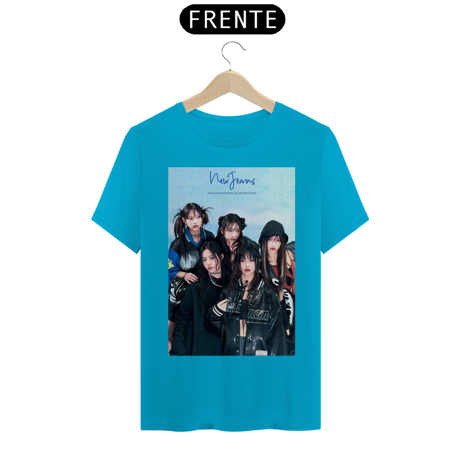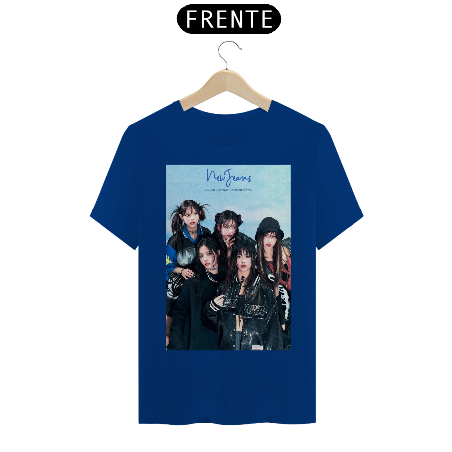 camisa unissex newjeans estampa das meninas do newjeans focado no azul e preto