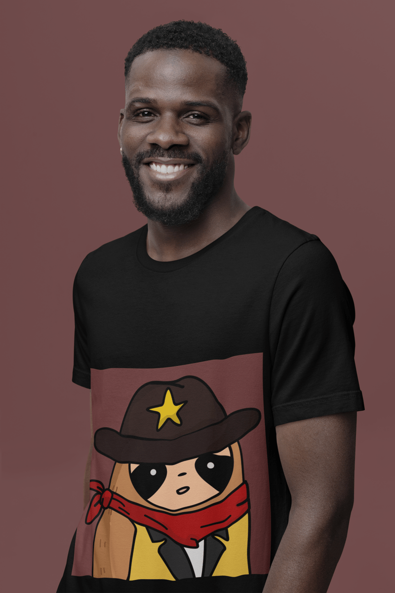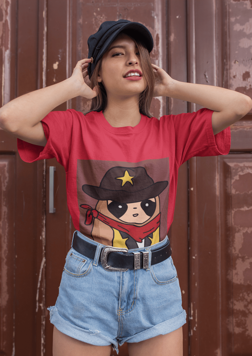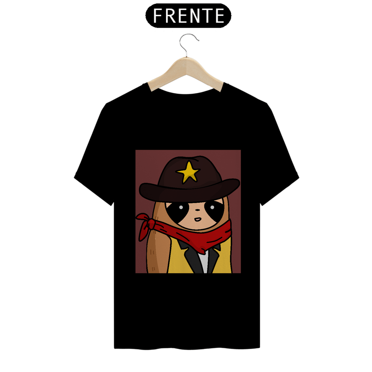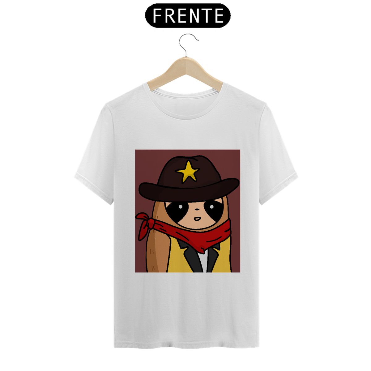 Apresentando um Sloth vestido em traje de cowboy, completo e seu distintivo, este design é perfeito para quem ama o estilo country.