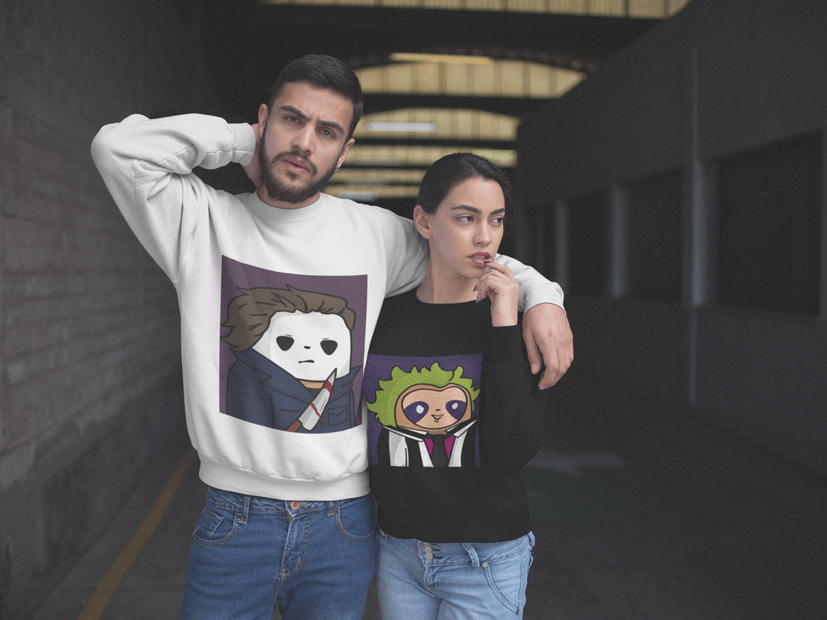 Com sua icônica máscara branca e macacão azul, o Sloth Myers está pronto para aterrorizar a todos com sua presença assustadora.