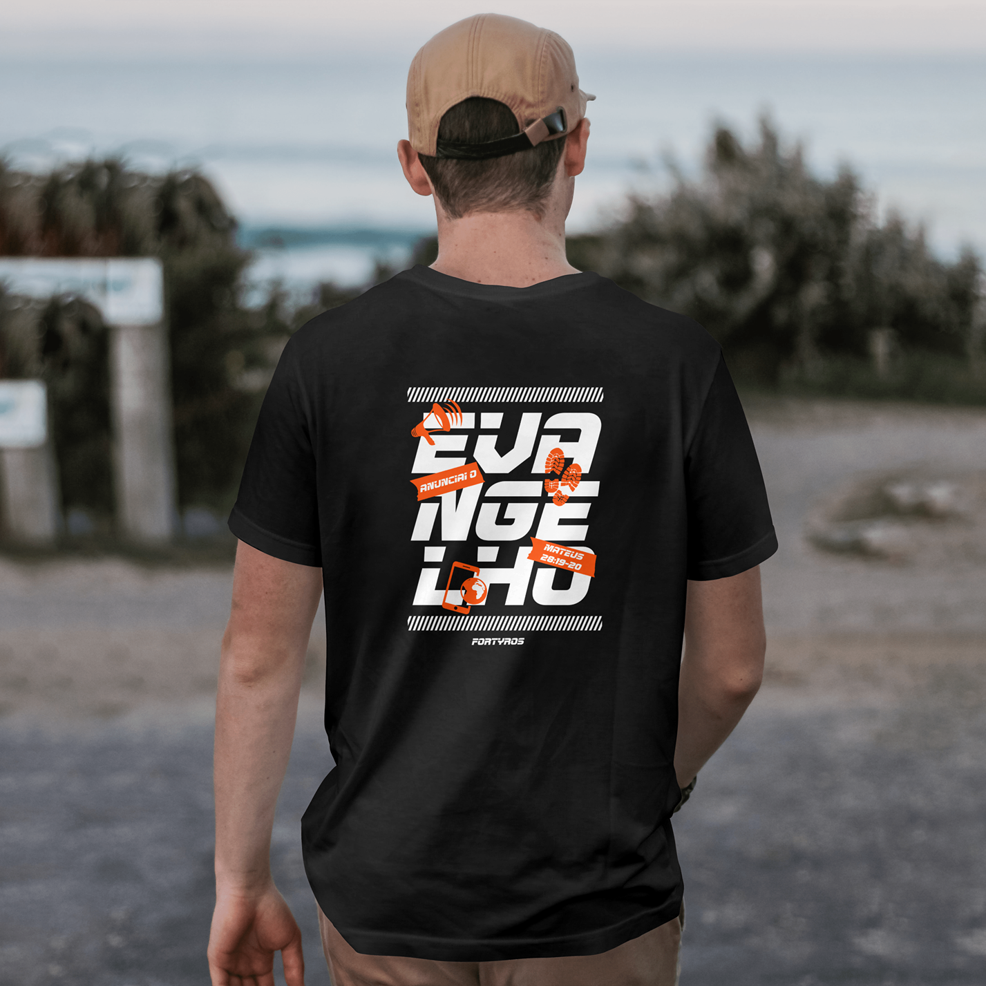 Camiseta inspirada em Mateus 28:19-20, que traz a Grande Comissão de Jesus: “Portanto, ide e fazei discípulos de todas as nações.”