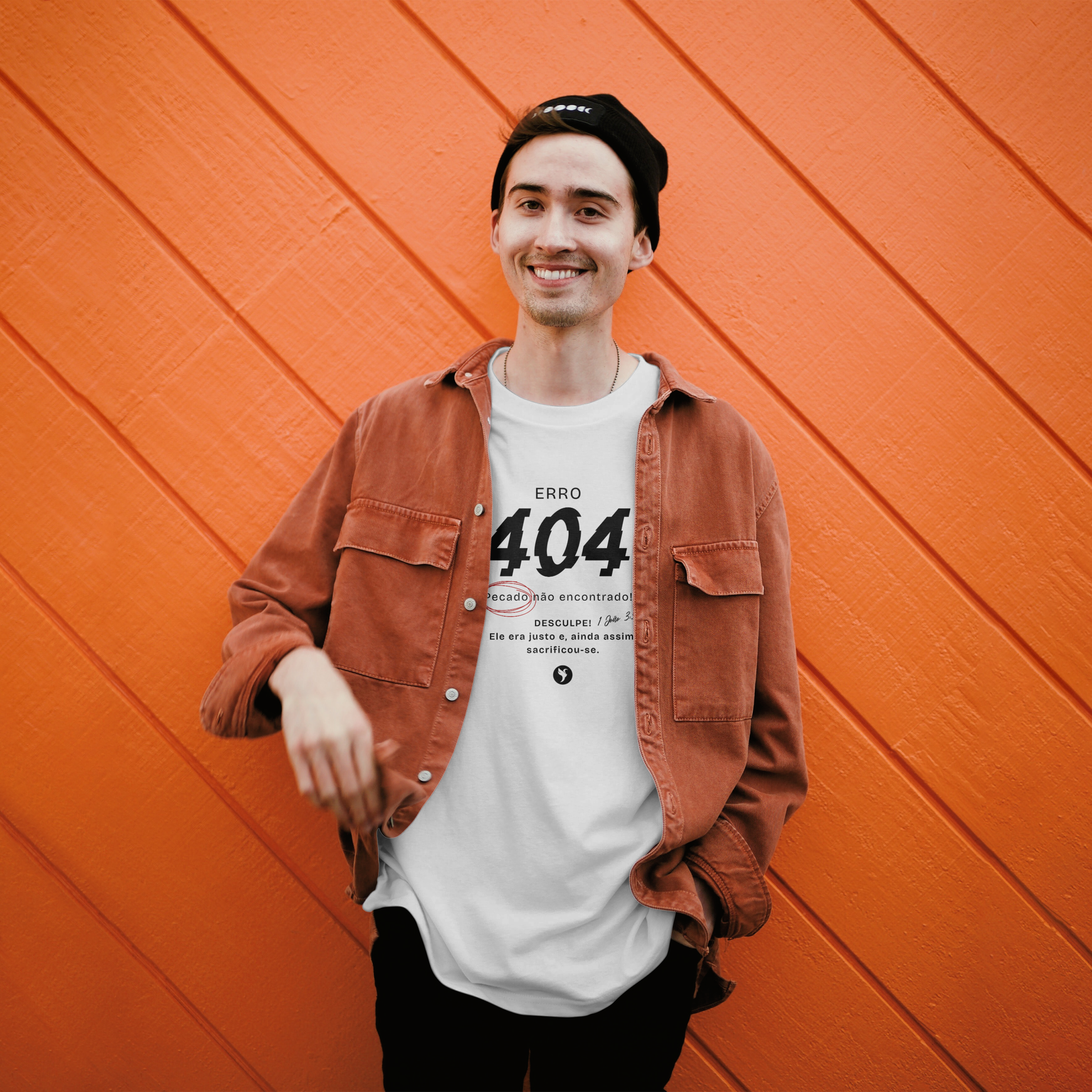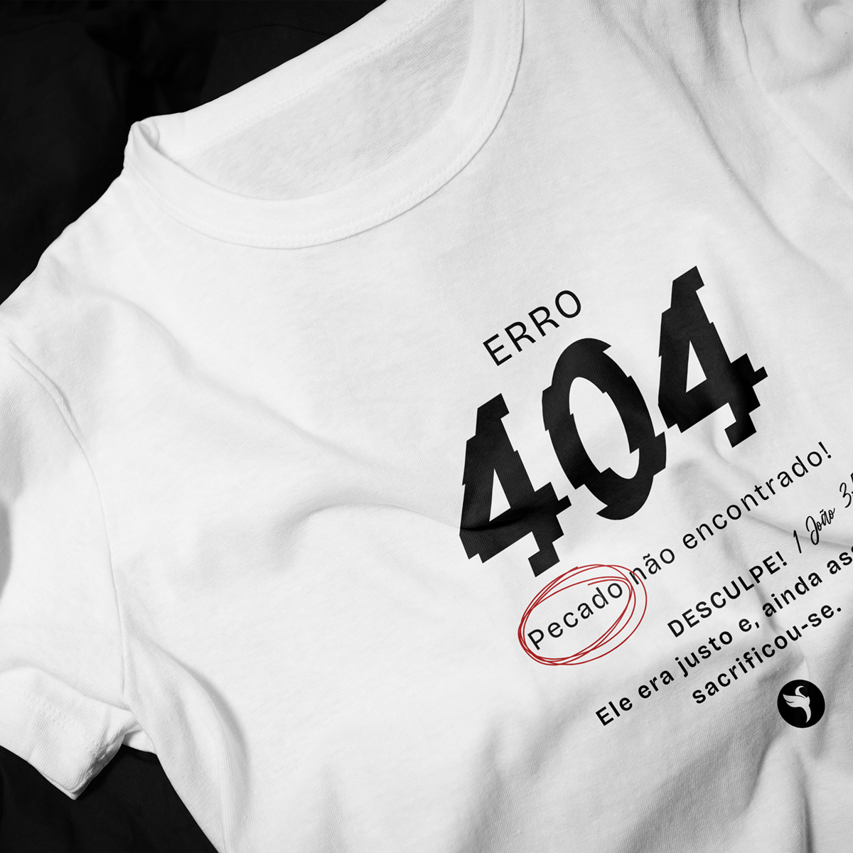 Esta camiseta apresenta um design minimalista inspirado no versículo 'Em Ele não há pecado' (1 João 3:5).