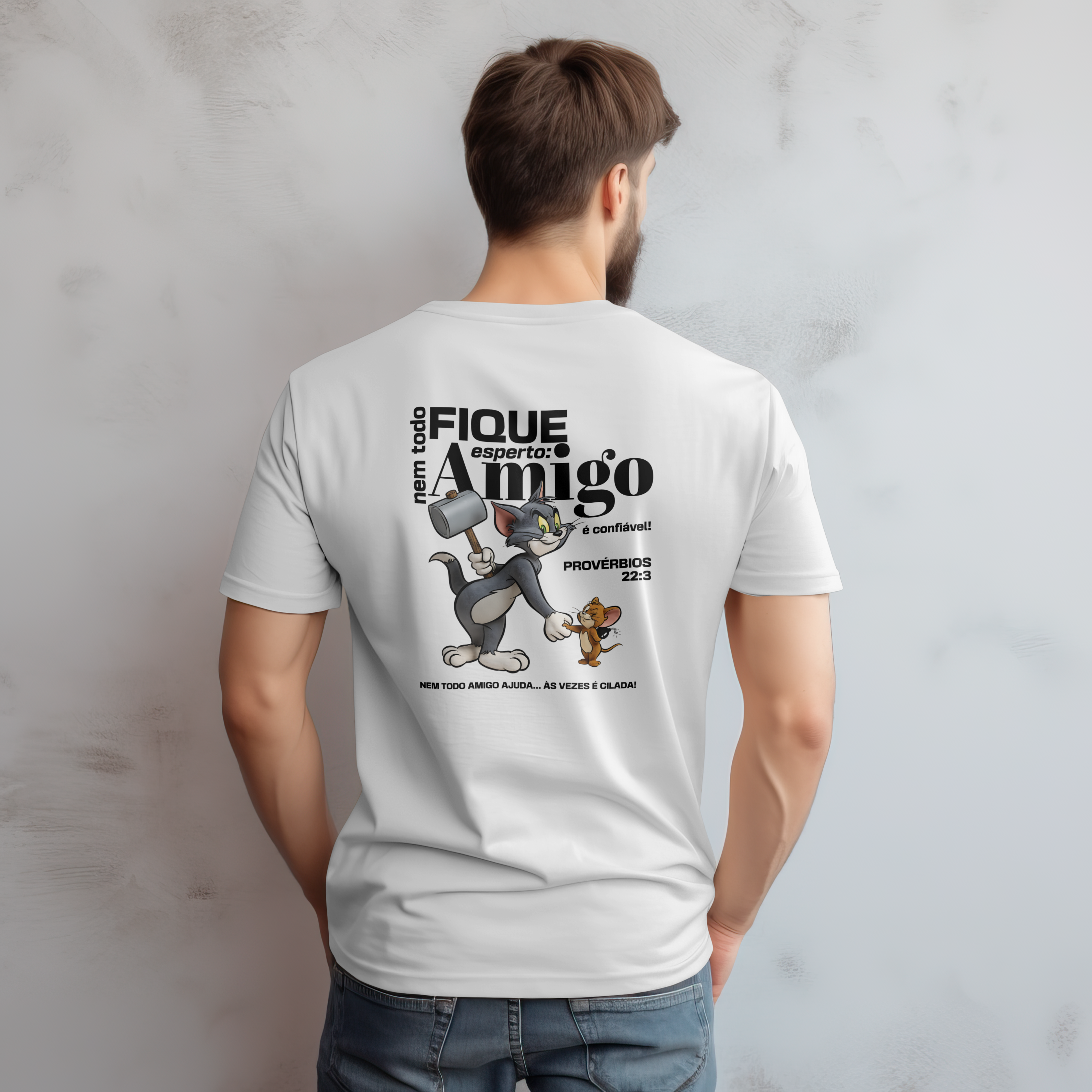 Essa camiseta une humor e sabedoria ao retratar o clássico desenho de Tom e Jerry, onde nada é exatamente o que parece.