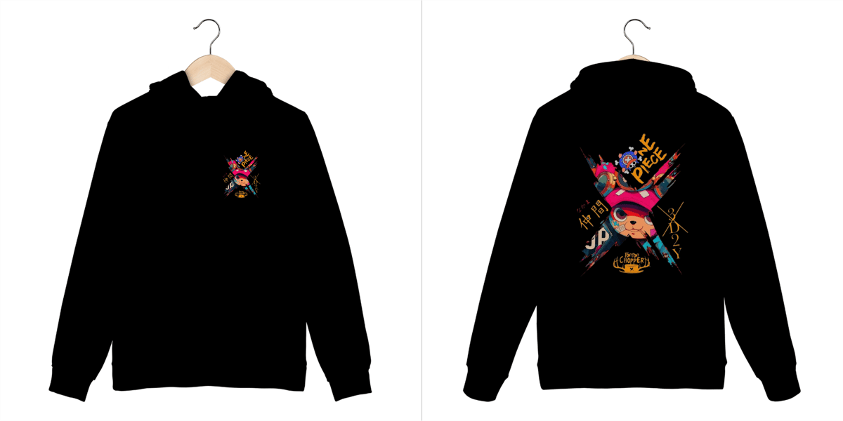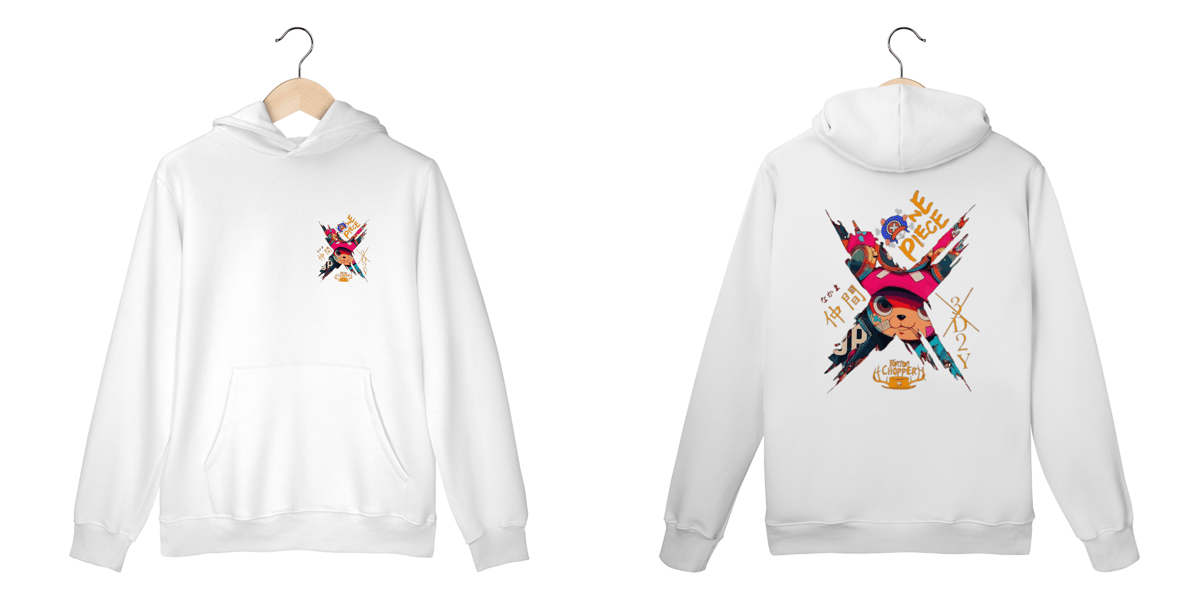 Destaque-se com esse moletom incrível inspirado no nosso renascentista favorito: Tony Tony Chopper! Com um design colorido, urbano e cheio de atitude, ele mistura arte moderna com o espírito aventureiro de One Piece, em meio às icônicas cartazes de procurado.