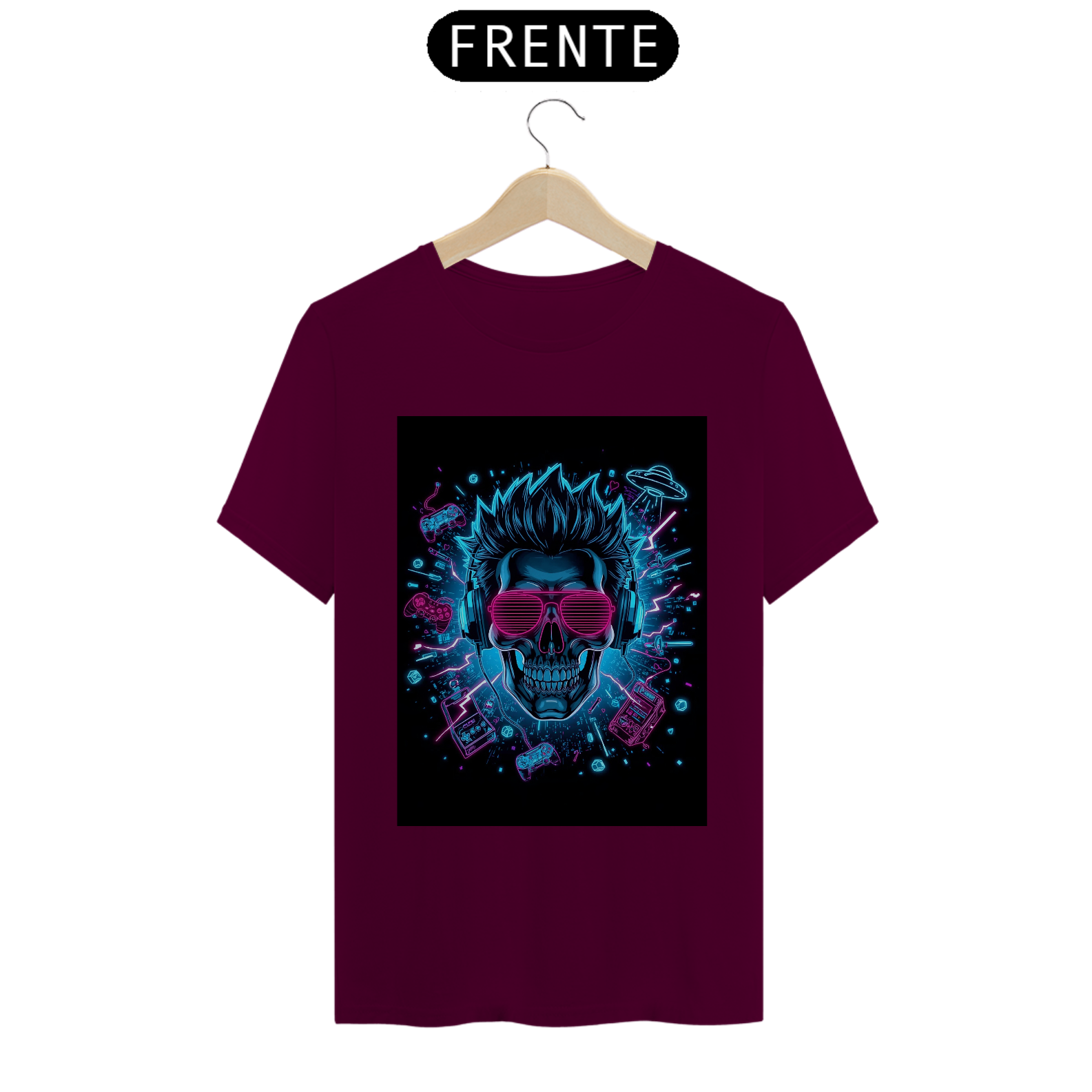 Prepare-se para embarcar em uma viagem visual que une o passado e o futuro! A **Camiseta Skullwave Neon** não é apenas uma peça de roupa; é uma declaração de estilo para quem vive a cultura geek, gamer e ama a vibrante estética **Retrowave e Cyberpunk.**