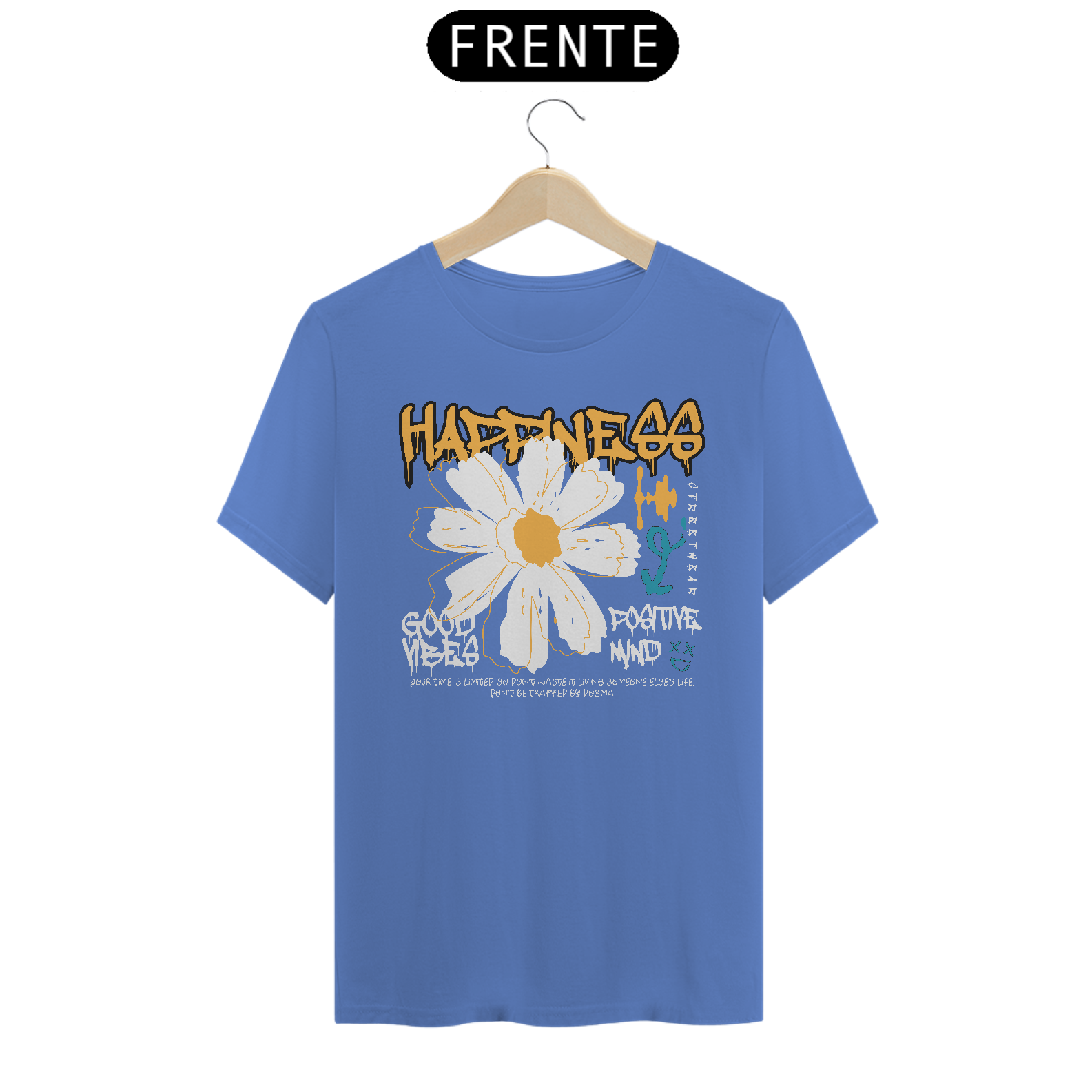 Cores do produto: Como cada tela de computador ou celular tem seu próprio jeito de mostrar cores, então a cor da sua camiseta e da estampa pode ser um pouco diferente do que você viu online.