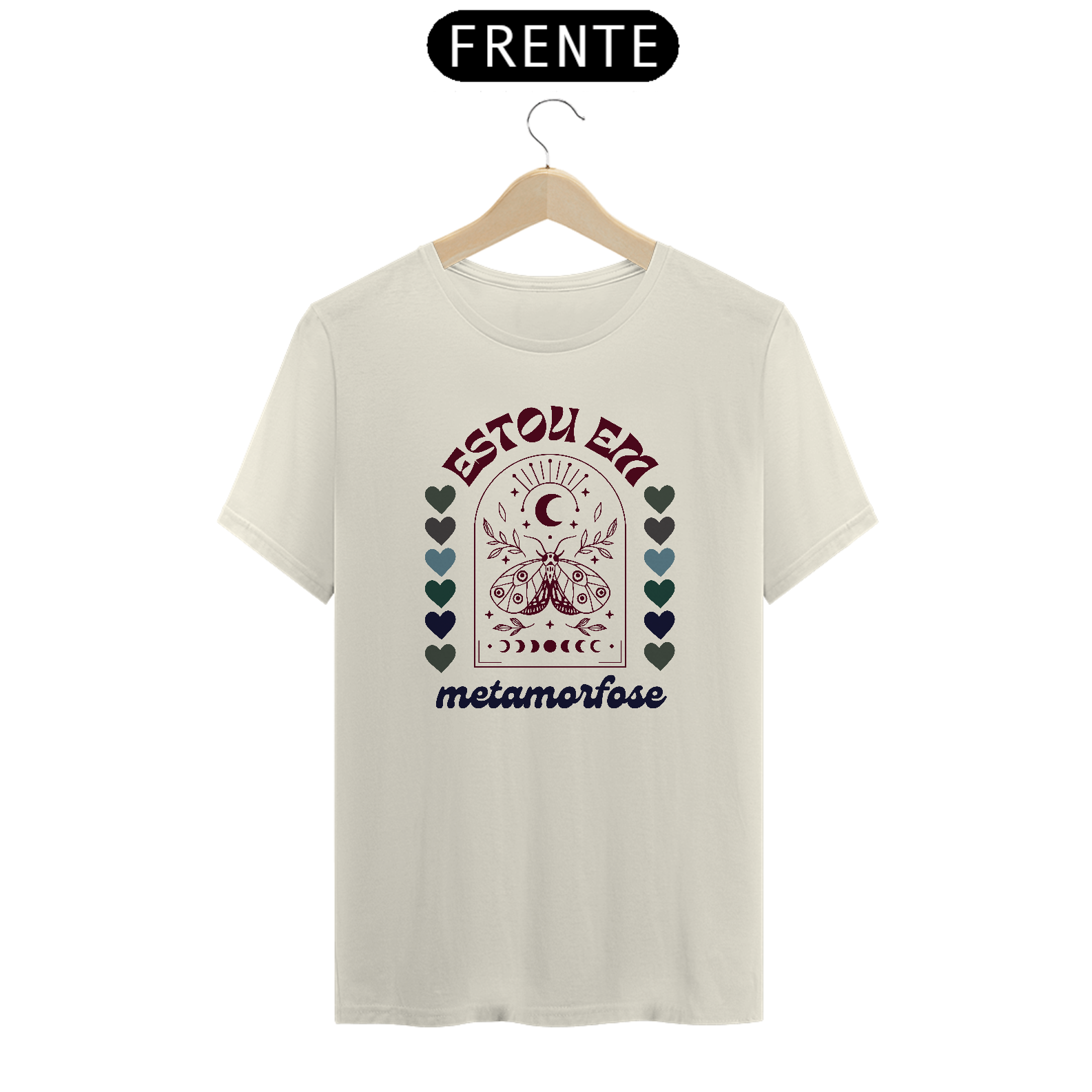 T-shirt com estampa na frente metamorfose.