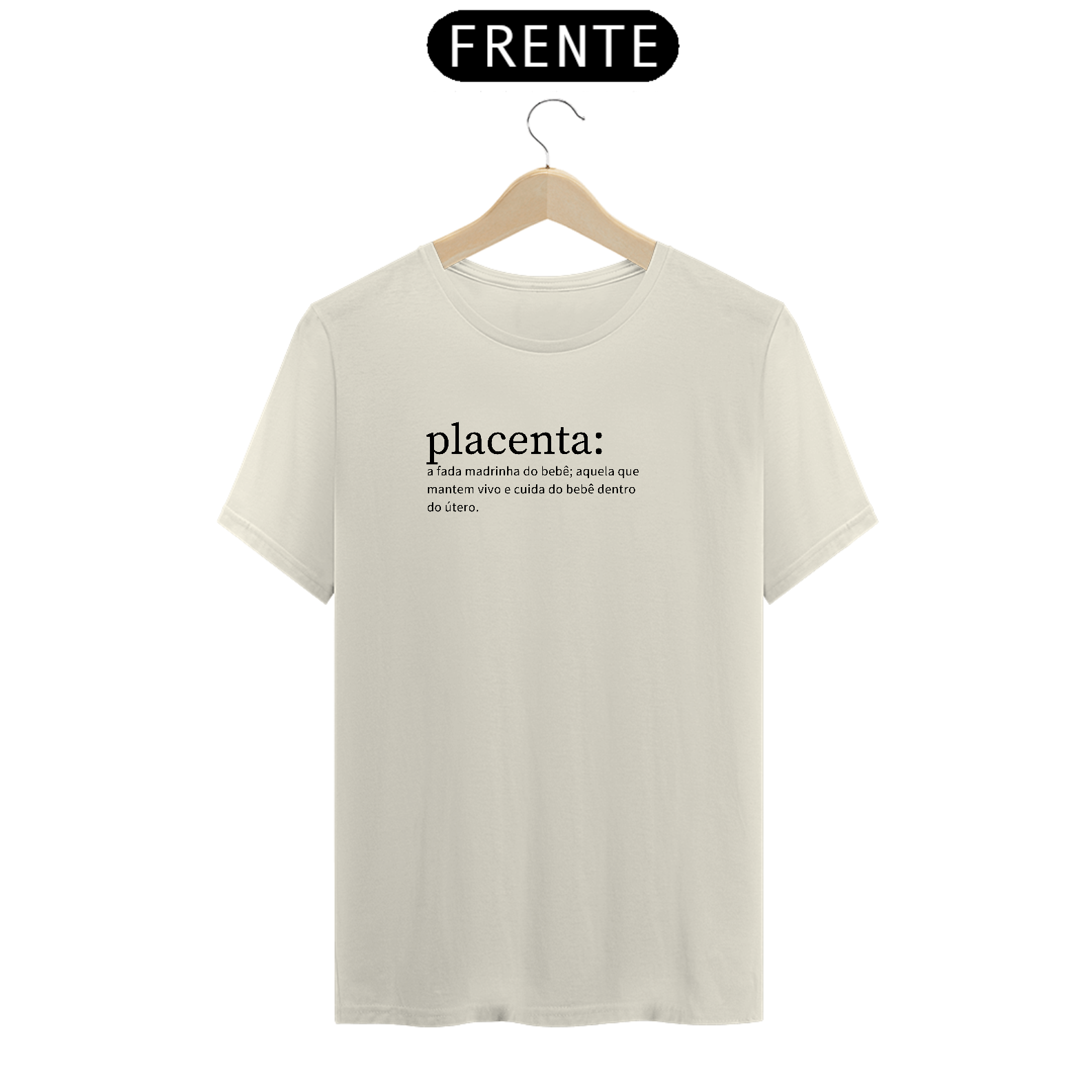 T-shirt com estampa na frente sobre a placenta.