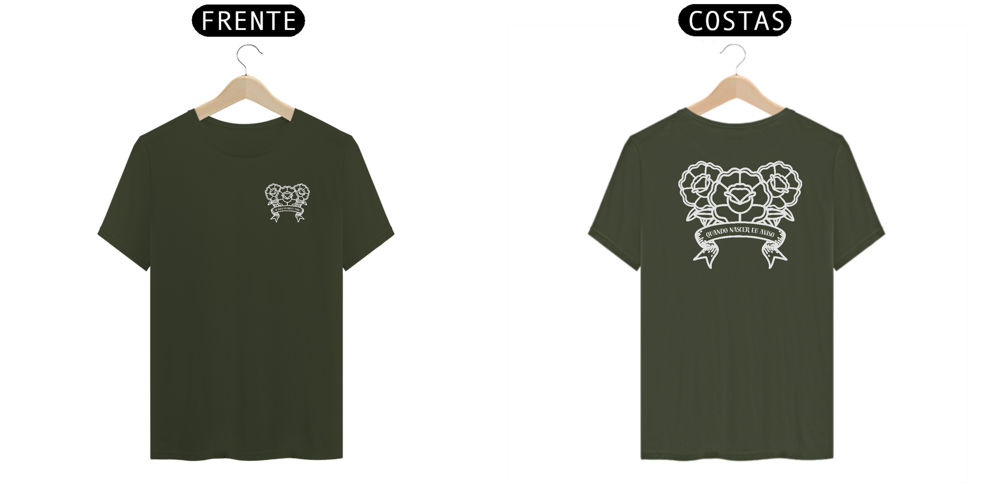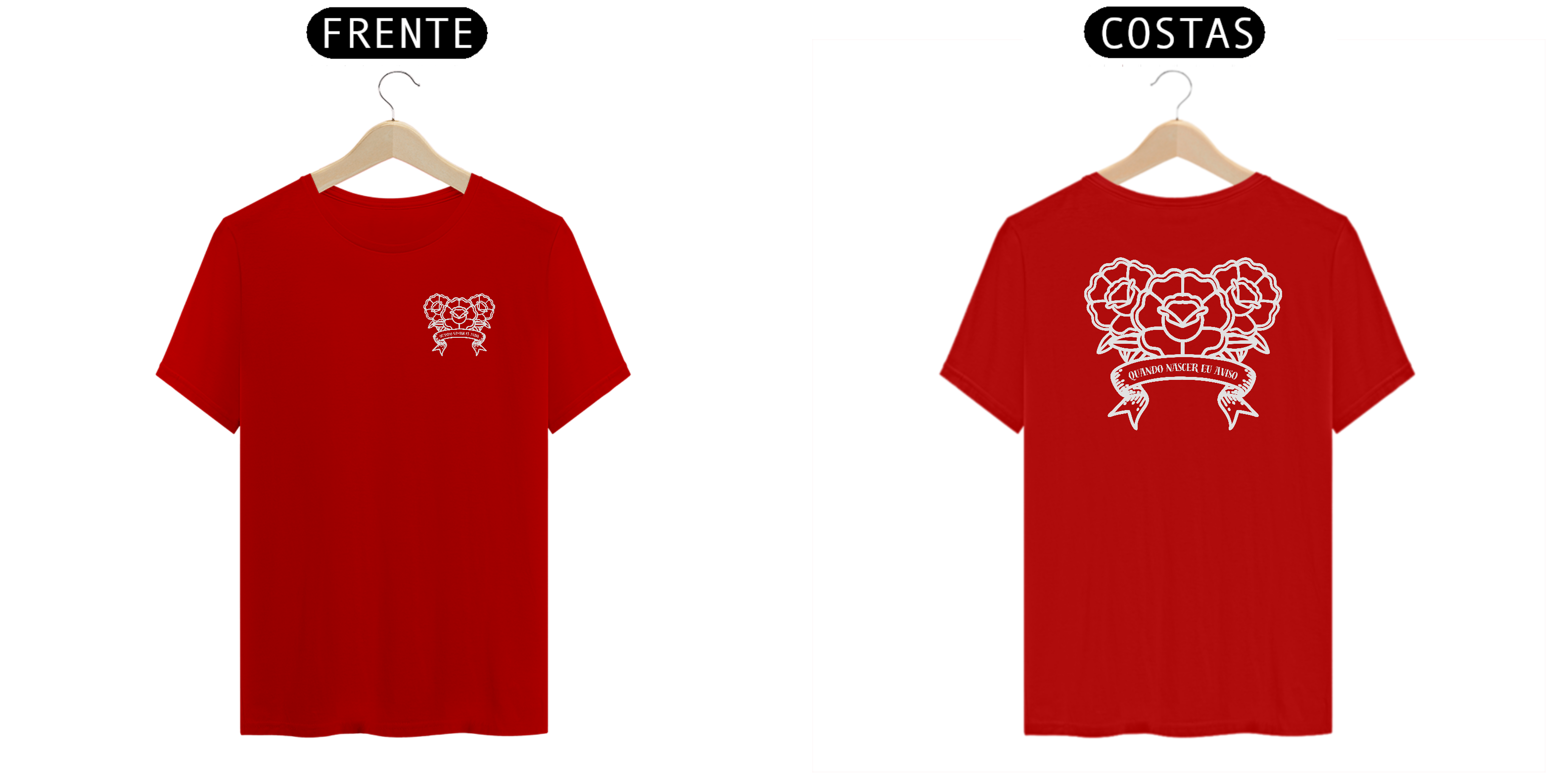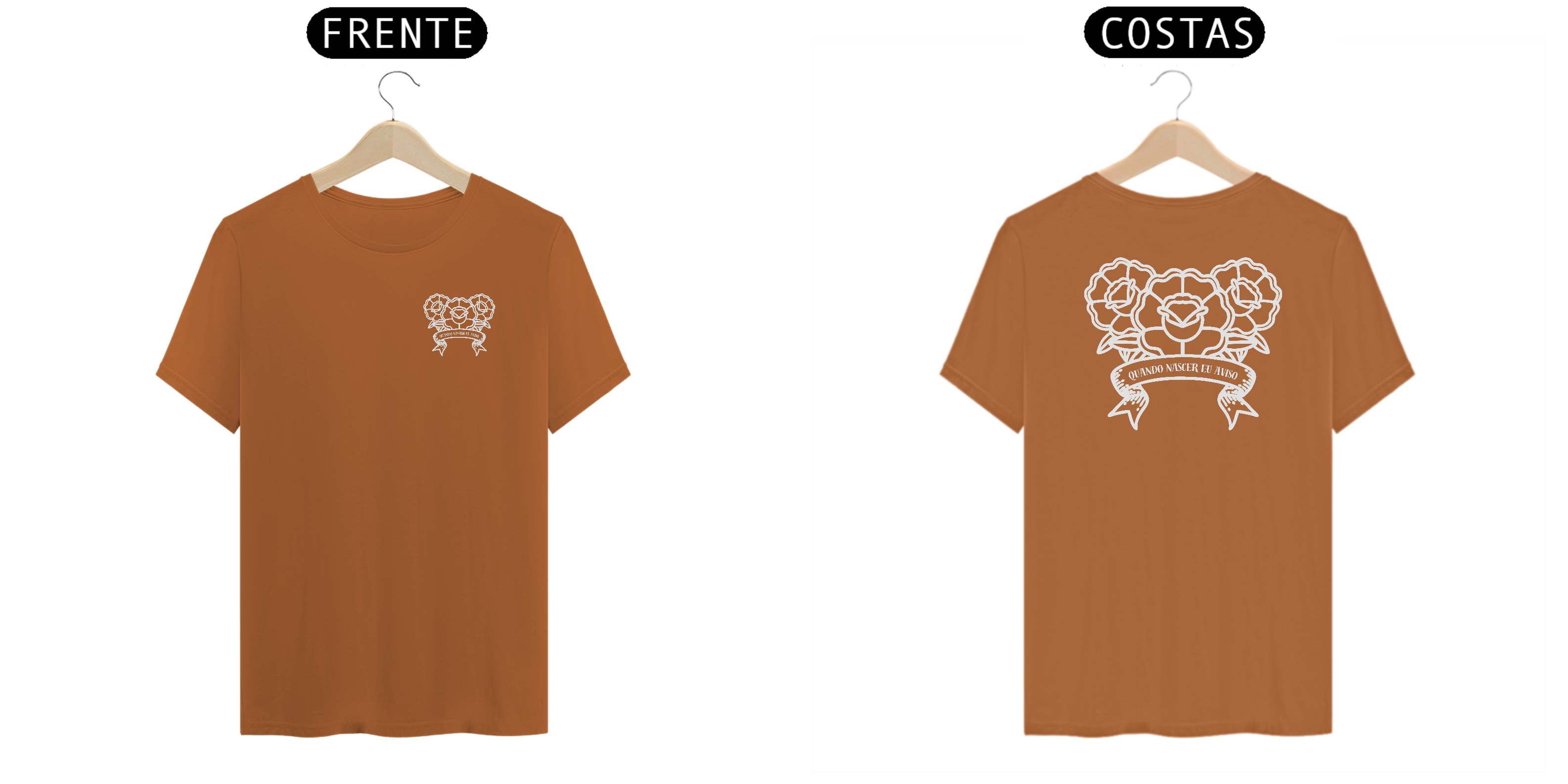 T-shirt com estampa na frente e atrás escrito "quando nascer eu aviso".