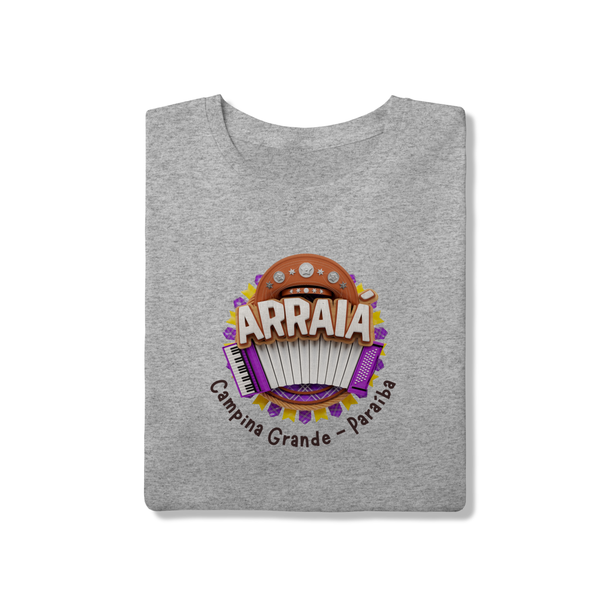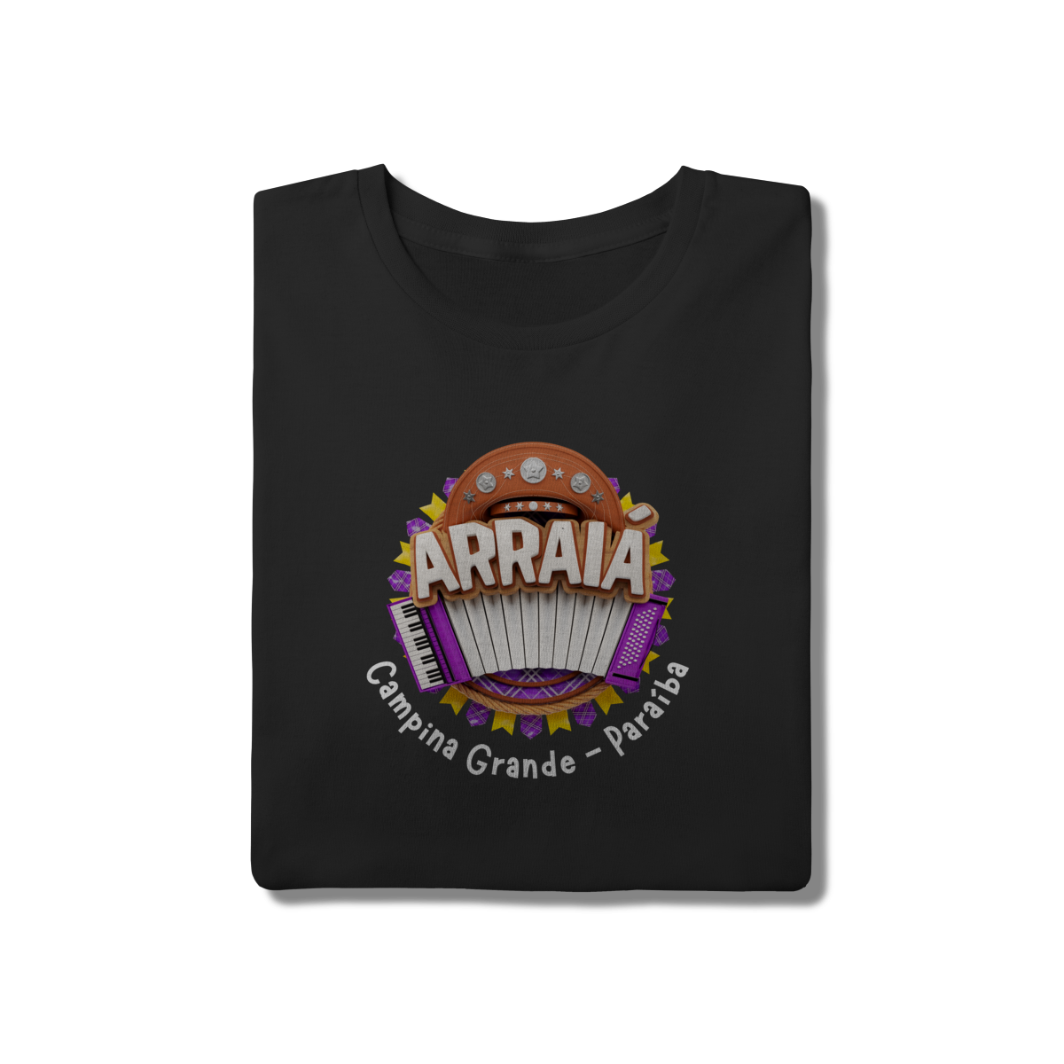 Esta camisa celebra Campina Grande, reconhecida nacionalmente como a capital do Maior São João do Mundo. A estampa traz a sanfona em destaque, símbolo do forró e da música nordestina, acompanhada de elementos típicos do arraial que remetem à alegria, às cores e à tradição das festas juninas que transformam a cidade todos os anos.