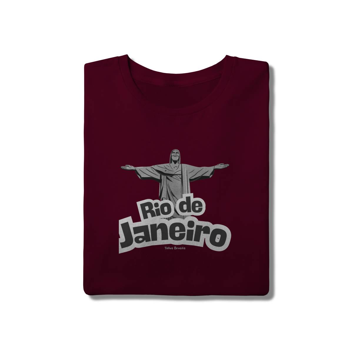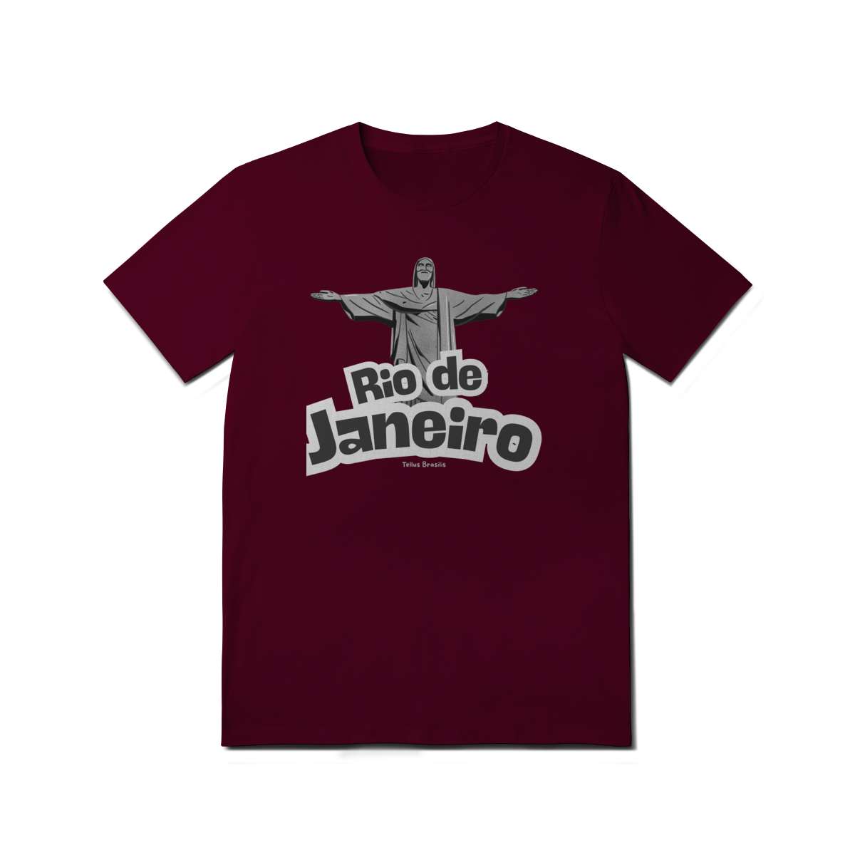 O nome Rio de Janeiro aparece em tipografia robusta e dinâmica, reforçando o caráter urbano e icônico da estampa. A composição transmite orgulho, pertencimento e admiração por uma das cidades mais reconhecidas do mundo, conectando espiritualidade, paisagem e cultura.