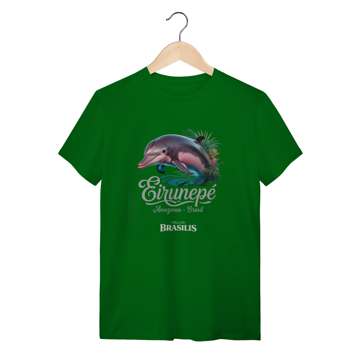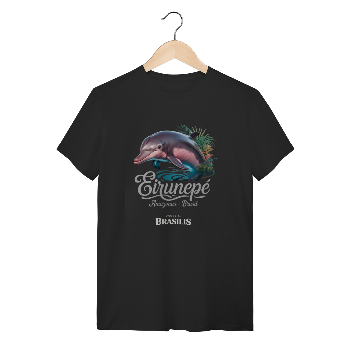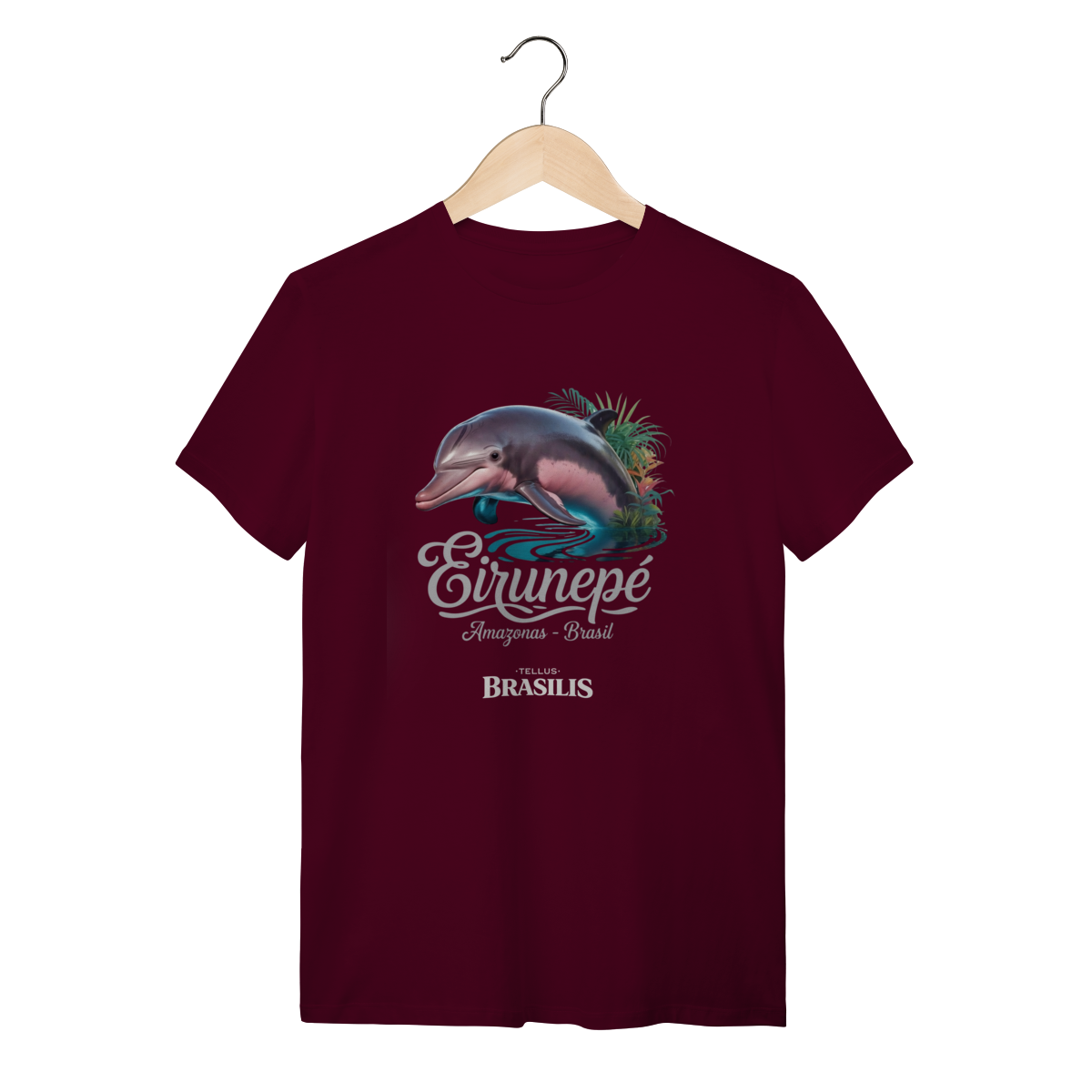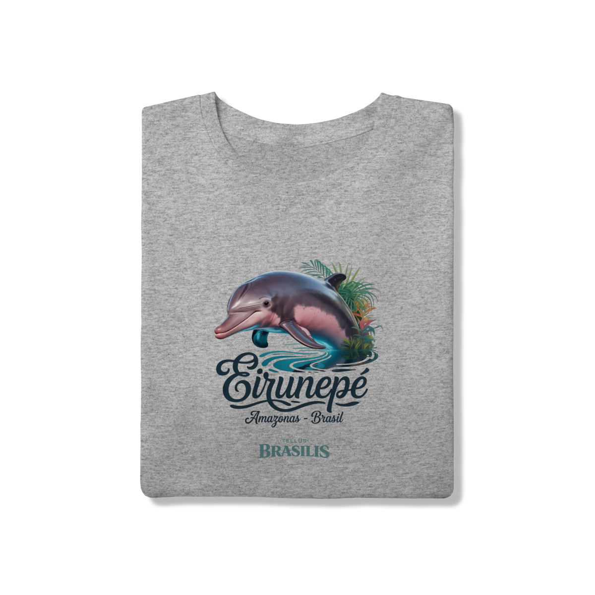 Localizada às margens do Rio Juruá, Eirunepé é conhecida por sua paisagem exuberante, pela biodiversidade abundante e pela vida simples e resiliente de seu povo. A imagem combina o boto com a vegetação amazônica e o reflexo da água, representando harmonia, sensibilidade e a conexão espiritual que muitos habitantes da região mantêm com o ambiente natural.