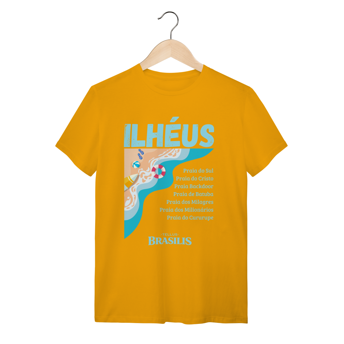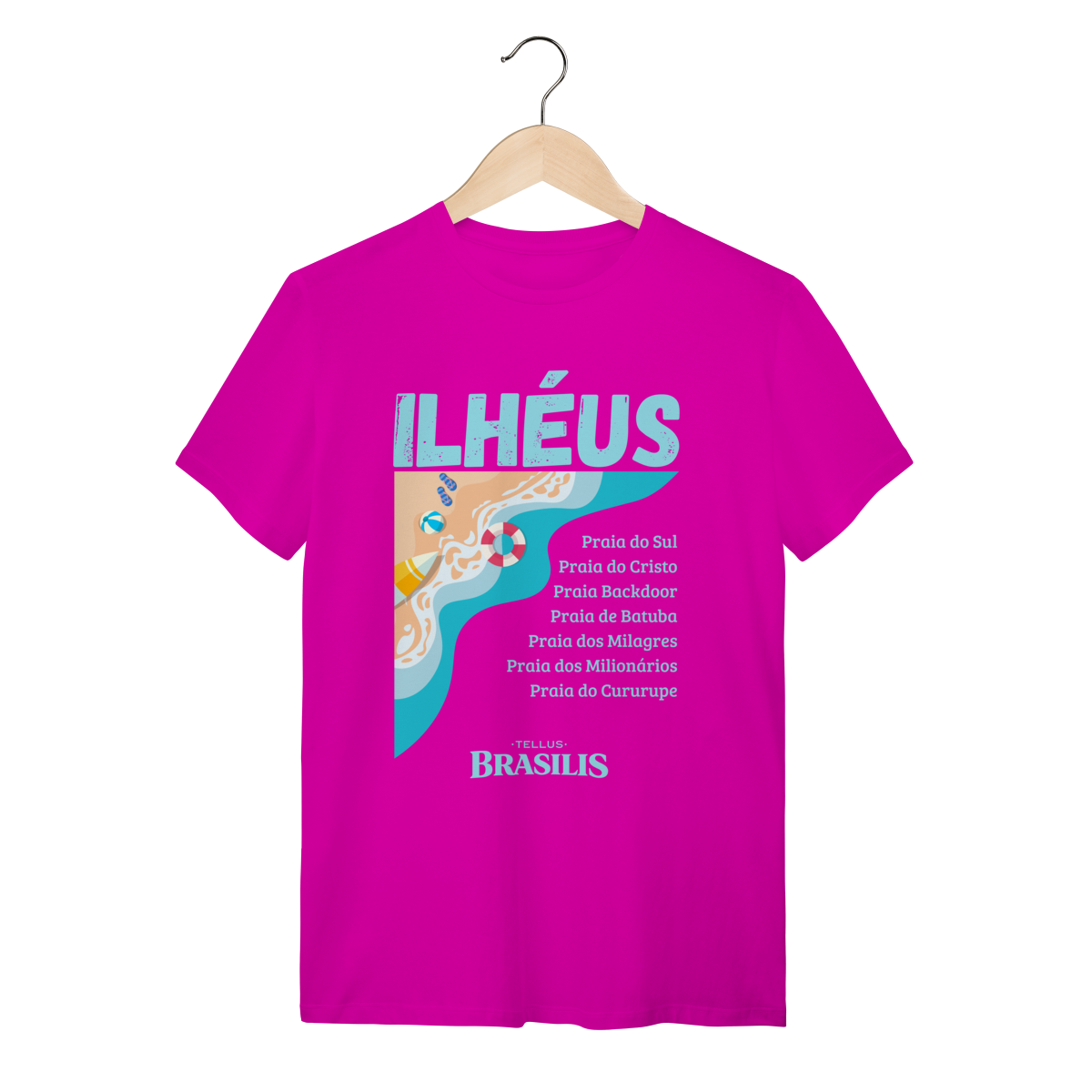 Esta camisa celebra Ilhéus, Bahia, destacando o litoral exuberante da cidade por meio de uma estampa leve e moderna, inspirada no encontro do mar com a areia. O design valoriza algumas das praias mais conhecidas da região — como Praia do Sul, Praia do Cristo, Backdoor, Batuba, Milagres, Milionários e Cururupe — formando um verdadeiro mapa afetivo do destino.