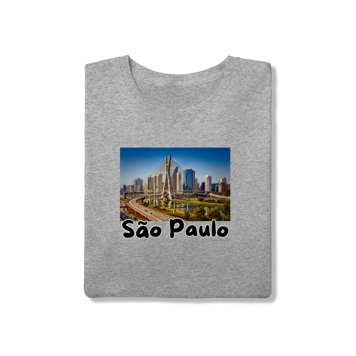 Esta camisa destaca a Ponte Estaiada Octávio Frias de Oliveira, um dos maiores ícones arquitetônicos de São Paulo. A estampa representa modernidade, movimento e inovação, refletindo o ritmo intenso e a força urbana da maior metrópole da América do Sul.