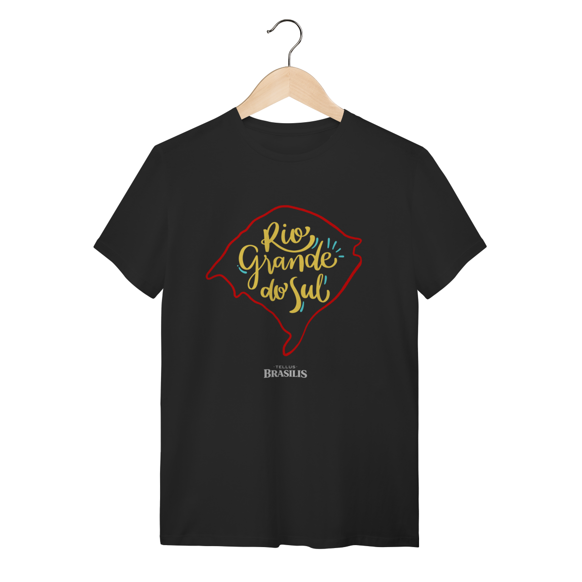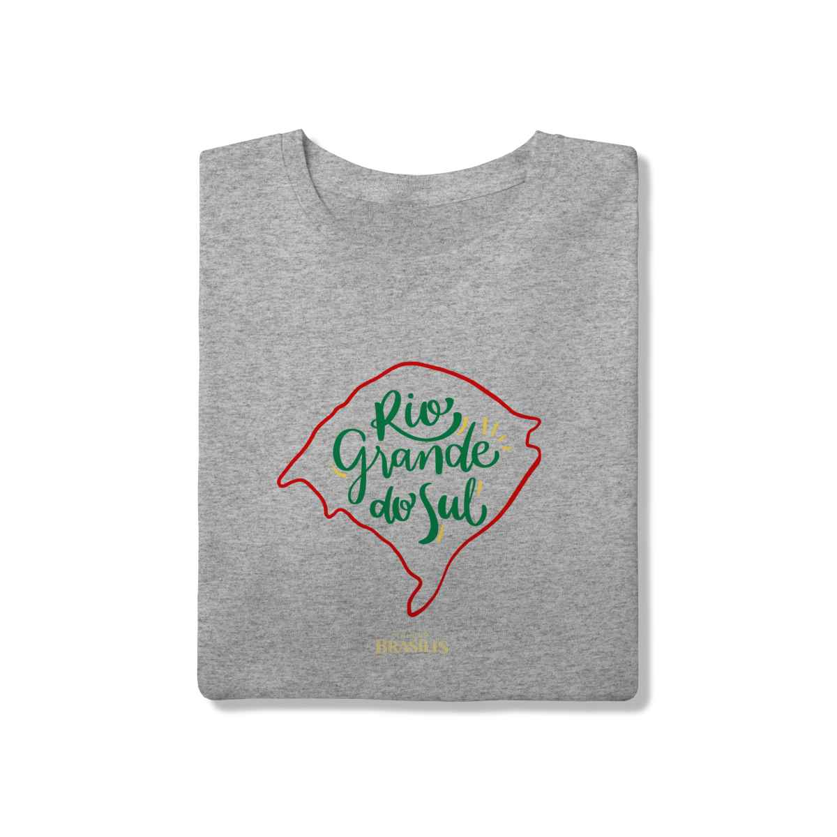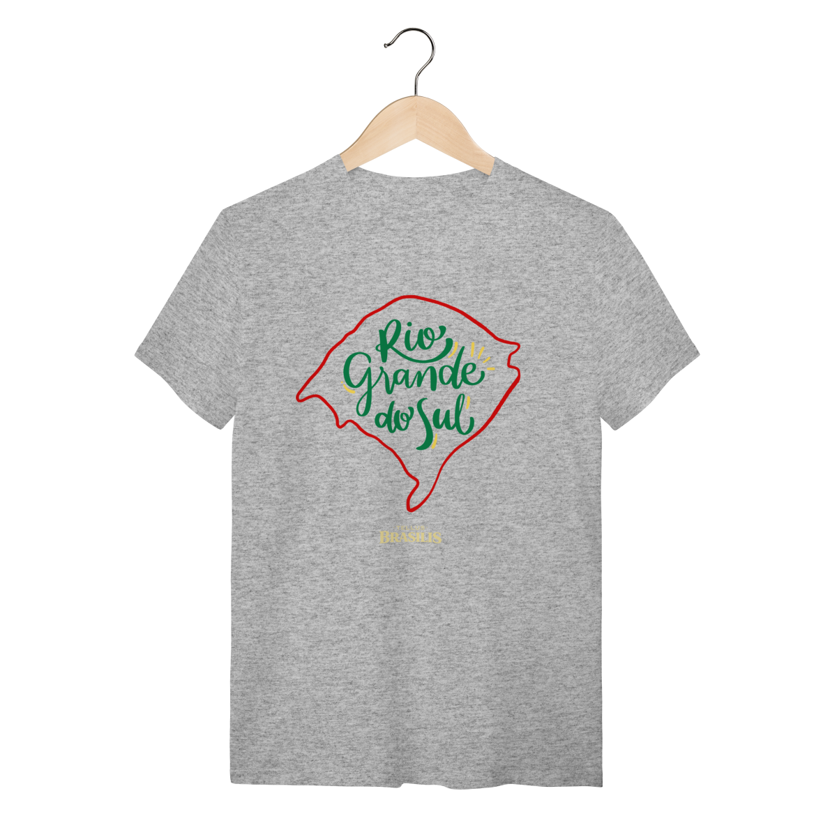 Esta camisa destaca o nome Rio Grande do Sul inserido no formato do mapa gaúcho, simbolizando identidade, pertencimento e orgulho pelas tradições do estado.
