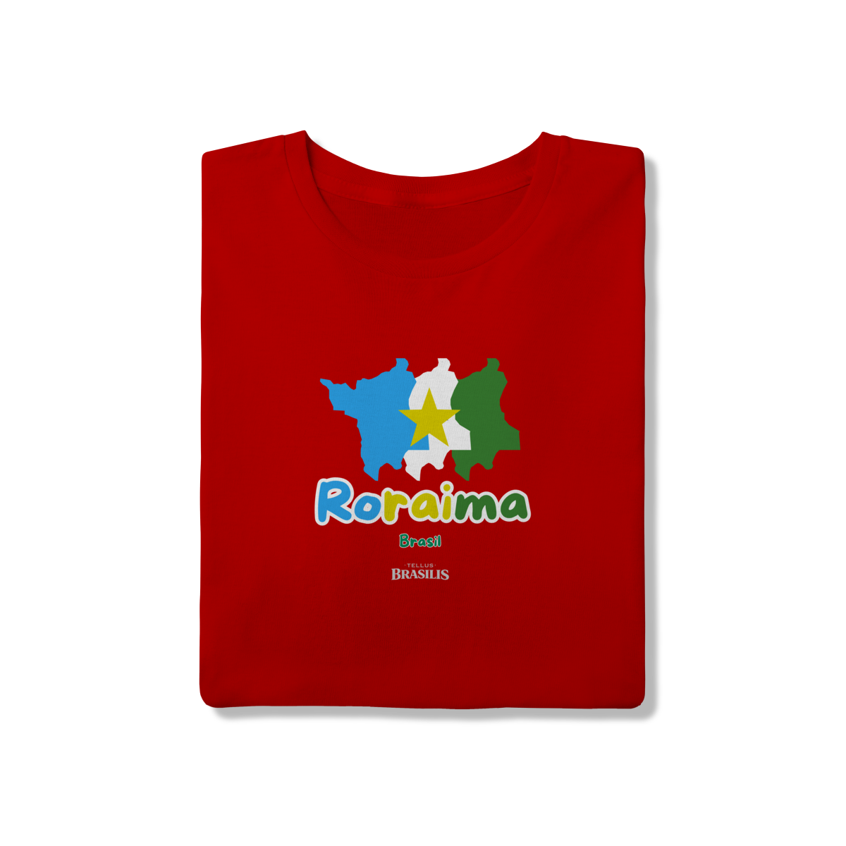Esta estampa apresenta o mapa de Roraima de forma estilizada, preenchido com as cores que representam a identidade do estado, em uma composição simples, vibrante e cheia de significado. A estrela em destaque simboliza a posição única de Roraima no extremo norte do Brasil, reforçando seu protagonismo geográfico, cultural e histórico dentro da Amazônia brasileira.