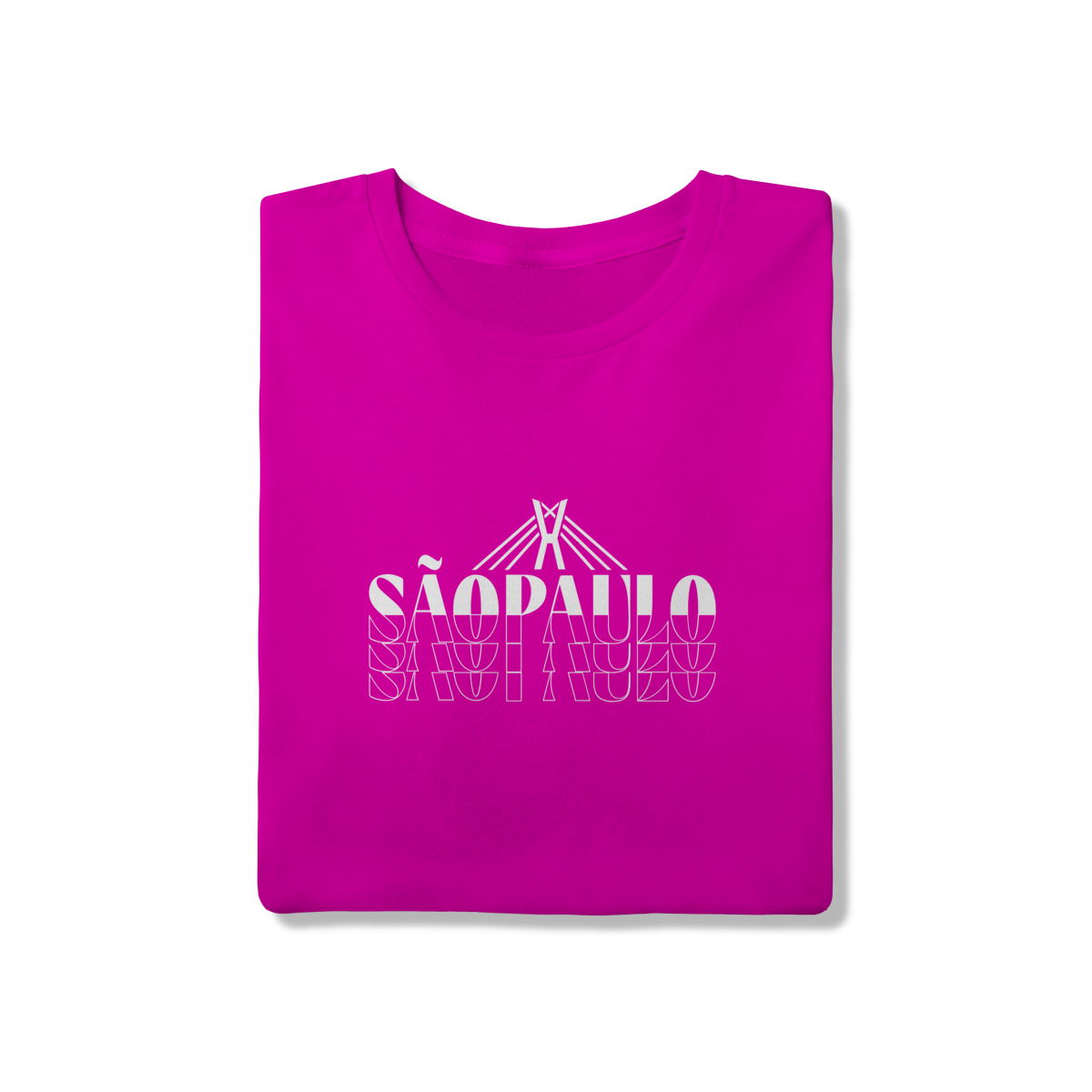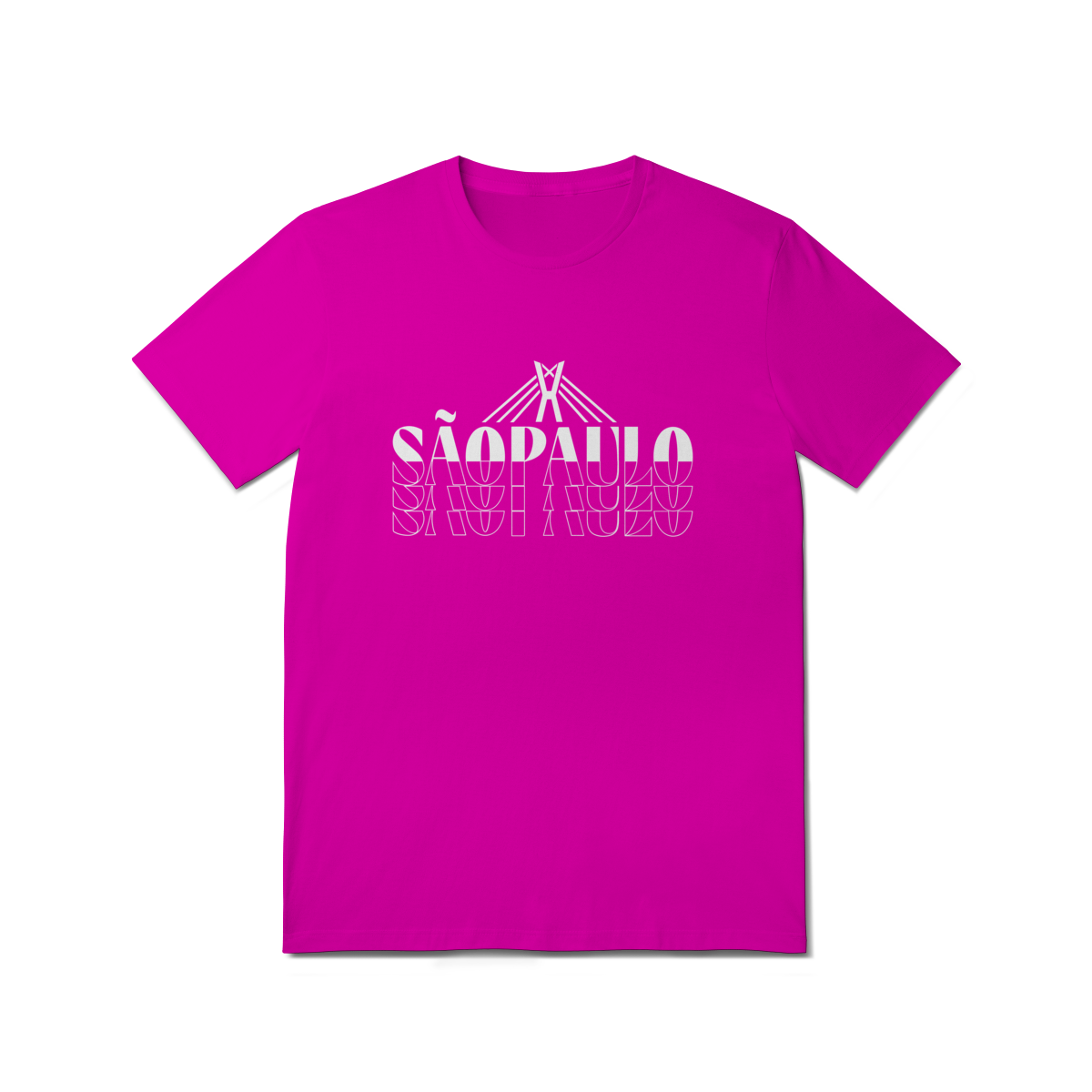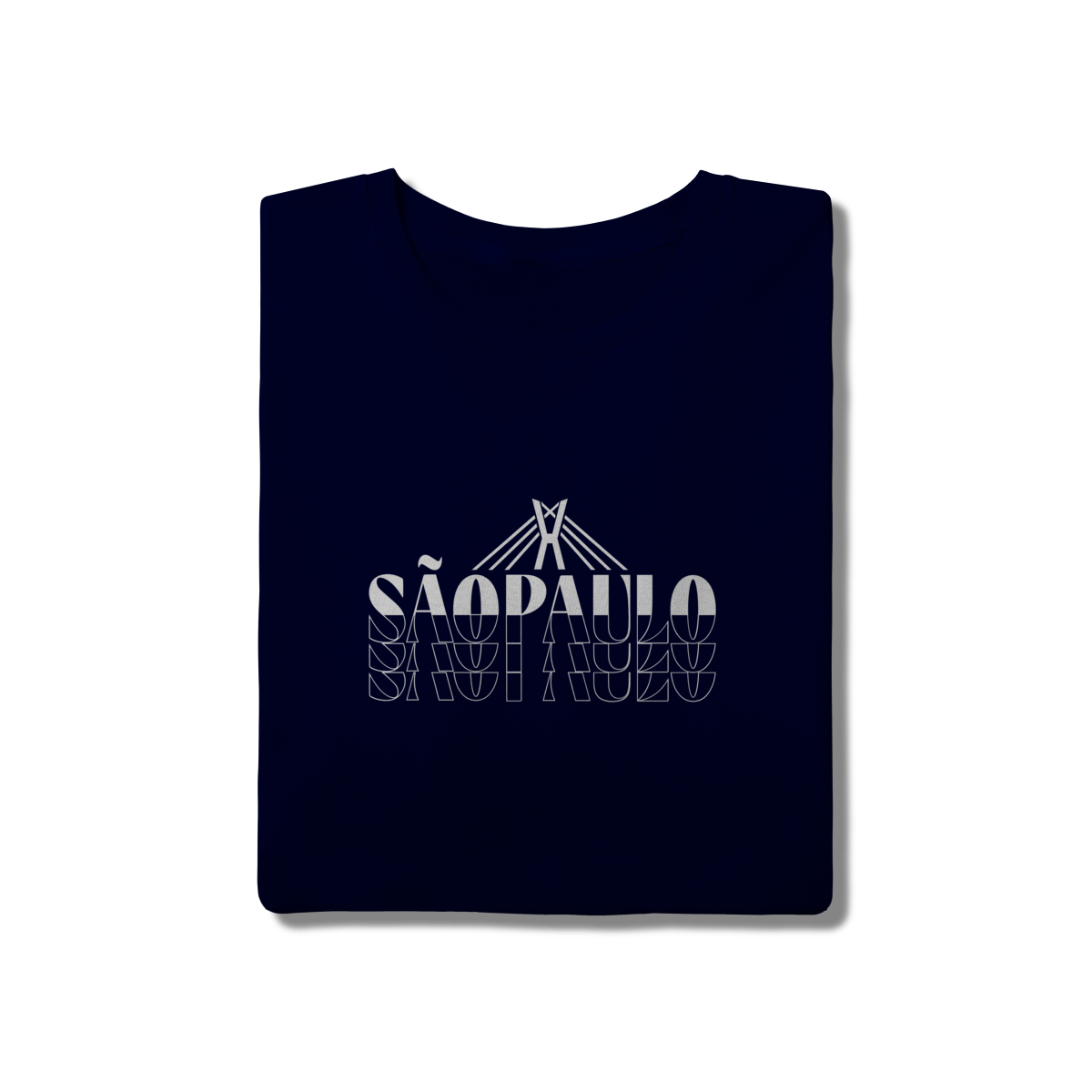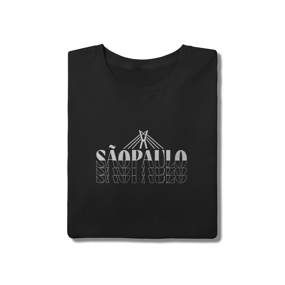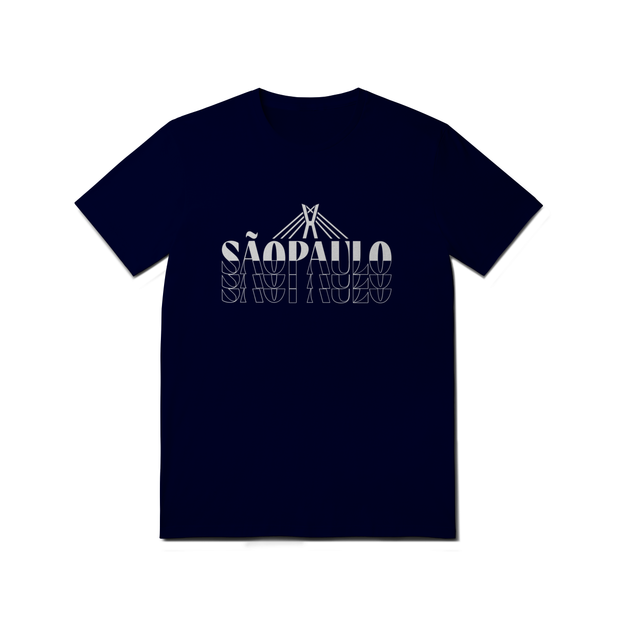 Esta camisa traduz São Paulo em uma linguagem gráfica ousada e contemporânea. O design em alto contraste destaca o nome da cidade em composição tipográfica marcante, enquanto o elemento linear no topo remete à Ponte Estaiada Octávio Frias de Oliveira, símbolo de modernidade, engenharia e movimento urbano.