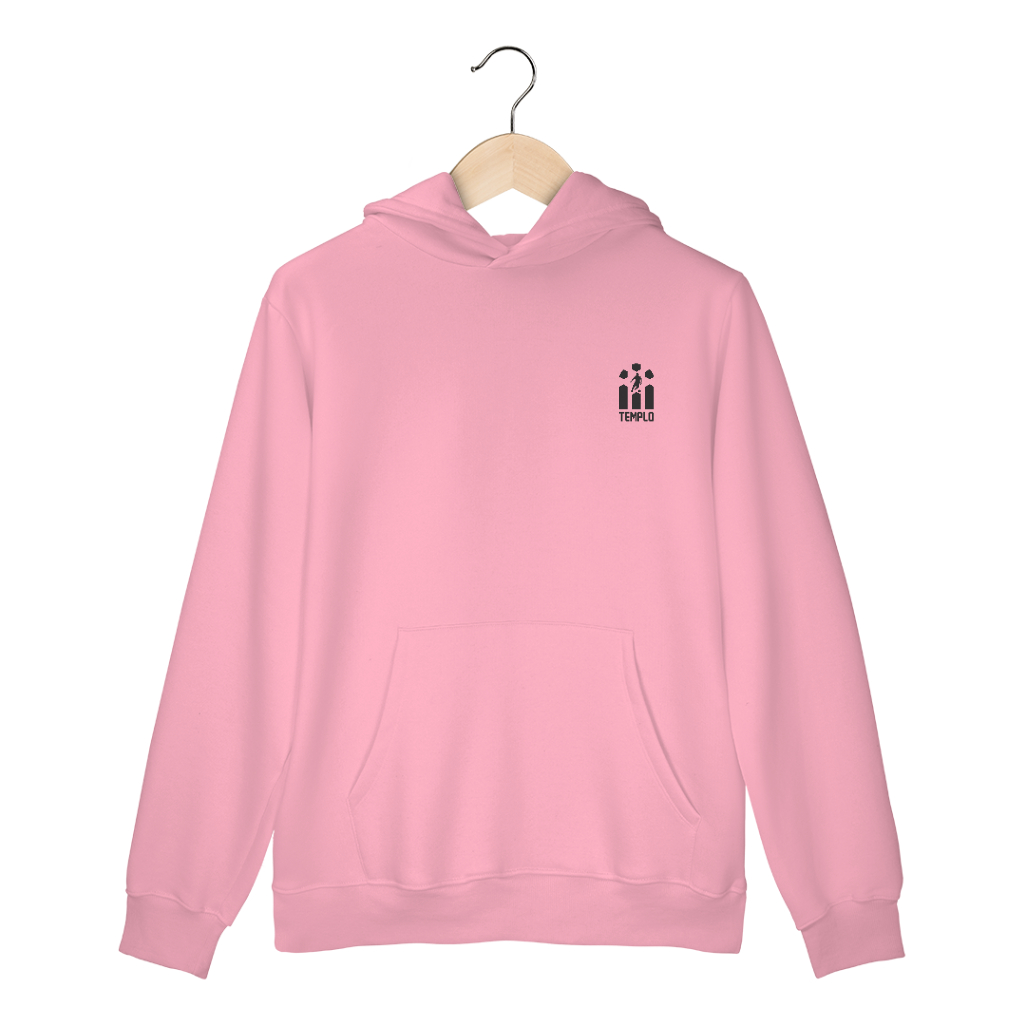 Características: Bolso frontal tipo canguru, capuz com cordão e acabamento confortável, ideal para uso pessoal e corporativo.