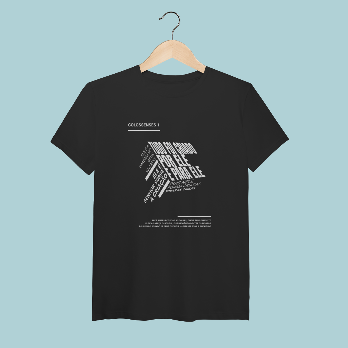 Inspirada em Colossenses 1:15-20, esta camiseta celebra a Supremacia e a Centralidade de Cristo como Criador, Mantenedor e Redentor de todas as coisas. Um design moderno de "nuvem de palavras" que resume o poder e a suficiência do Filho.