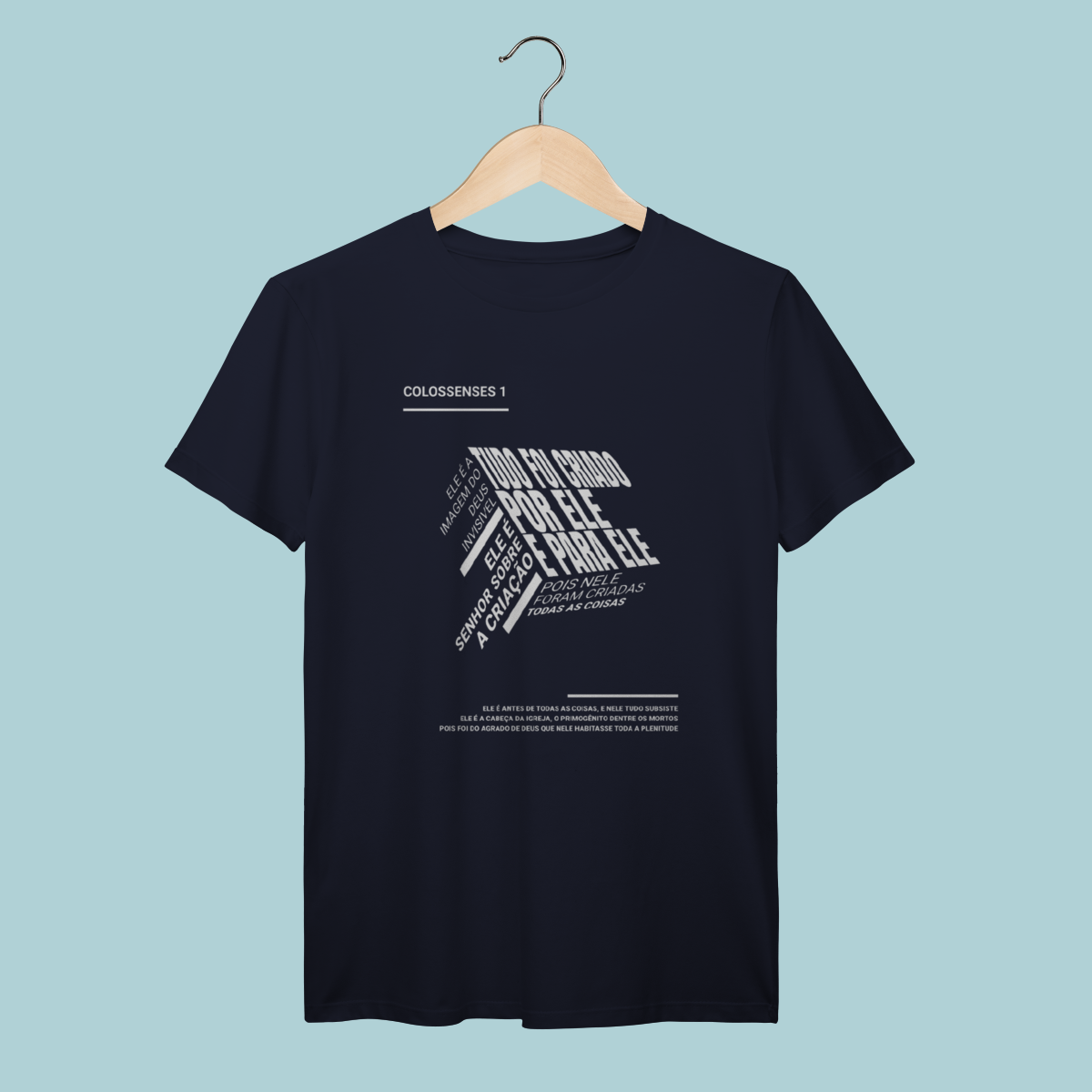 Inspirada em Colossenses 1:15-20, esta camiseta celebra a Supremacia e a Centralidade de Cristo como Criador, Mantenedor e Redentor de todas as coisas. Um design moderno de "nuvem de palavras" que resume o poder e a suficiência do Filho.