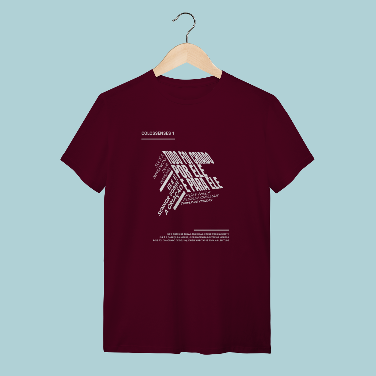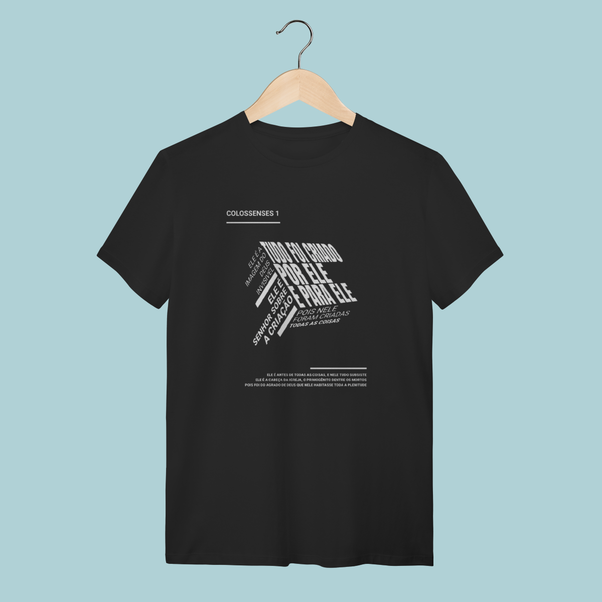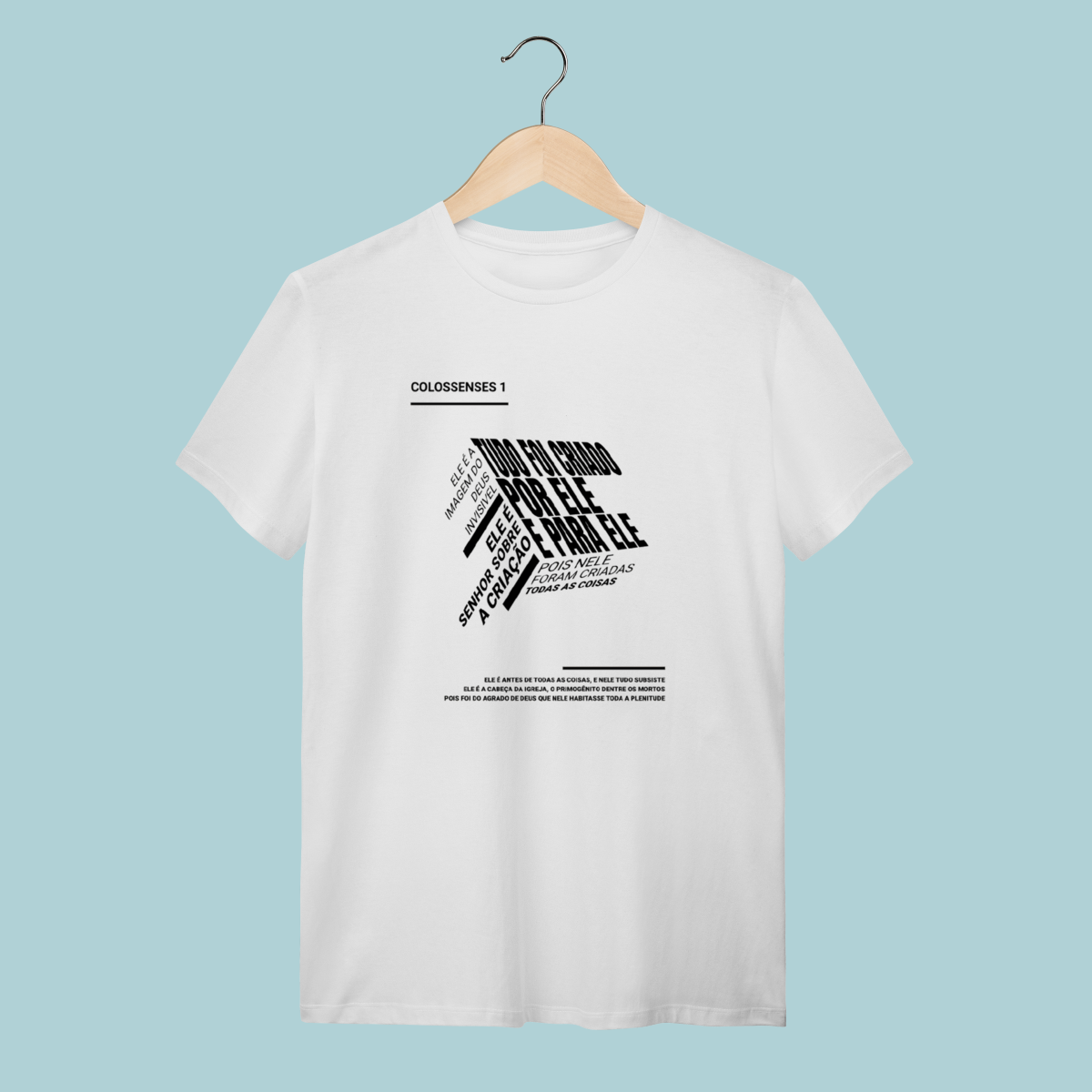 Inspirada em Colossenses 1:15-20, esta camiseta celebra a Supremacia e a Centralidade de Cristo como Criador, Mantenedor e Redentor de todas as coisas. Um design moderno de "nuvem de palavras" que resume o poder e a suficiência do Filho.
