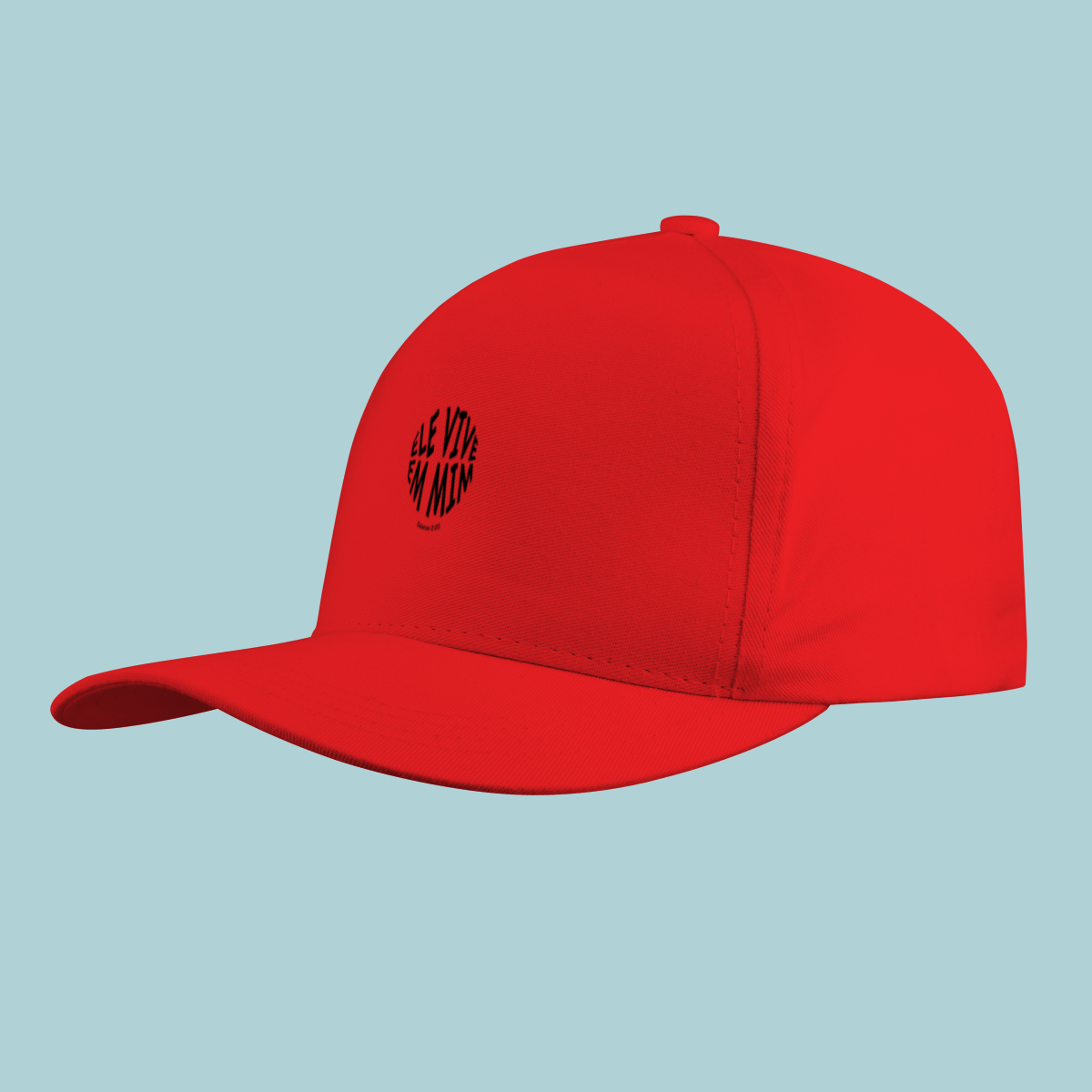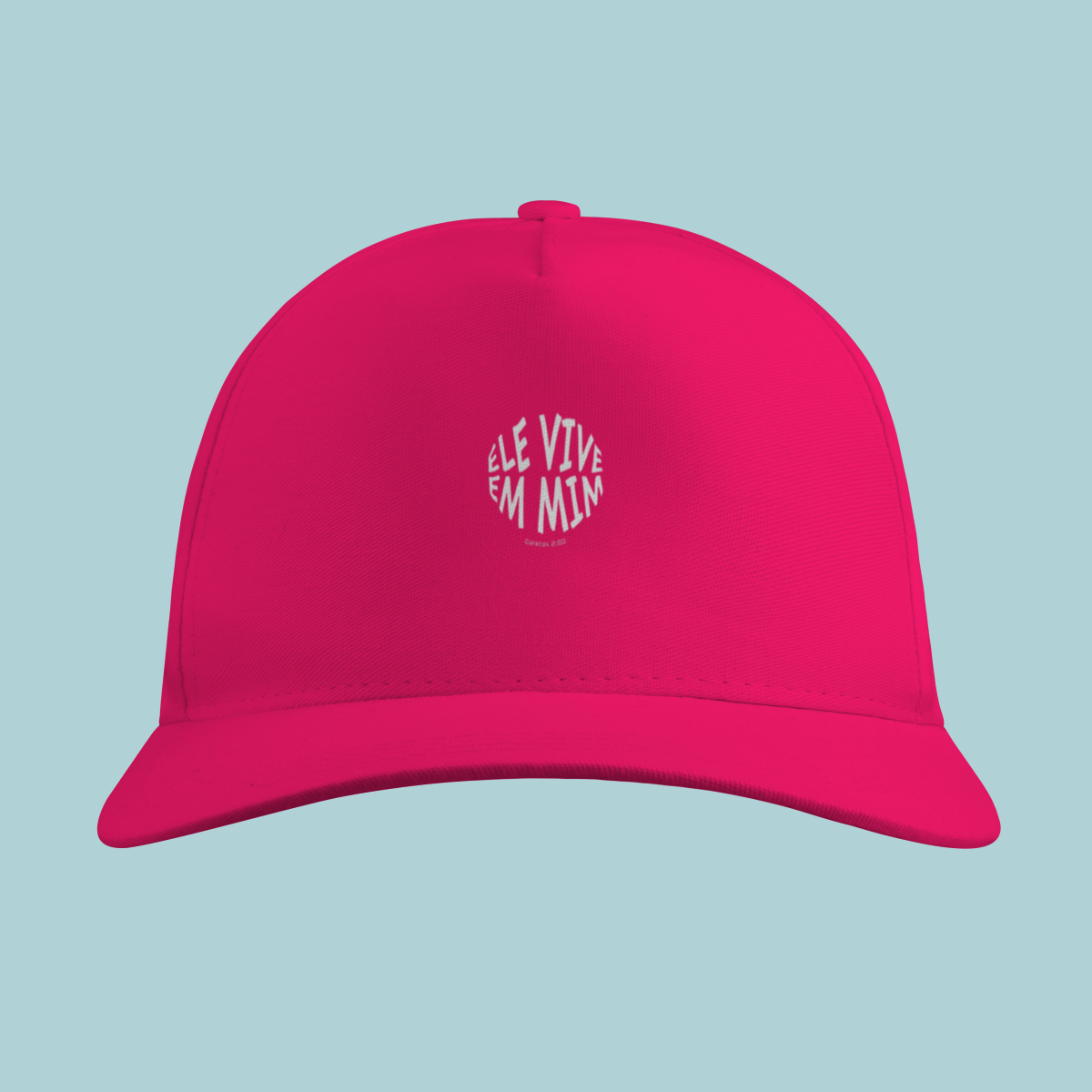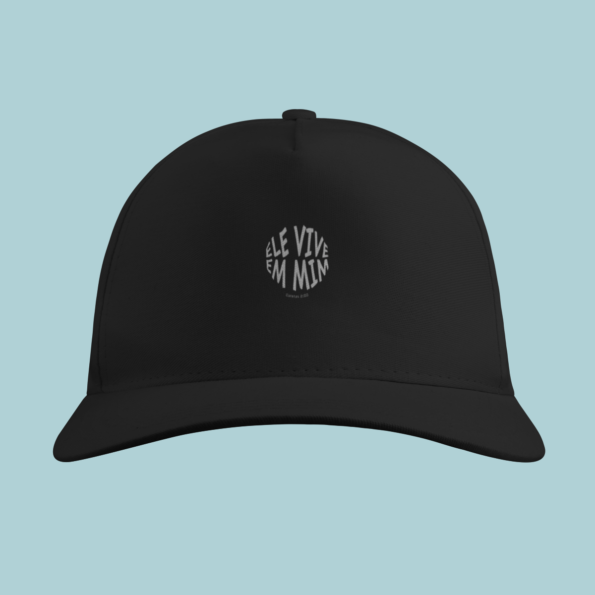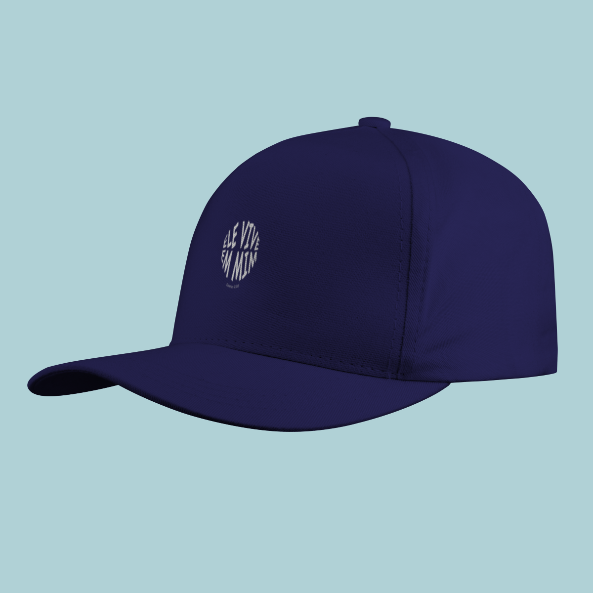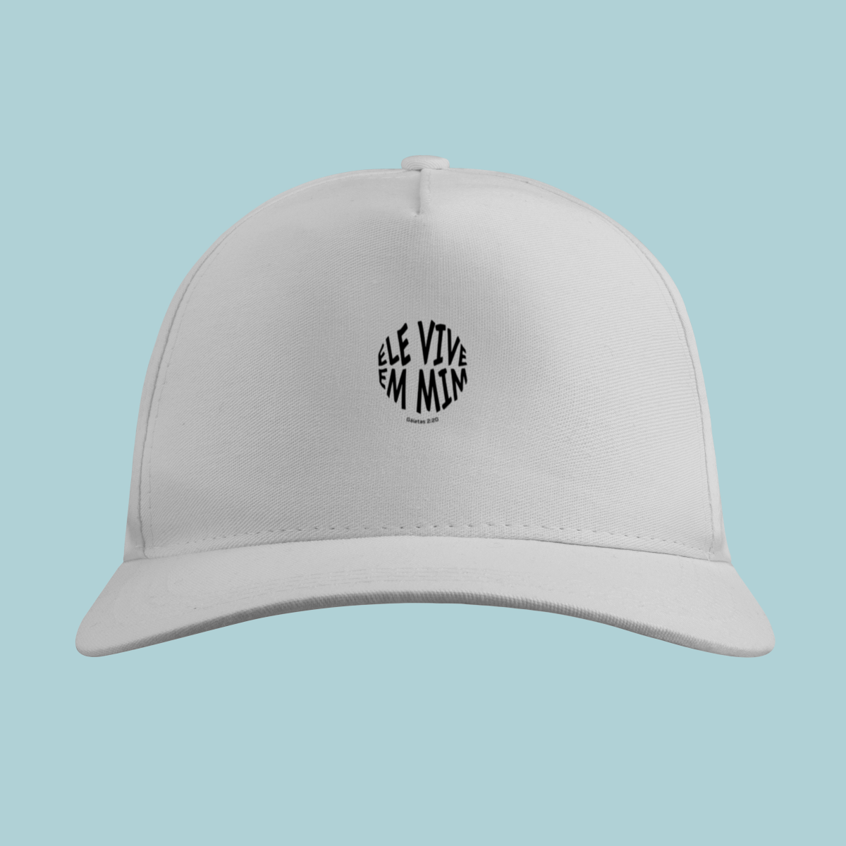 Uma declaração de fé impactante! Este Boné celebra a verdade transformadora de Gálatas 2:20: "Não mais eu, mas Cristo vive em mim." O design circular moderno e a tipografia distorcida refletem a mudança radical que a justificação pela fé opera no crente.