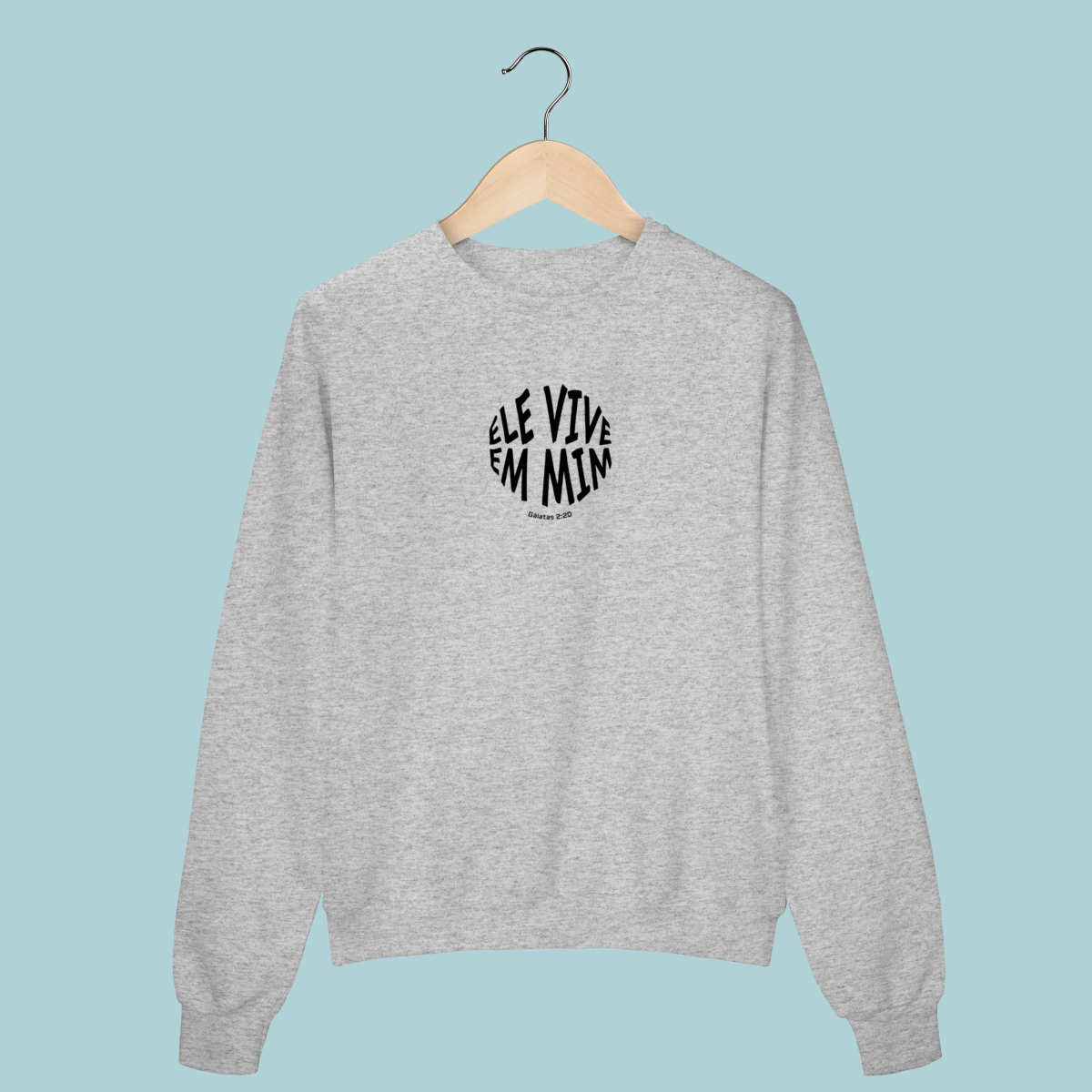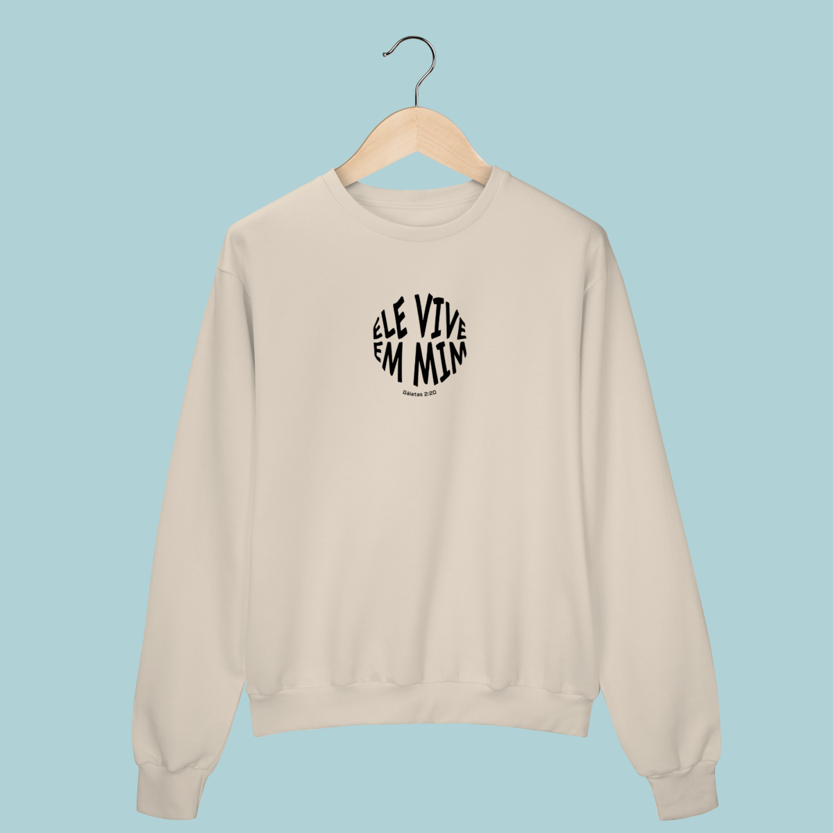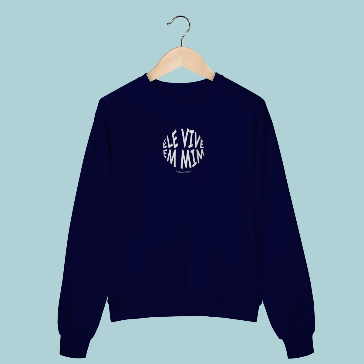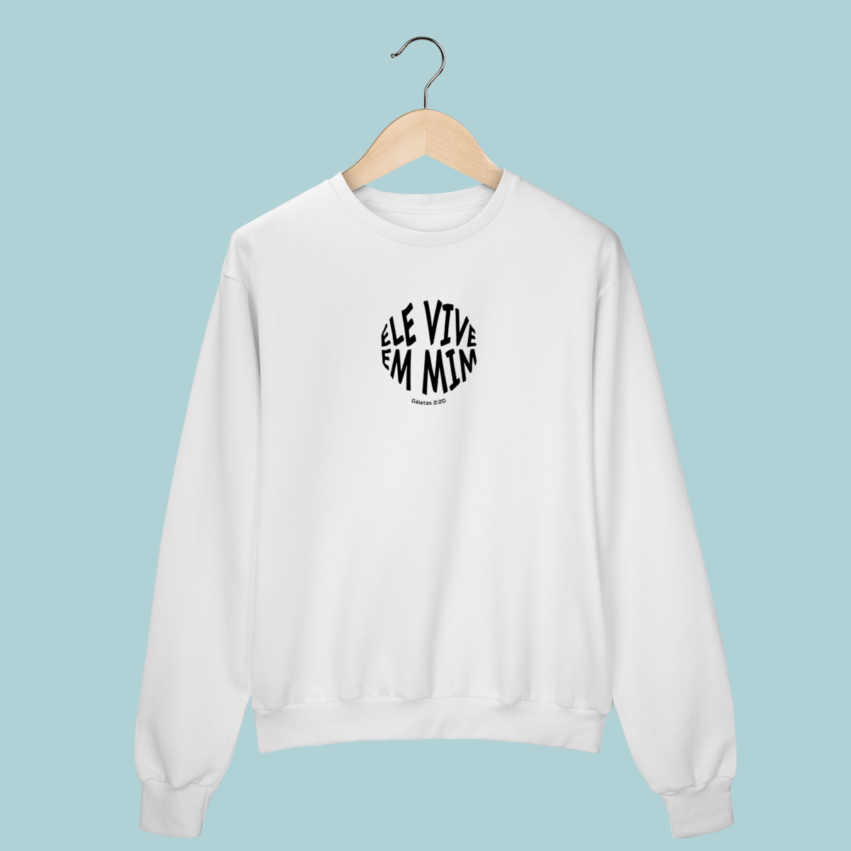 Uma declaração de fé impactante! Este Moletom celebra a verdade transformadora de Gálatas 2:20: "Não mais eu, mas Cristo vive em mim." O design circular moderno e a tipografia distorcida refletem a mudança radical que a justificação pela fé opera no crente.