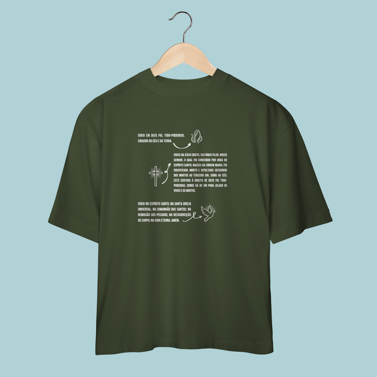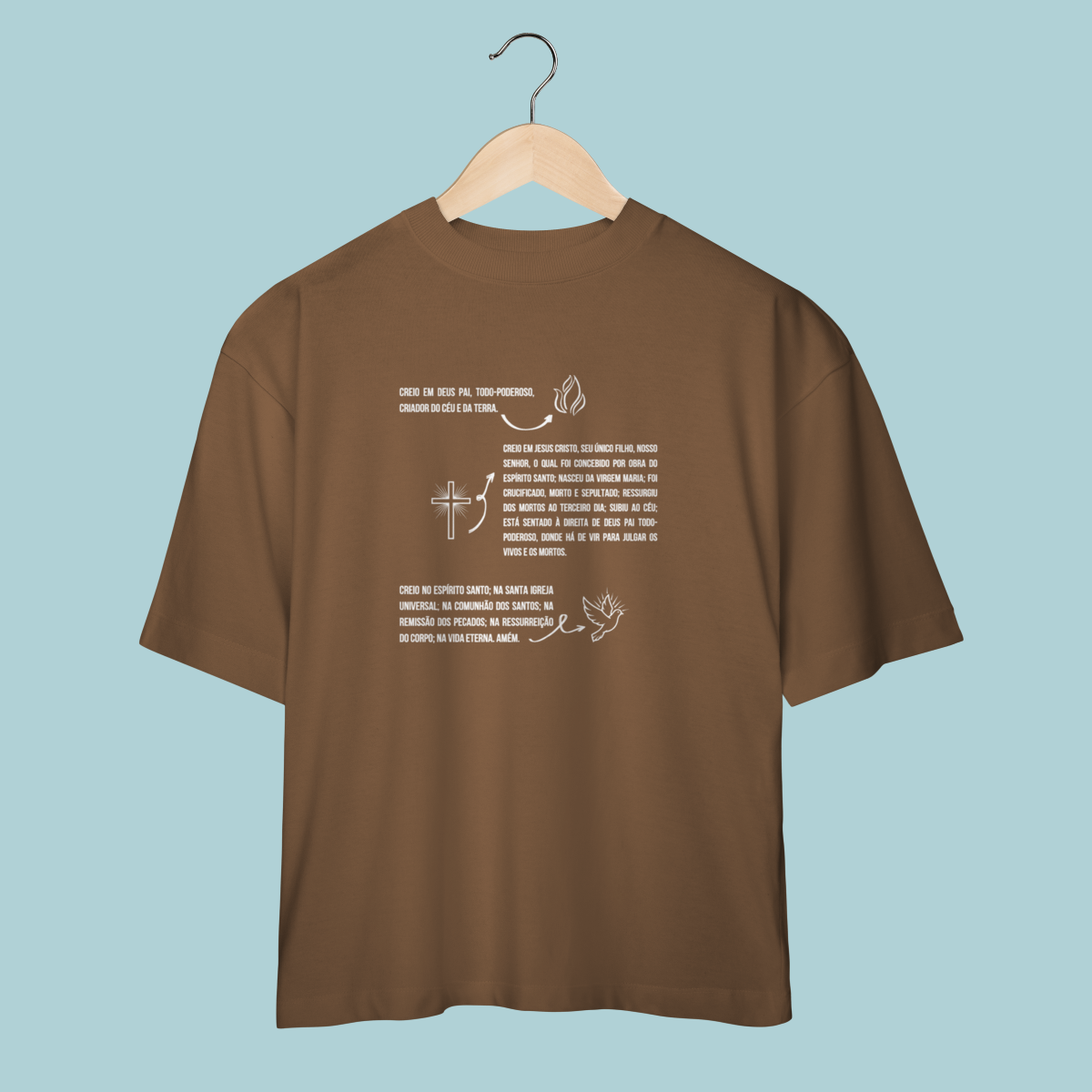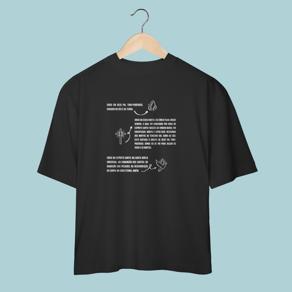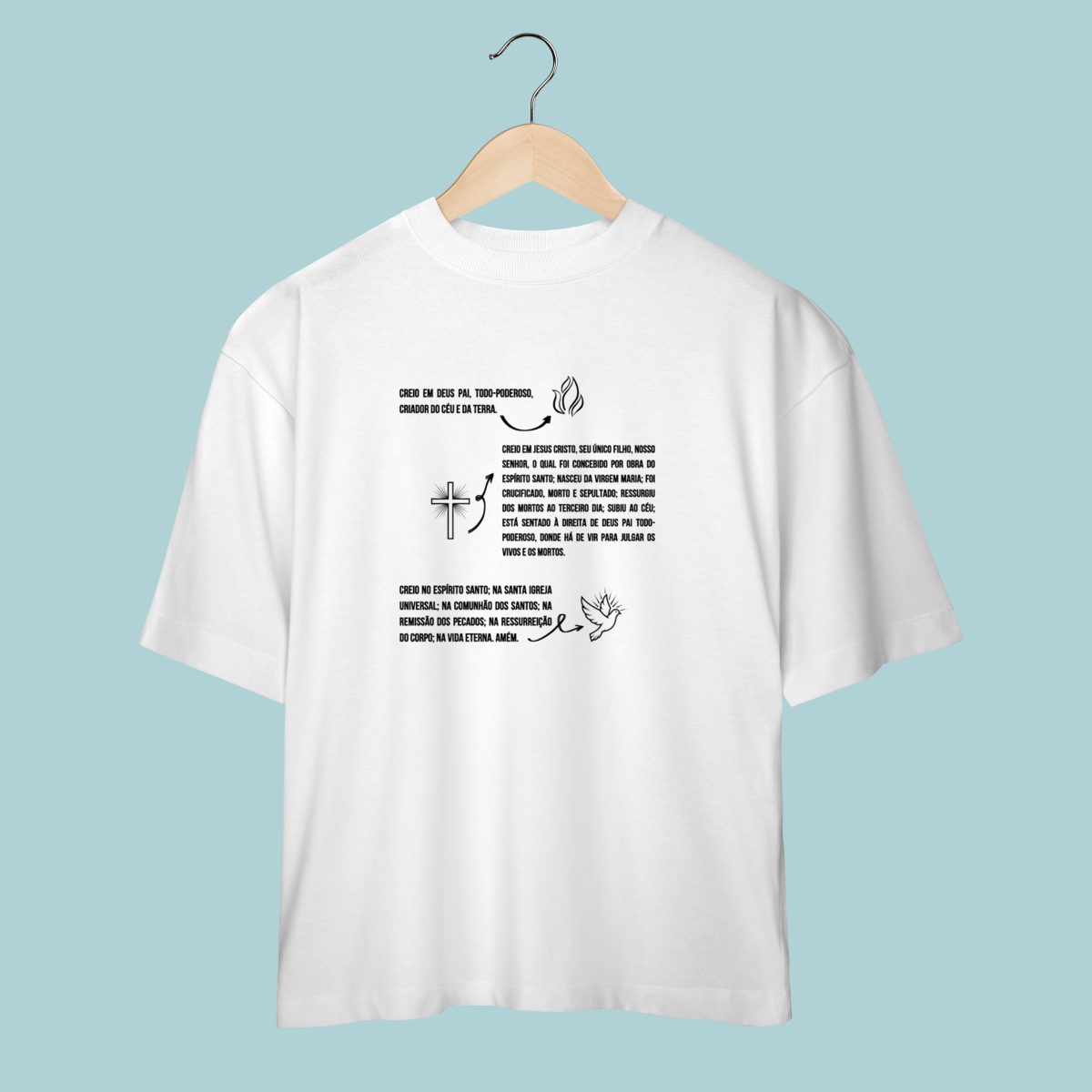Vista as fundações da sua fé! Esta camiseta estampa o Credo Apostólico com ilustrações da Trindade, celebrando as verdades eternas defendidas nos primeiros séculos da Igreja. Um lembrete da ortodoxia reafirmada por concílios como o de Niceia e essencial para todo cristão reformado.