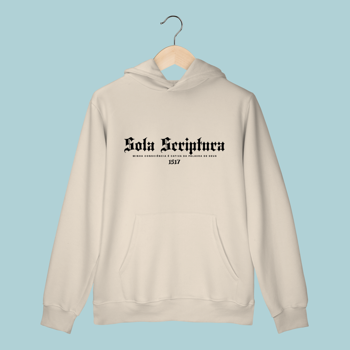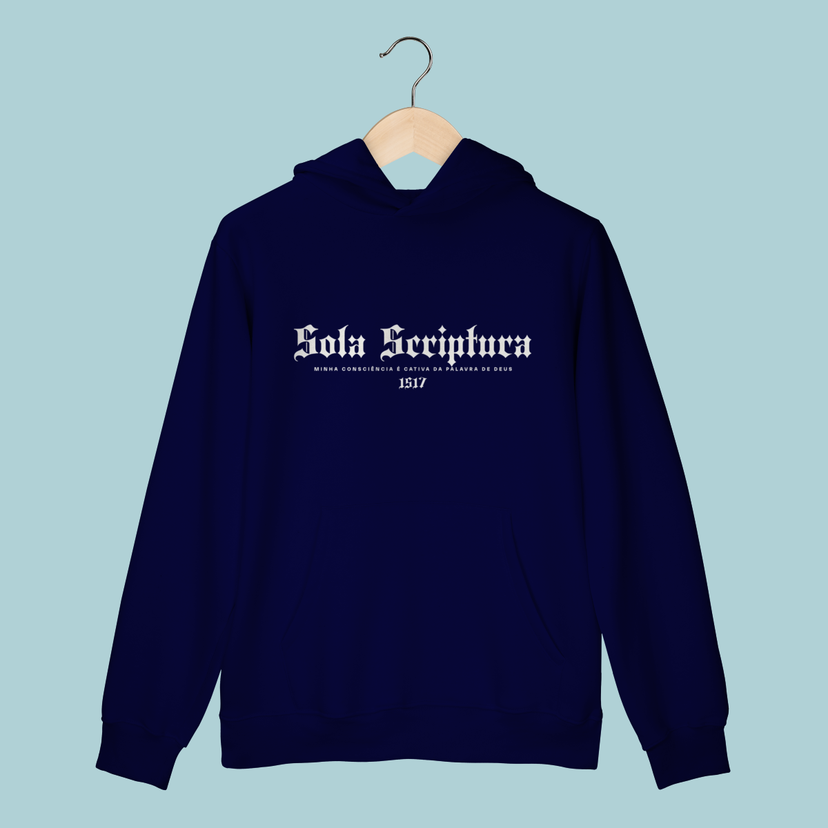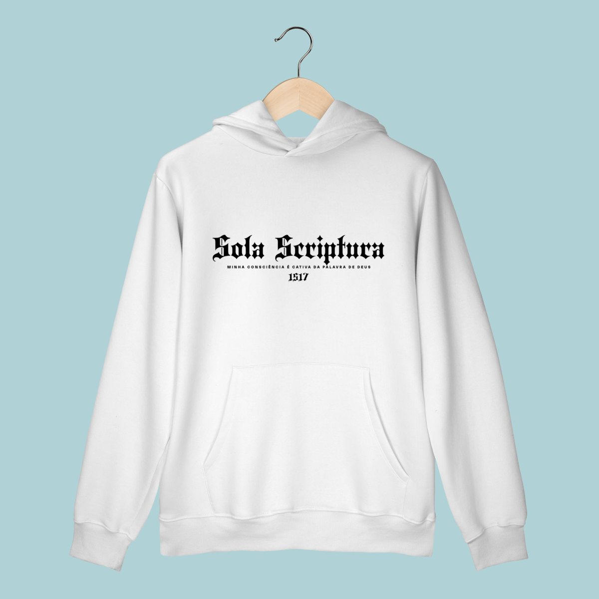 A confissão que iniciou a Reforma. Este Moletom celebra o Sola Scriptura, a doutrina de que a Bíblia é a única autoridade infalível de fé e prática. O design em tipografia gótica e o lema de Lutero lembram a coragem de ser cativos apenas da Palavra de Deus.