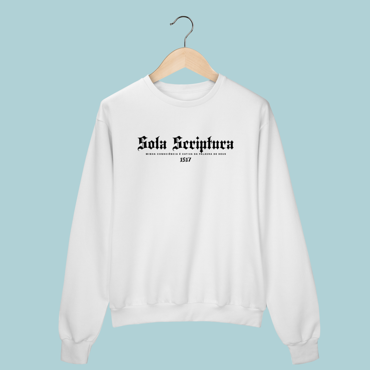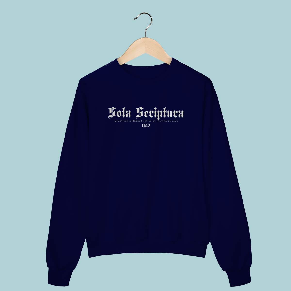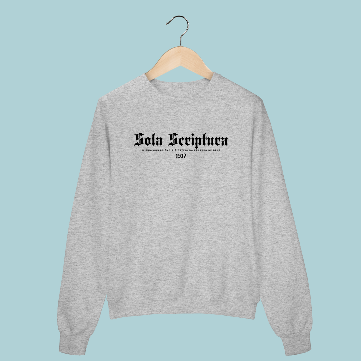 A confissão que iniciou a Reforma. Este Moletom celebra o Sola Scriptura, a doutrina de que a Bíblia é a única autoridade infalível de fé e prática. O design em tipografia gótica e o lema de Lutero lembram a coragem de ser cativos apenas da Palavra de Deus.