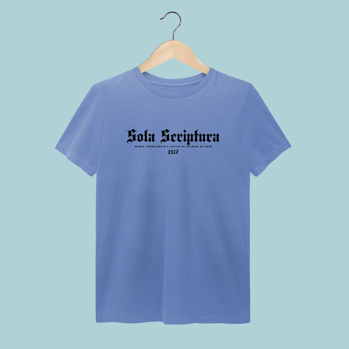 A confissão que iniciou a Reforma. Esta camiseta celebra o Sola Scriptura, a doutrina de que a Bíblia é a única autoridade infalível de fé e prática. O design em tipografia gótica e o lema de Lutero lembram a coragem de ser cativos apenas da Palavra de Deus.