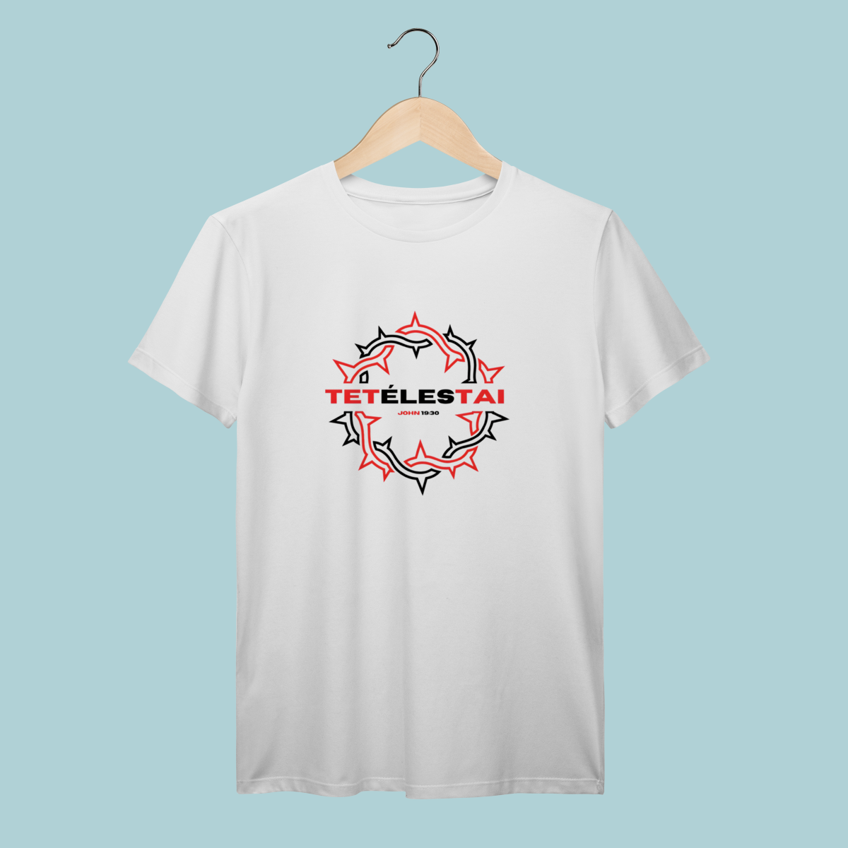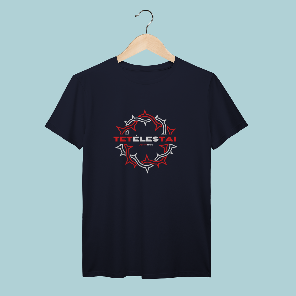 A palavra que mudou a eternidade: TETÉLESTAI. Esta T-Shirt celebra a verdade de João 19:30 ("Está Consumado"), a declaração da obra perfeita e suficiente de Cristo na cruz. O design com a coroa de espinhos estilizada e o corte oversized trazem conforto e profundidade teológica.