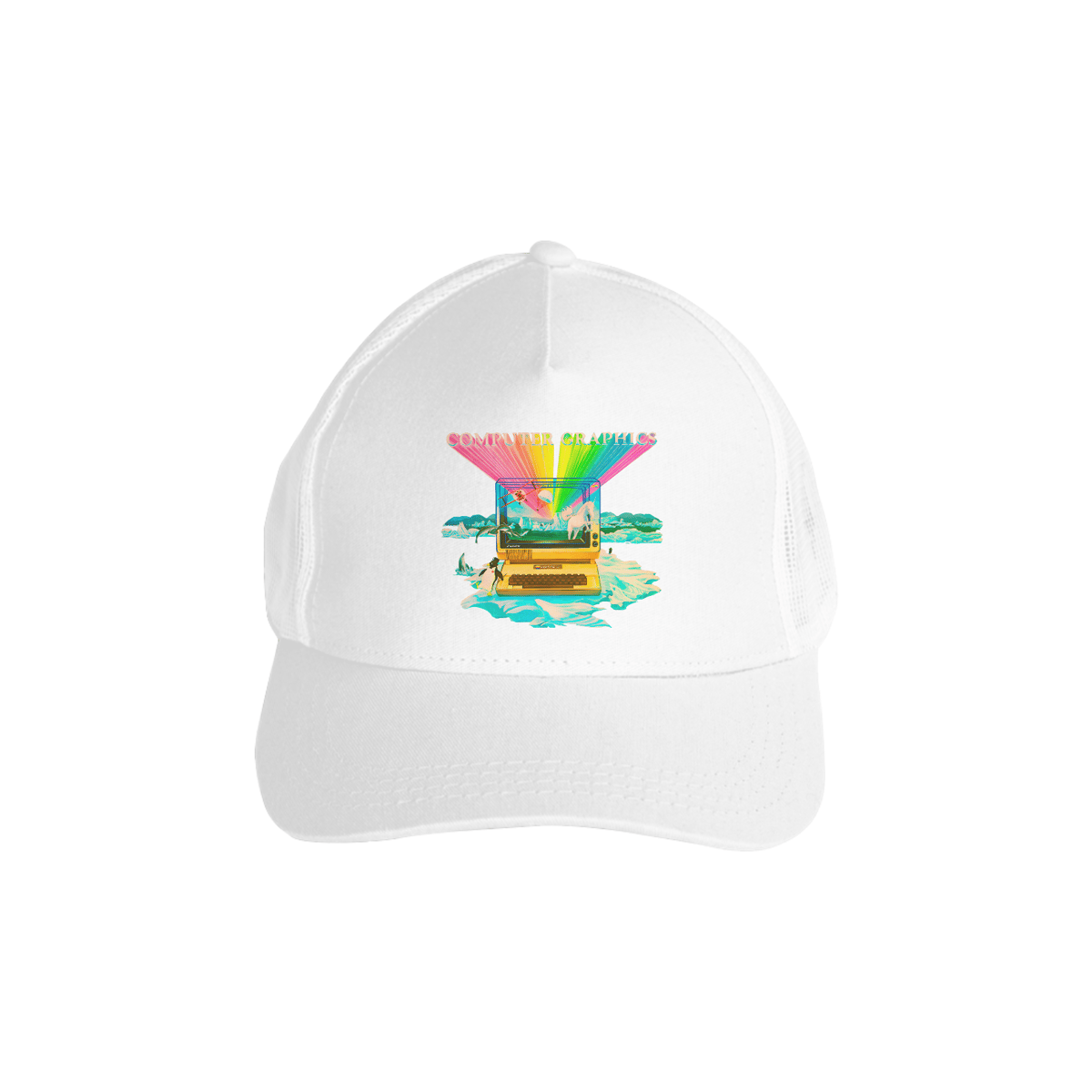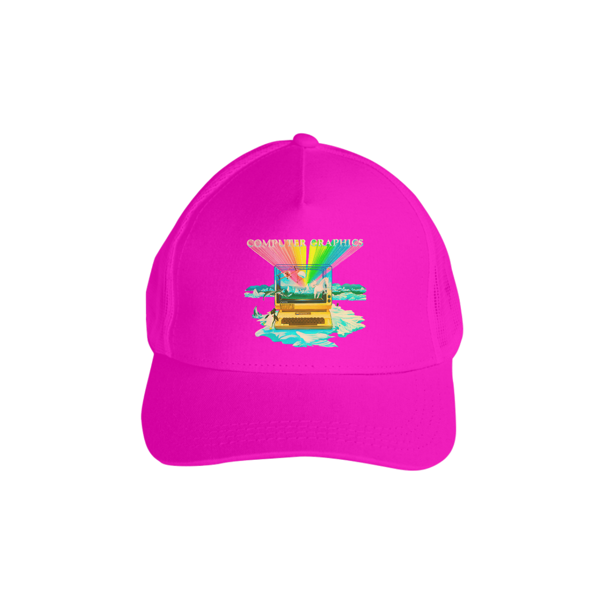 Quem viveu a era dos microcomputadores lembra: monitores tubulares, teclas ruidosas e gráficos que pareciam magia em 8/16 bits. Este boné celebra o encantamento dos primeiros “Computer Graphics” inspirado no Aplle II — arco-íris digital saindo da tela, pinguim, cavalo e paisagens impossíveis — uma viagem ao momento em que apertar “RUN” bastava para abrir um mundo novo.