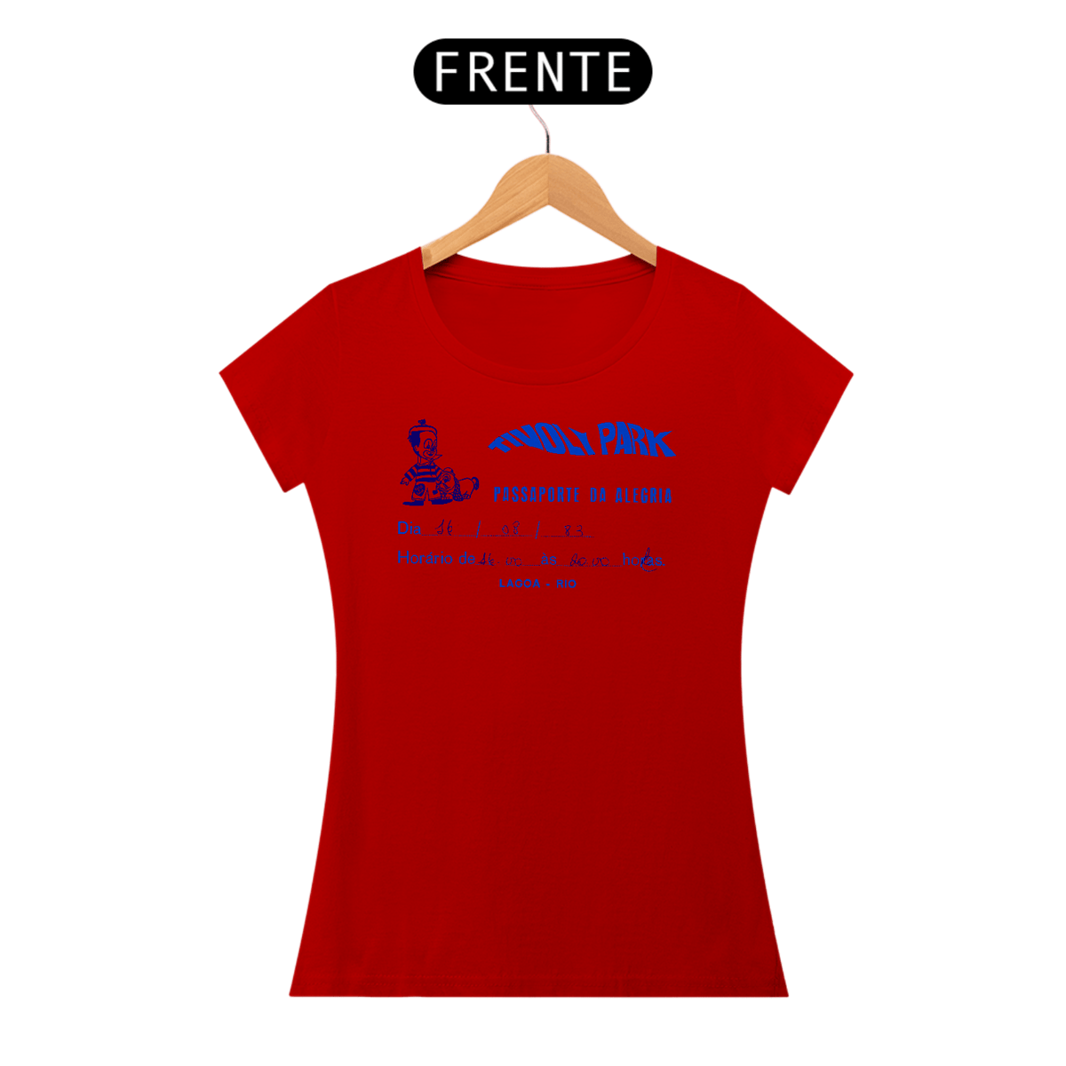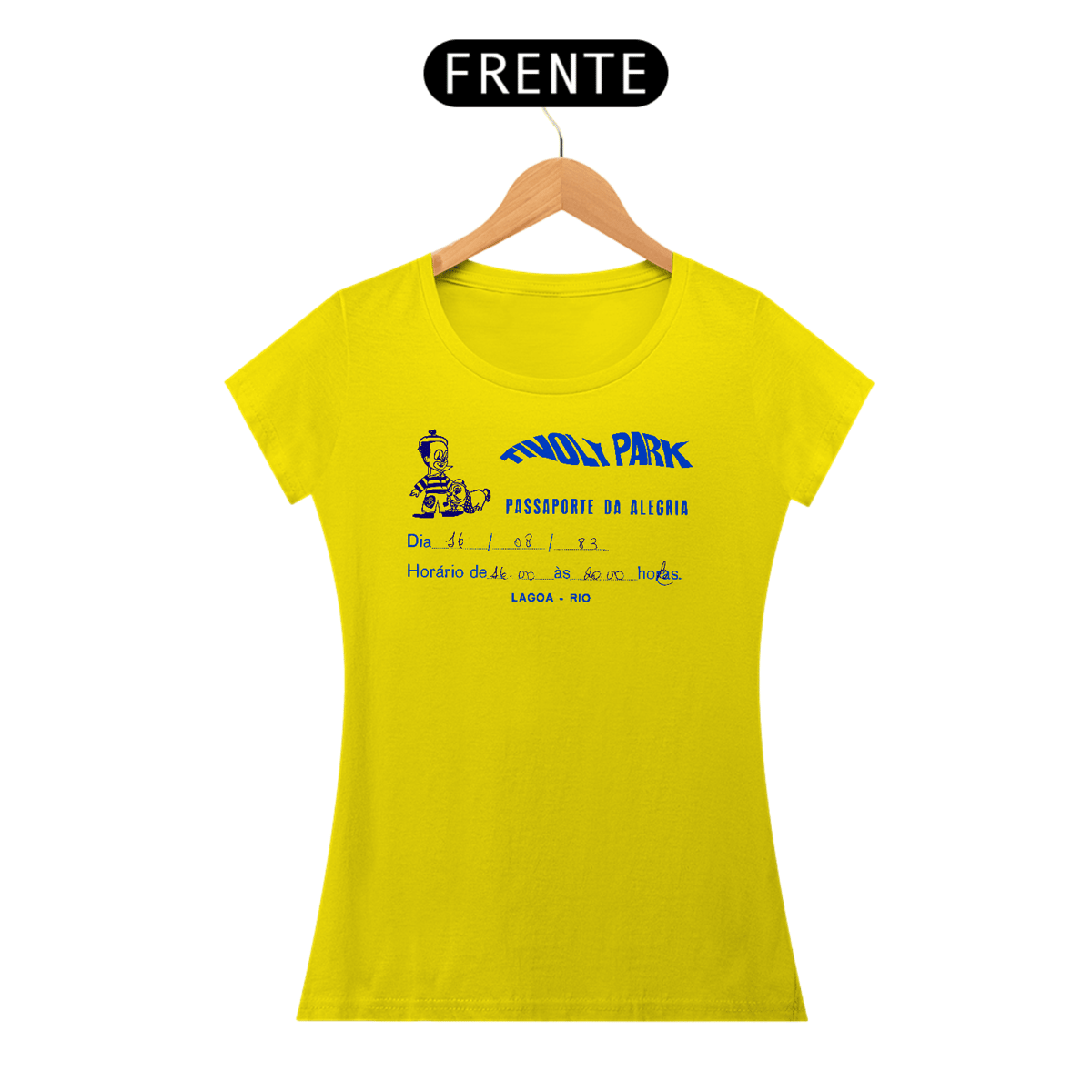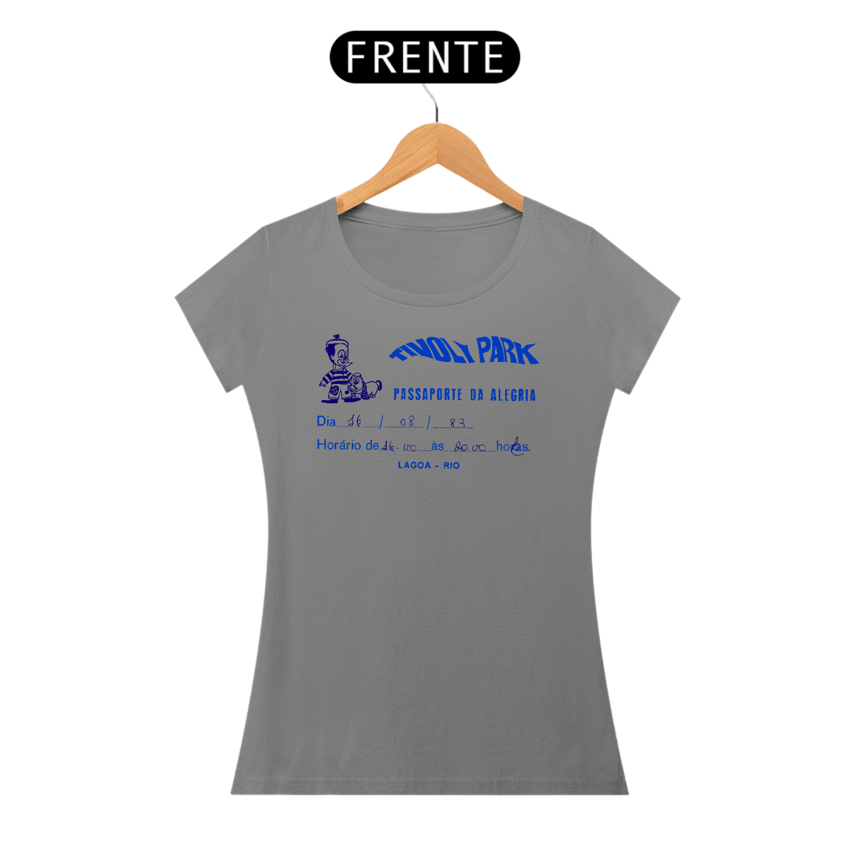 A arte preserva o jeitinho artesanal do ingresso do Tivoli Park na Lagoa. Limpamos, redesenhamos e mantivemos a escrita real à caneta — como quem ganhou o convite e saiu correndo pra fila do carrossel.