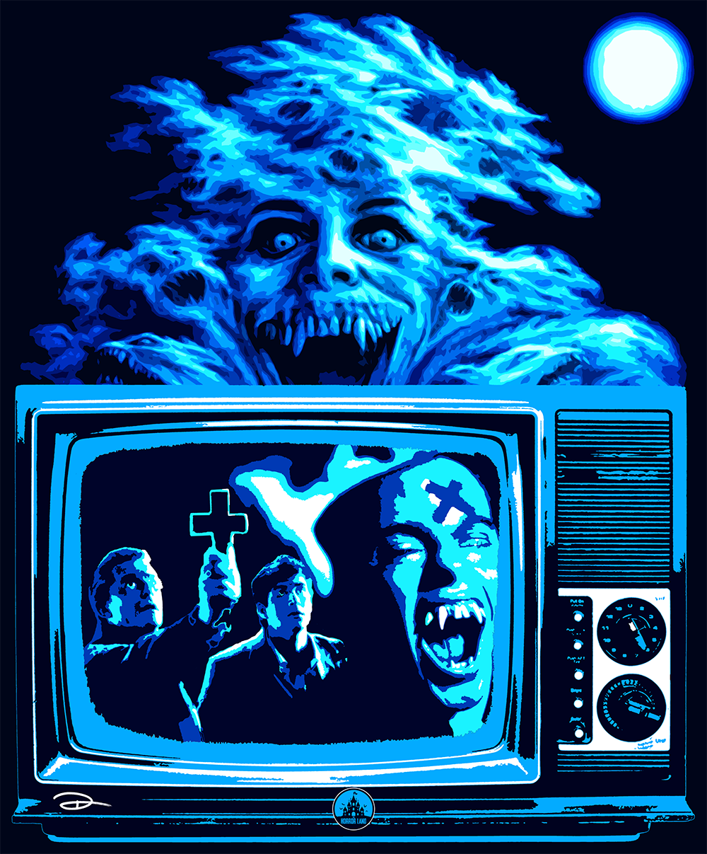 Estampa em homenagem ao filme clássico de 1985, Fright Night (A Hora do Espanto), um filme norte-americano do gênero comédia de terror, dirigido por Tom Holland (não o amigo da vizinhança!)