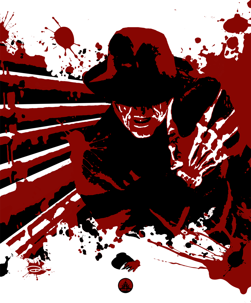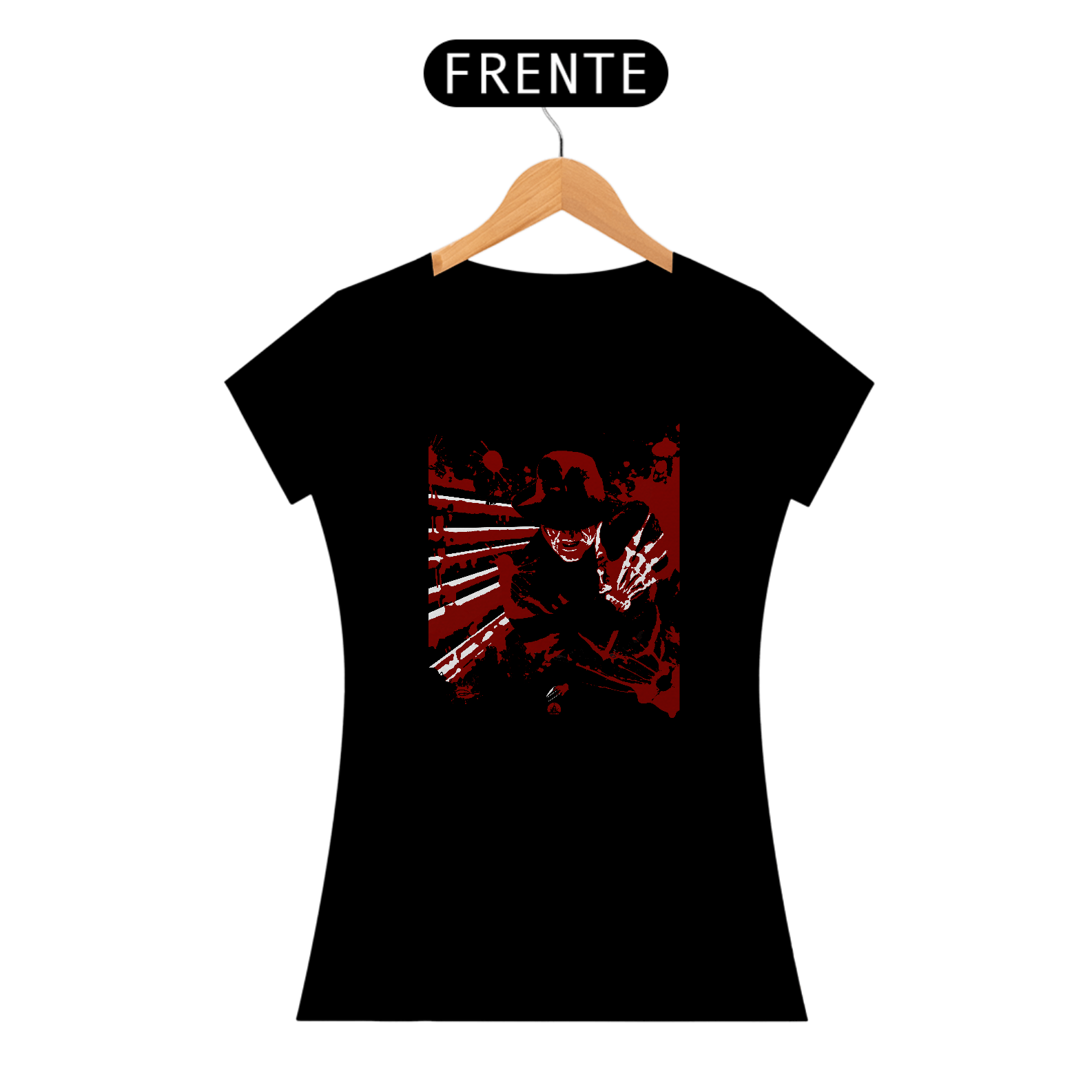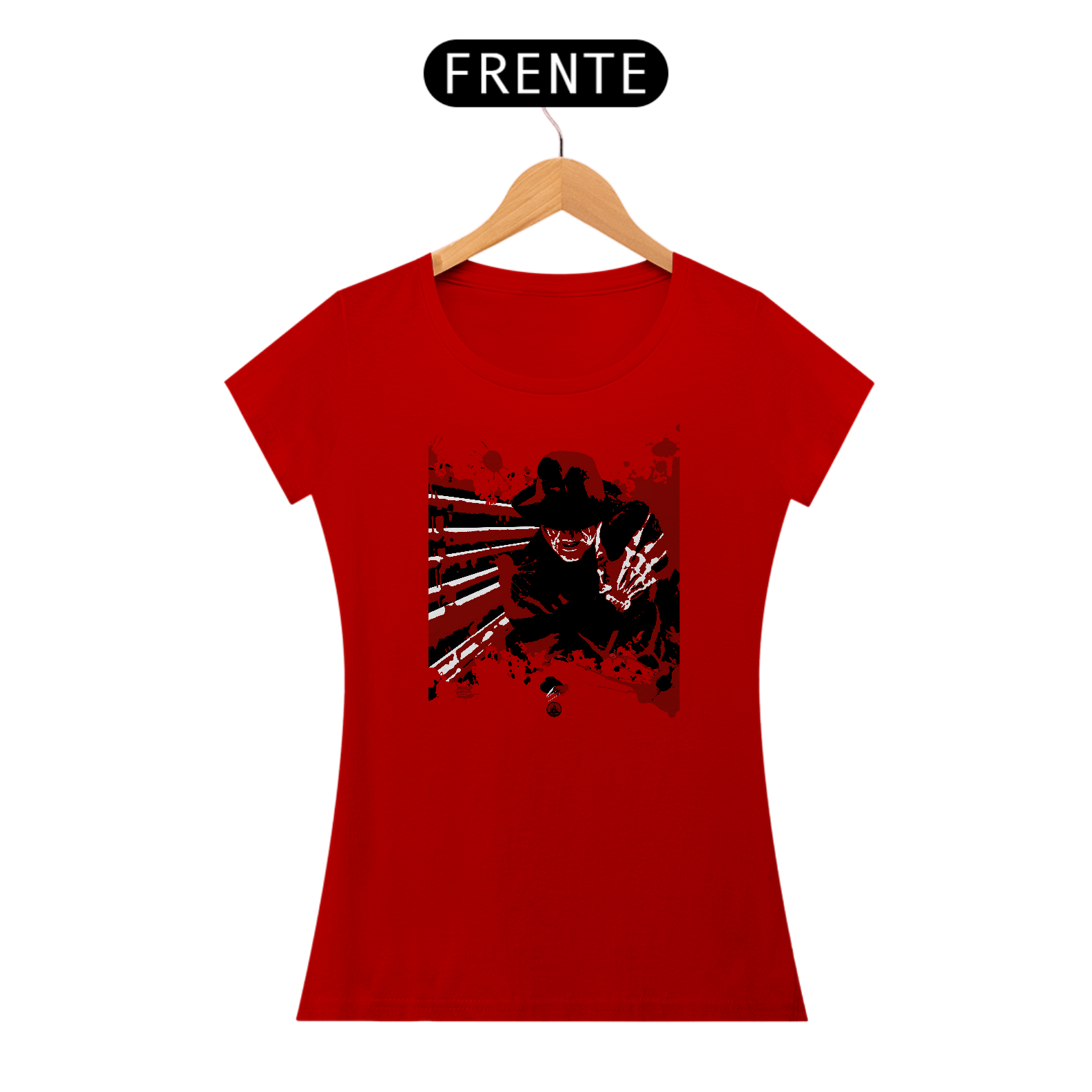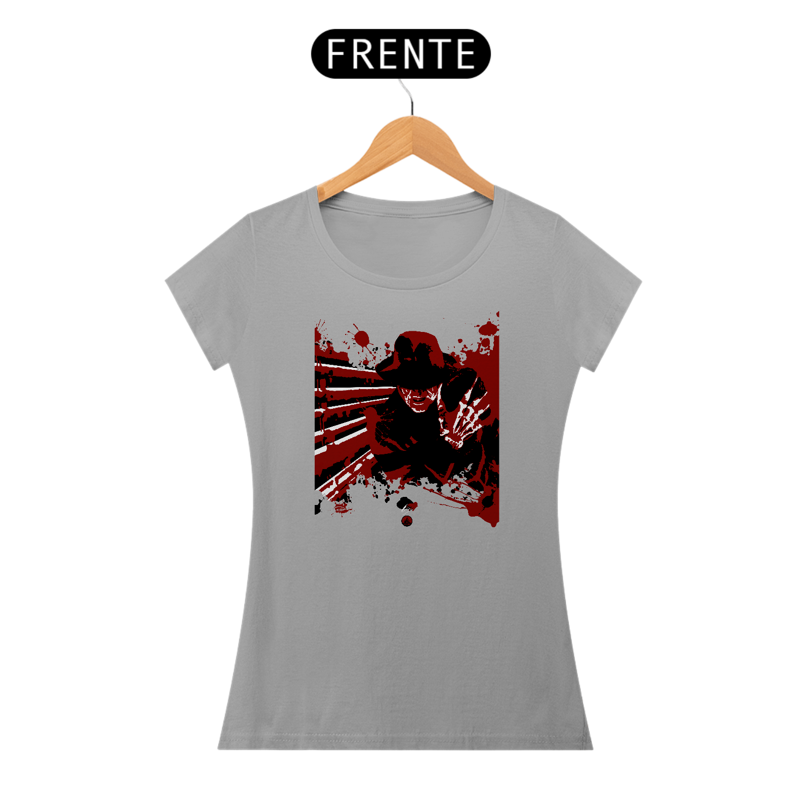 Estampa em homenagem ao filme clássico de 1984, que traz Robert Englund como o icônico assassino dos pesadelos, Freddy Krueger.