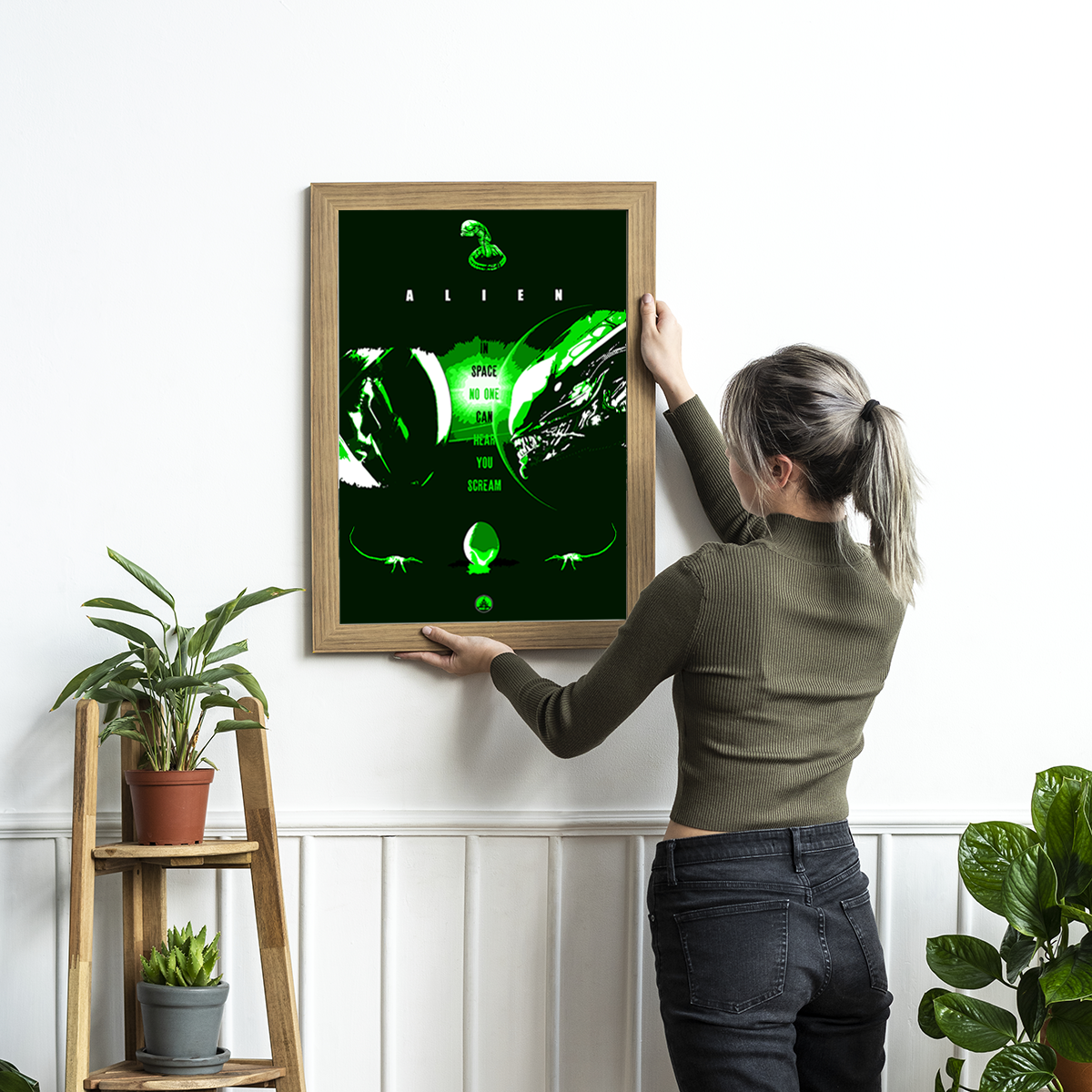 Estampa em homenagem ao filme de 1979, Alien (Alien, o Oitavo Passageiro) é um filme britanico-estadunidense dirigido por Ridley Scott e estrelado por Sigourney Weaver como Subtenente Ripley.