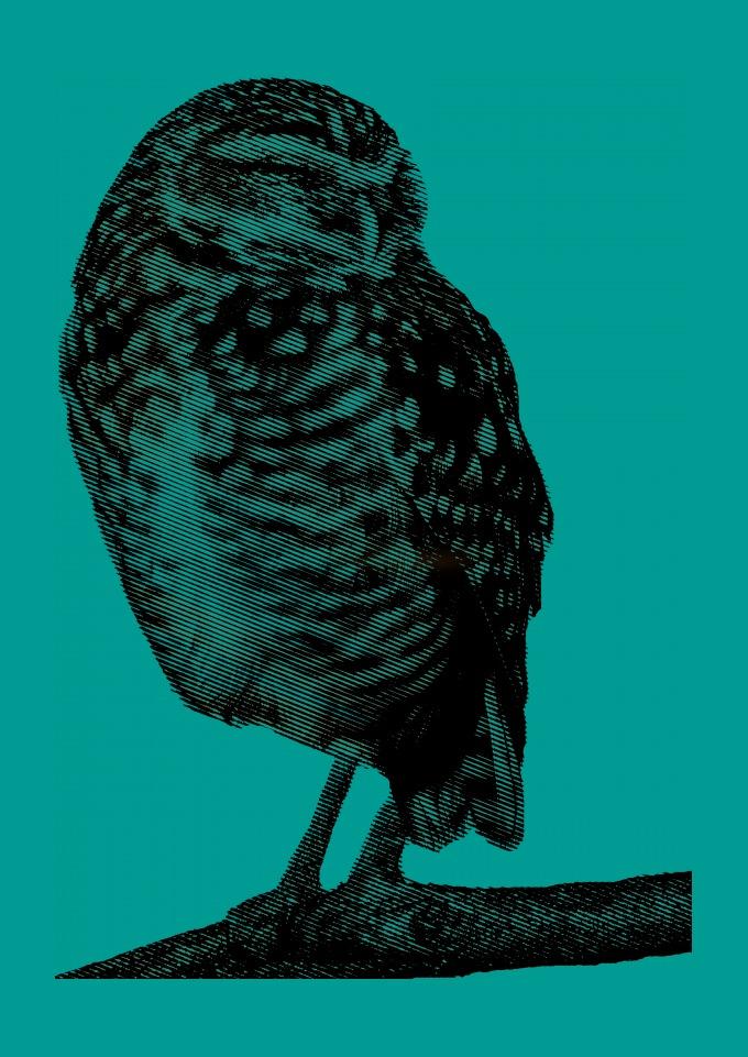 A coruja é o simbolo da sabedoria e da inteligência. Inspirado na beleza de suas formas esta estampa traz um estilizado moderno.