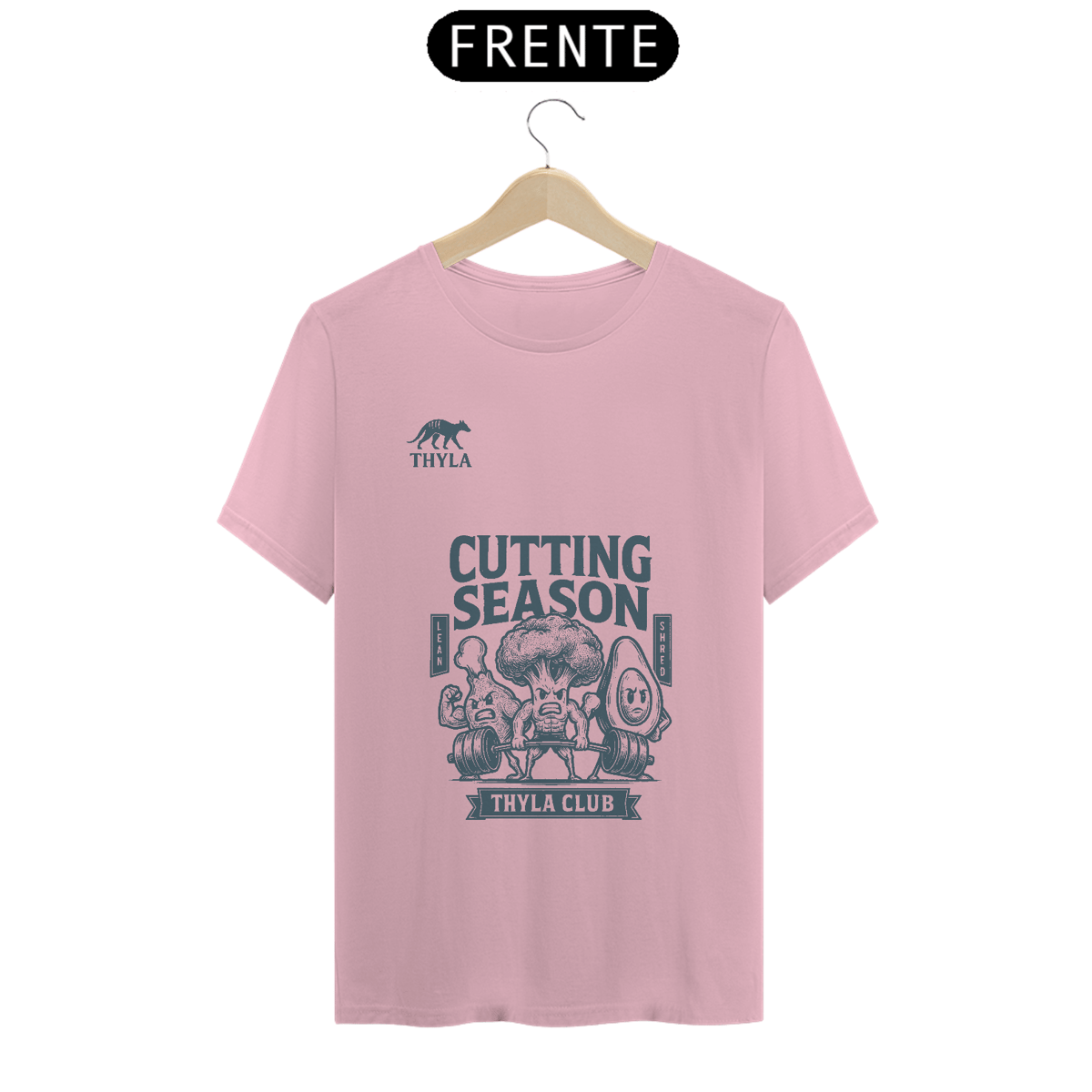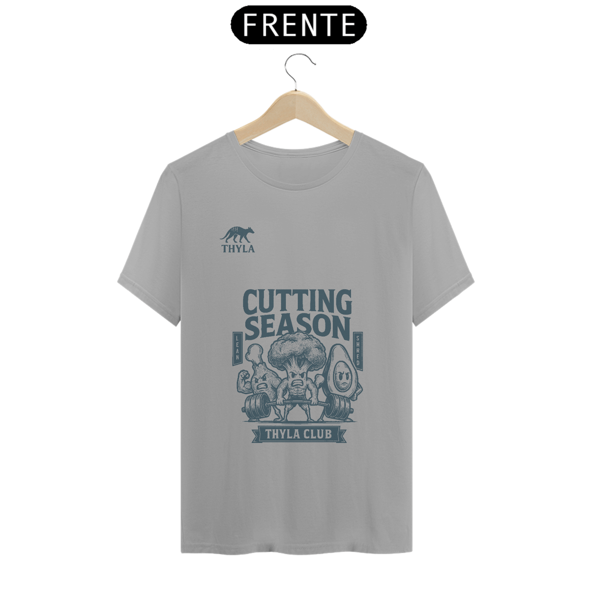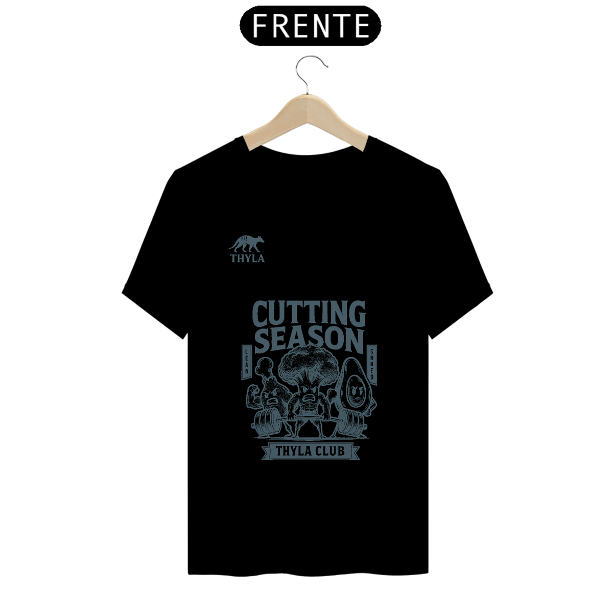 Você achou que cutting era só sobre comer frango seco e passar vontade? A THYLA te entende. Essa camiseta é pra quem shreda no treino com o mesmo ódio com que olha pra balança na segunda-feira. Estampa com um brócolis trincado, um abacate pistola e um drumstick bombado: o trio sagrado da dieta.