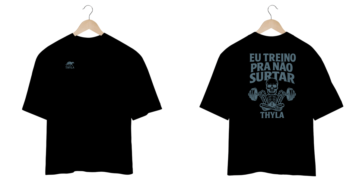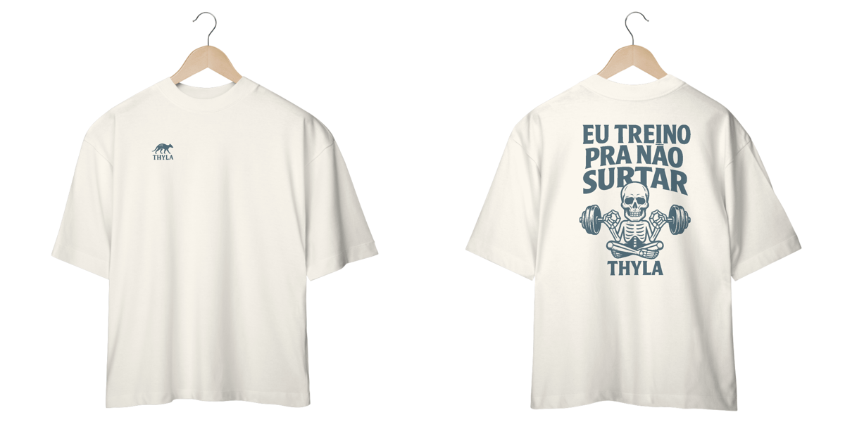 Você achou que academia era só estética? A THYLA te entende. Essa camiseta é pra quem desconta na barra o que não pode descontar nos boletos, no chefe ou no grupo da família. Estampa com caveira zen, halteres na mão e aquela serenidade de quem já quase surtou... mas respirou fundo e fez drop set.