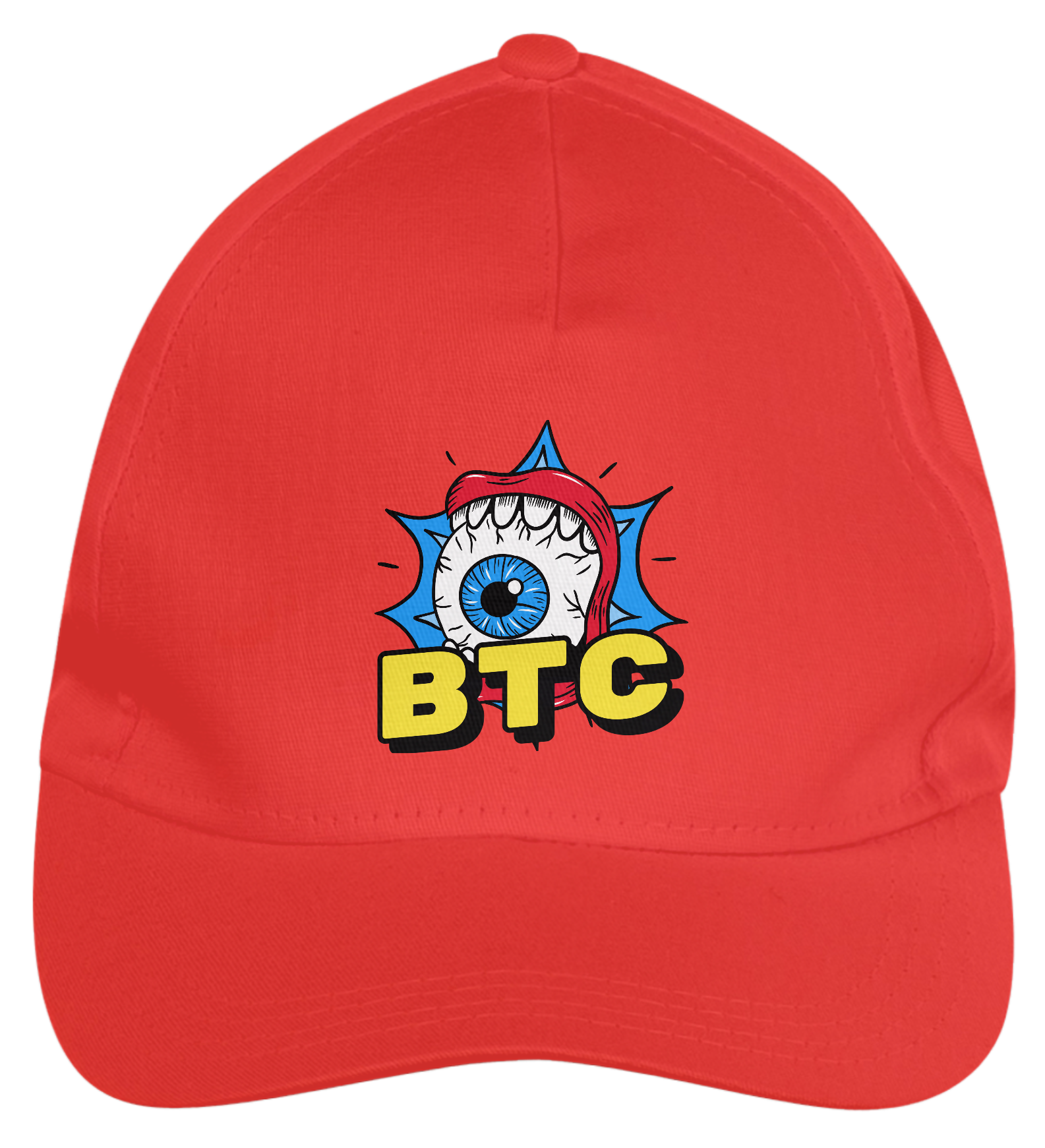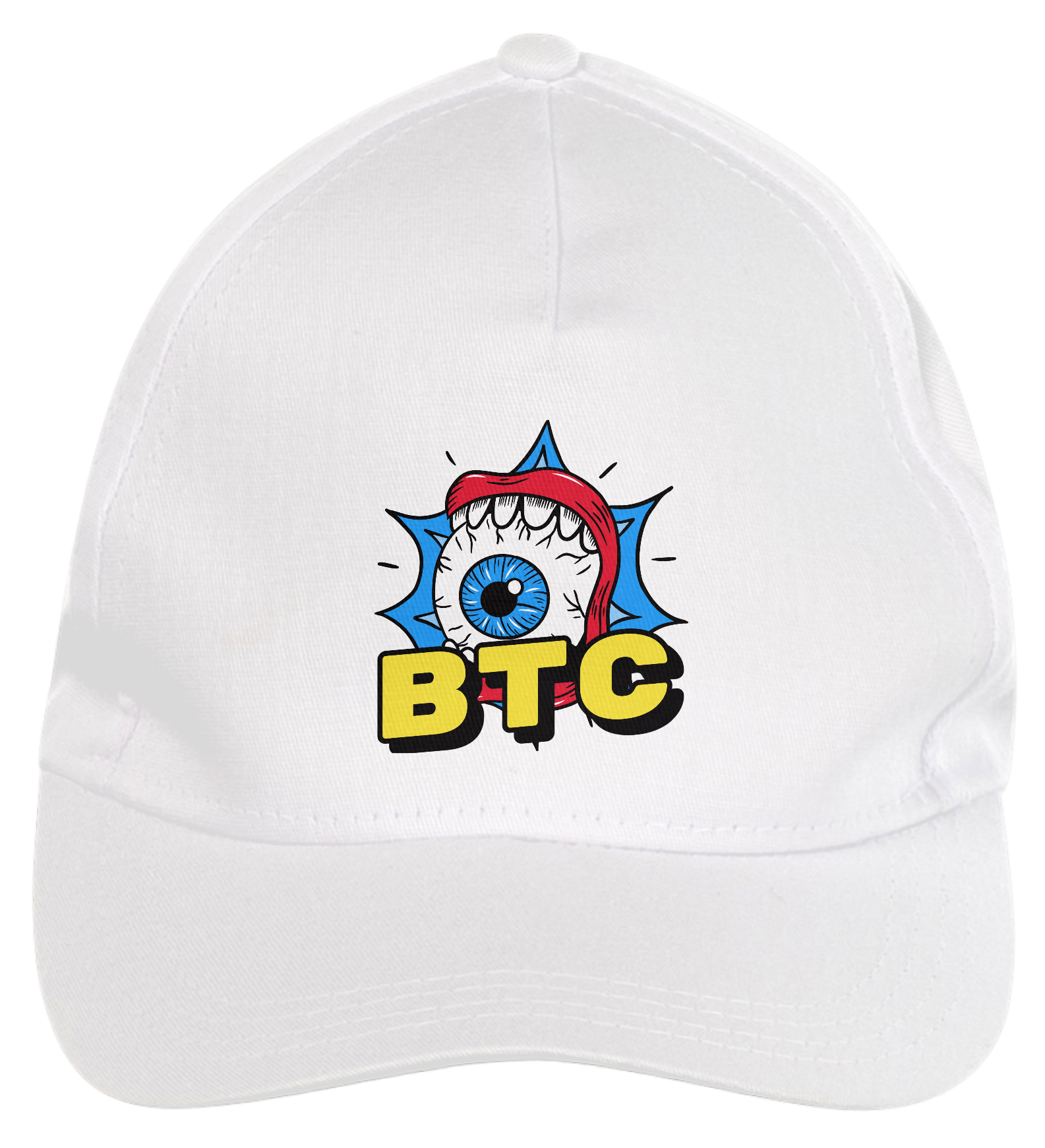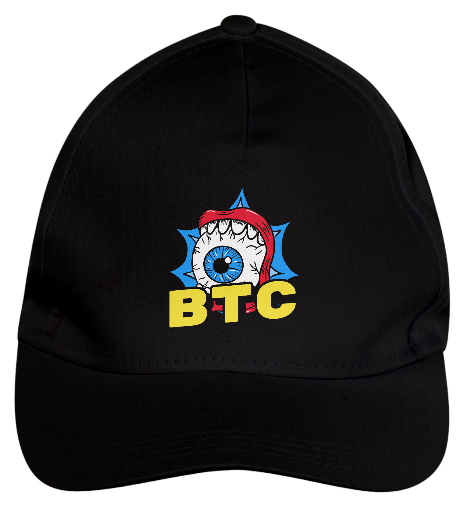 Boné americano com transfer frontal em alta qualidade, aba curva e fecho em tira totalmente regulável com pinos. O modelo veste tamanho "único".