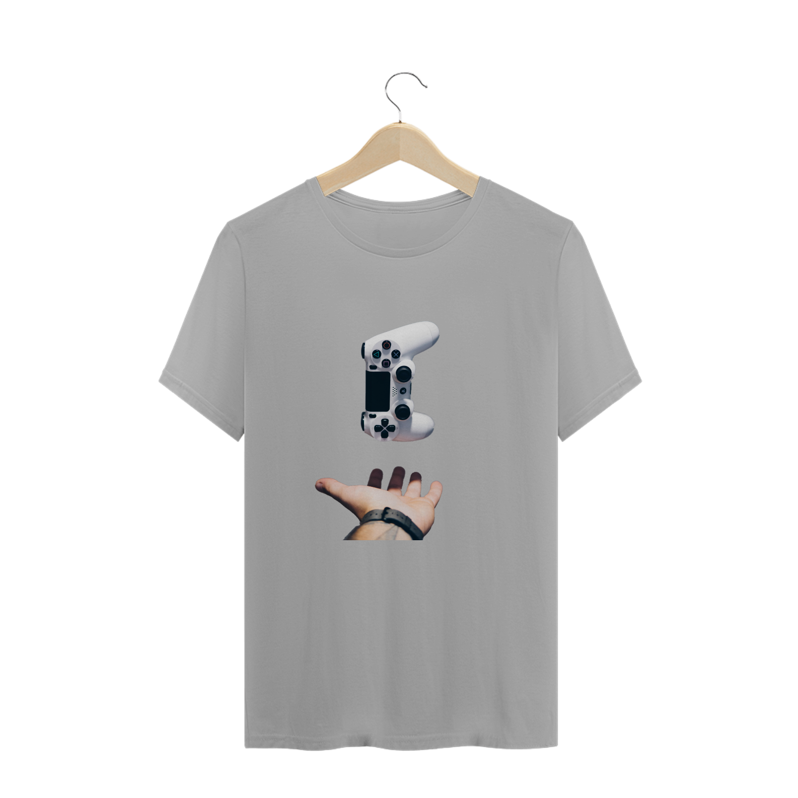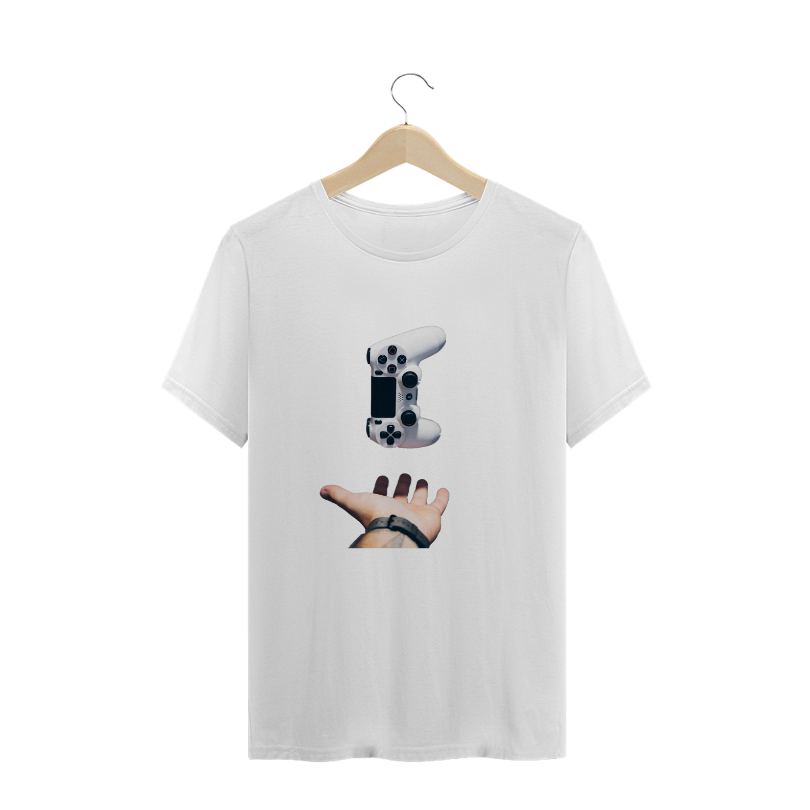 Camiseta descontraida de um controle de ps ao ar.