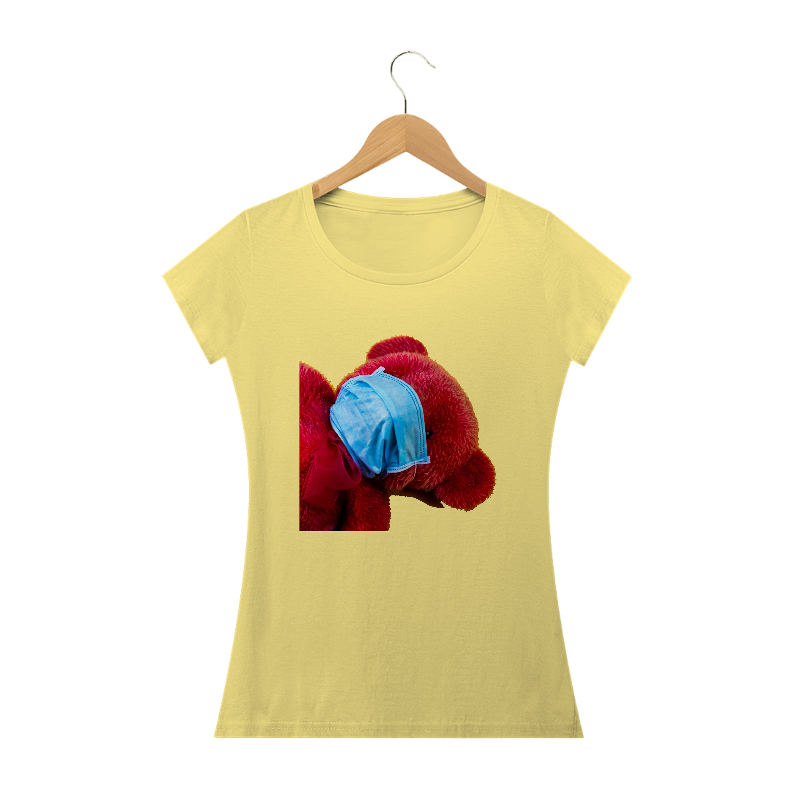 Estampa divertida de um urso de brinquedo utilizando mascara