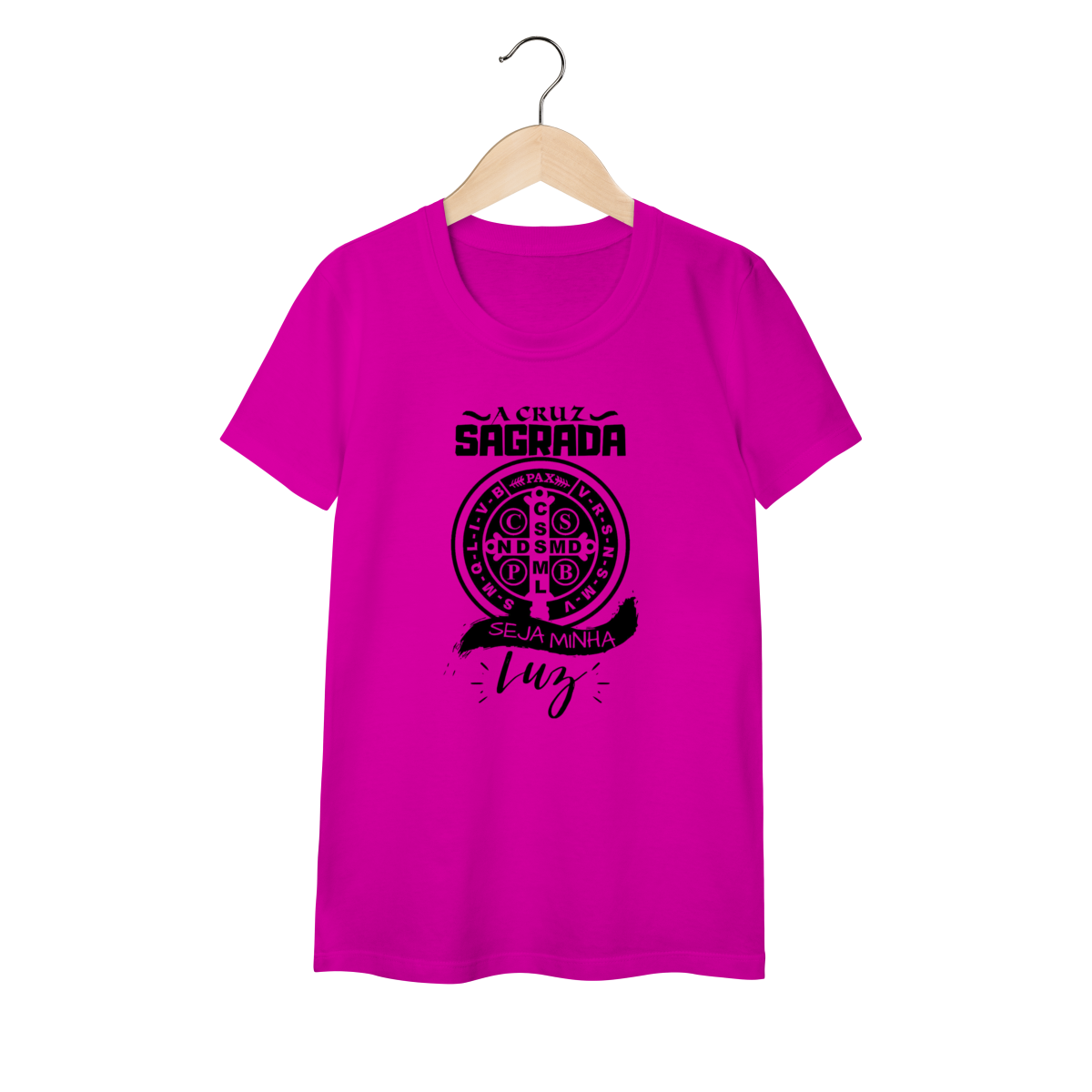 Expresse sua fé com estilo e significado! A camiseta Fé e Devoção a São Bento foi criada para quem busca proteção espiritual e deseja carregar consigo a poderosa mensagem do santo patrono contra o mal.