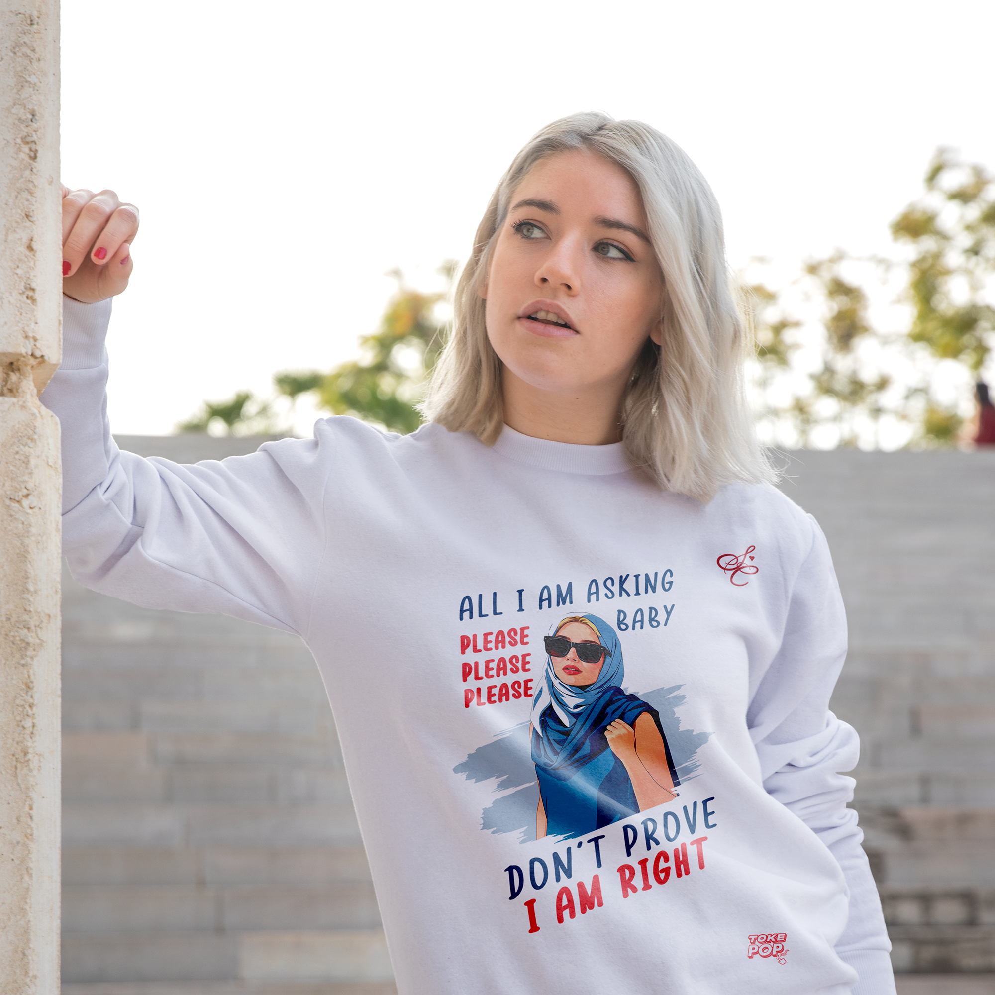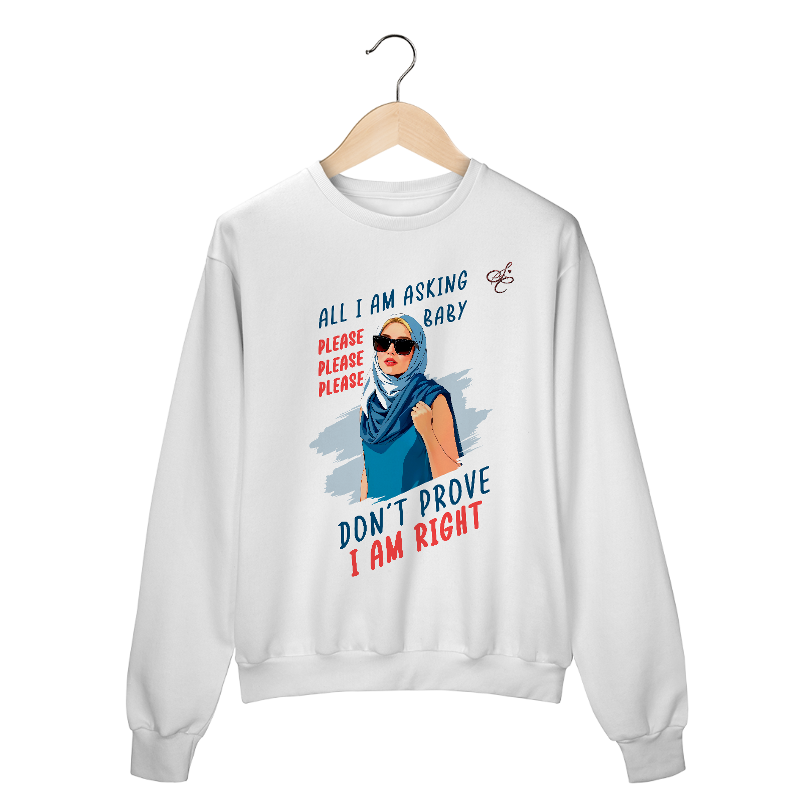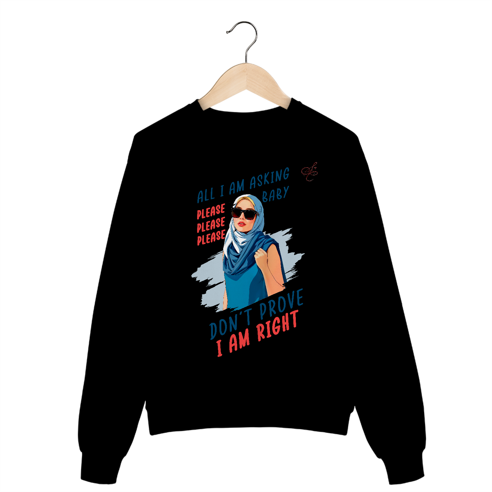 Moletom Sabrina Carpenter - Não me decepicione Crewneck - SABRINA CARPENTER | SHORT 'N SWEET COLLECTION Gola redonda com foto de Sabrina Carpenter com letras de música "All I am asking baby"  e "Please please please don't prove I'm right" impresso na frente.