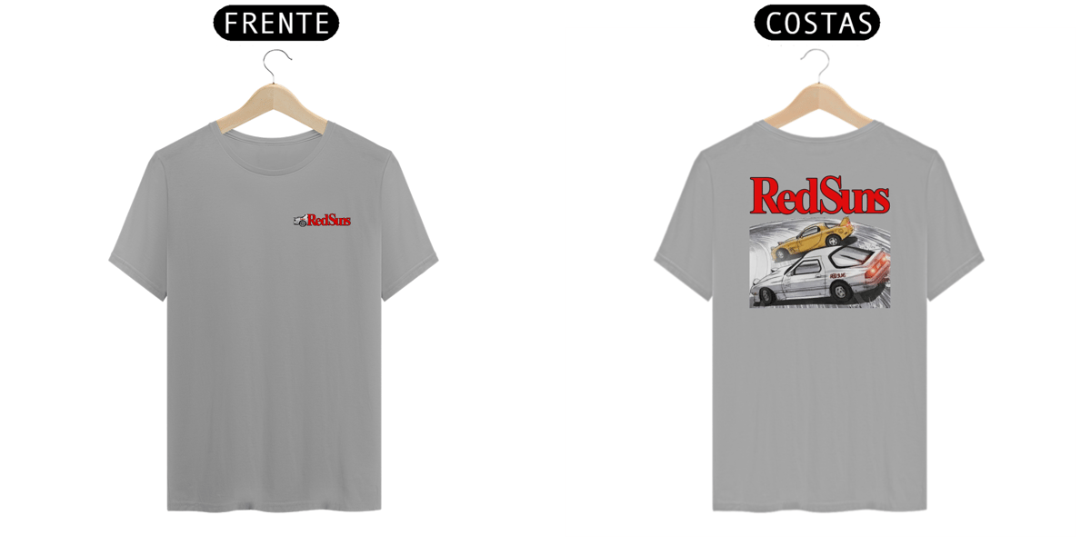 Nas costas, um design especial com o emblemático nome Red Suns e uma cena eletrizante do FC3S de Ryosuke em tandem com o FD3S de Keisuke, representando a harmonia e o domínio absoluto das montanhas pelos irmãos Takahashi.