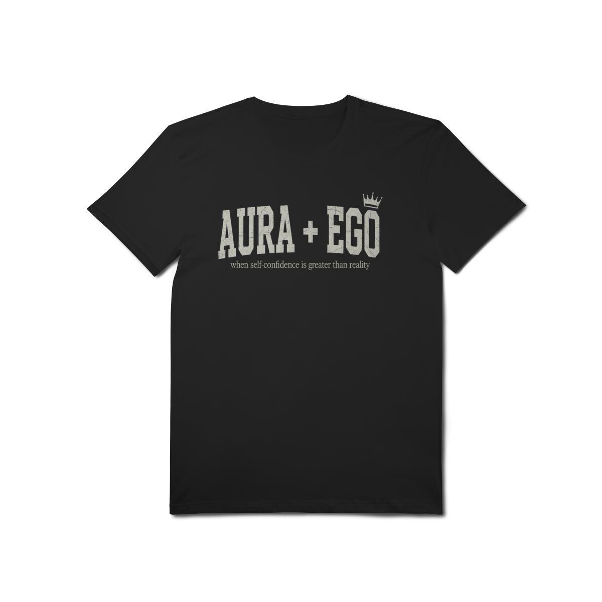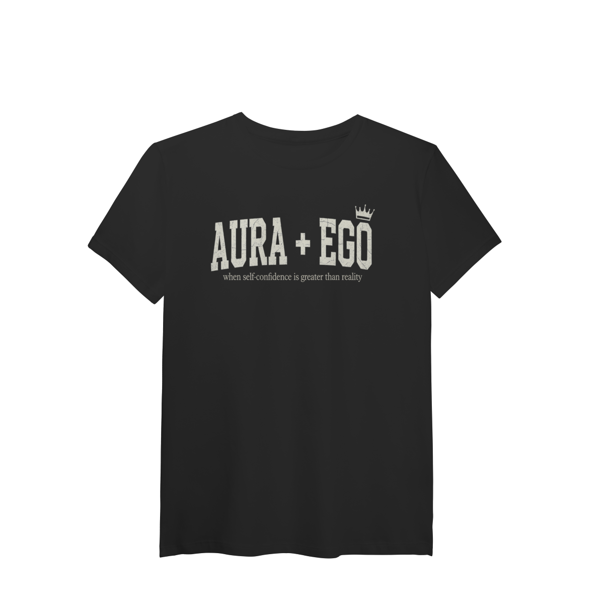 Quando a autoconfiança fala mais alto que a realidade. Design minimalista com tipografia impactante e detalhe da coroa — perfeita pra quem carrega presença e estilo.