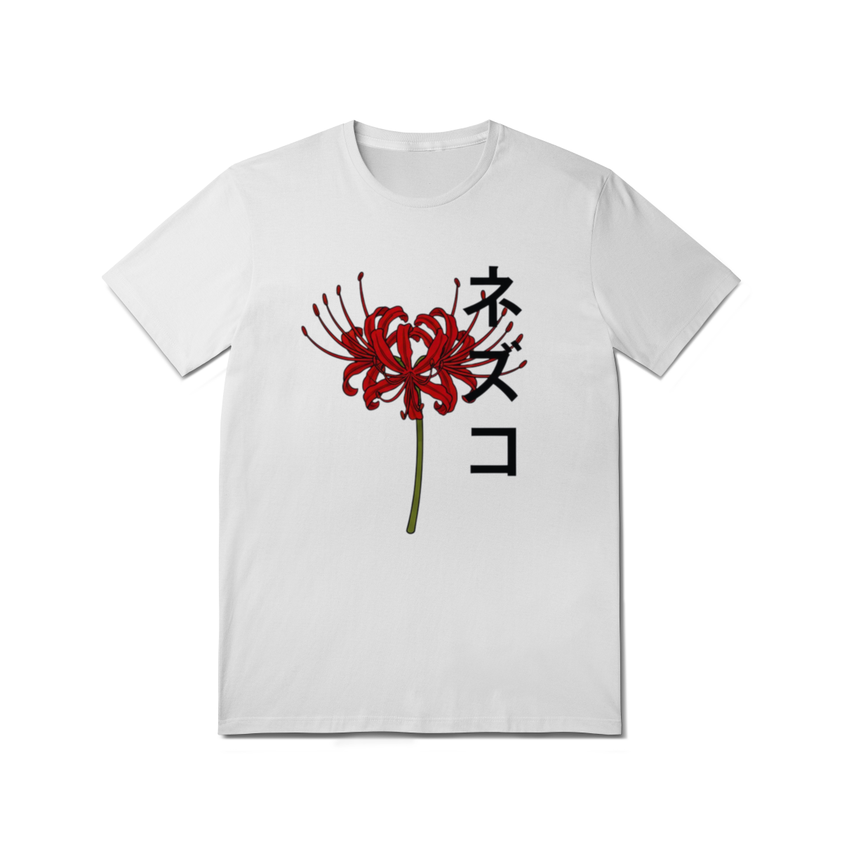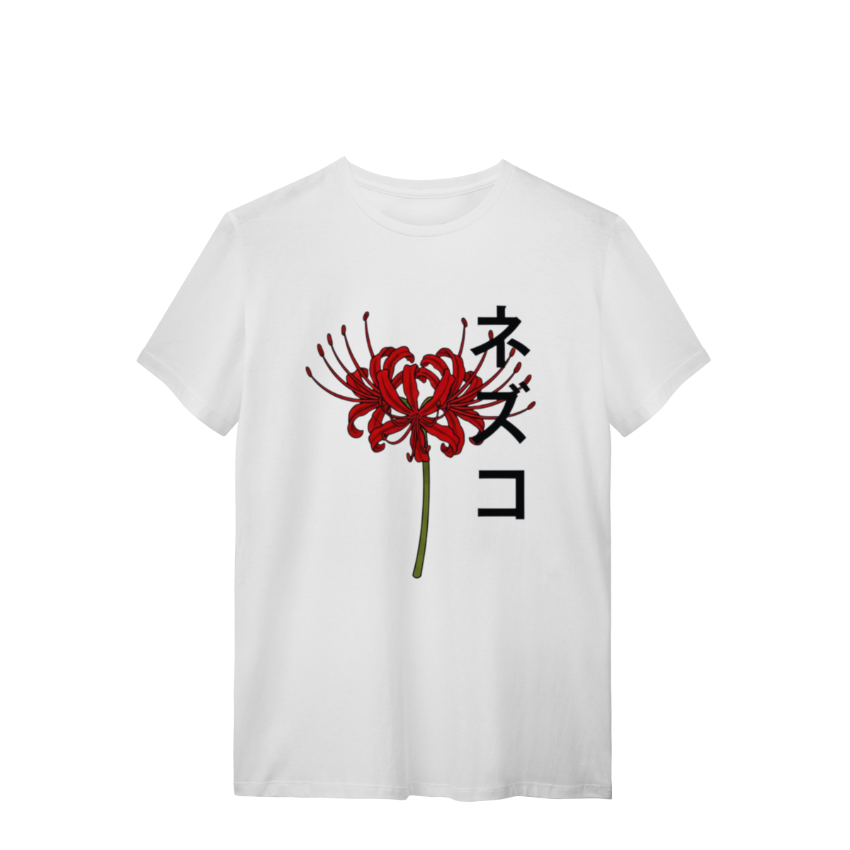 Inspirada em Nezuko Kamado, de Demon Slayer, esta estampa traz o lírio-aranha vermelho — flor que simboliza a luta, a saudade e a resistência.